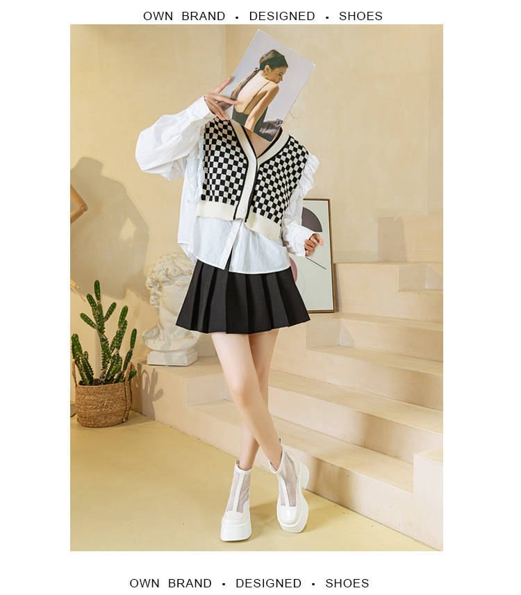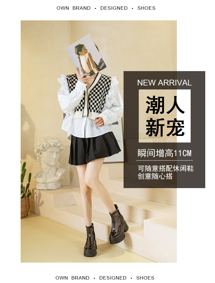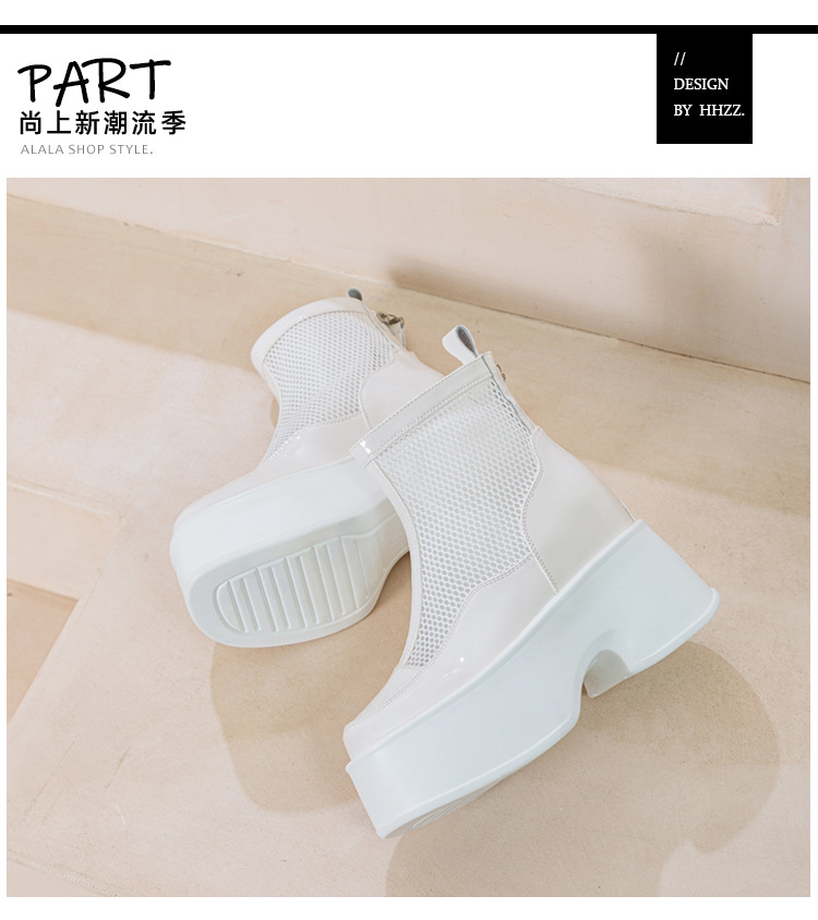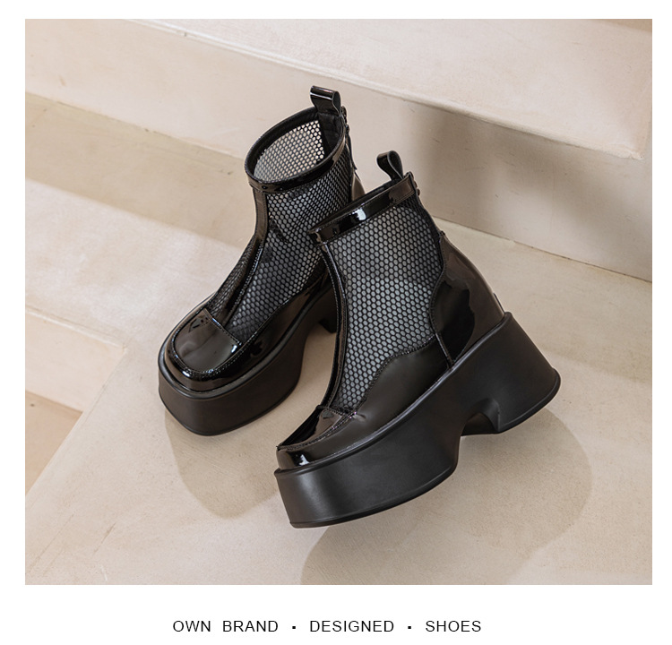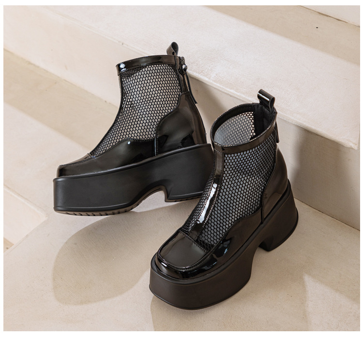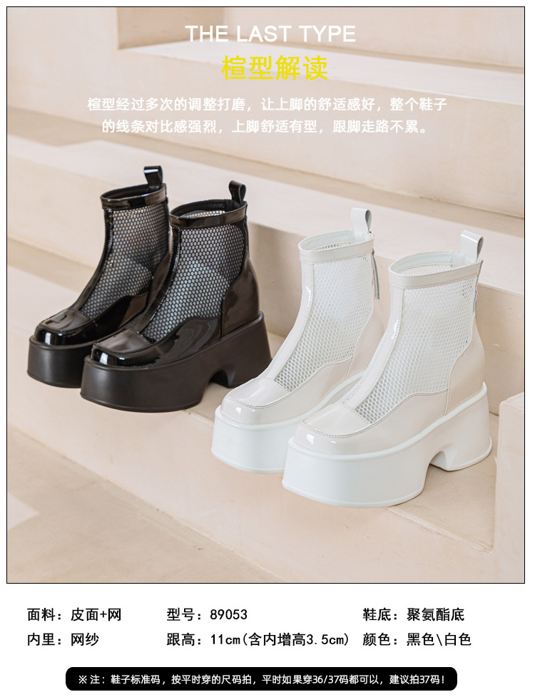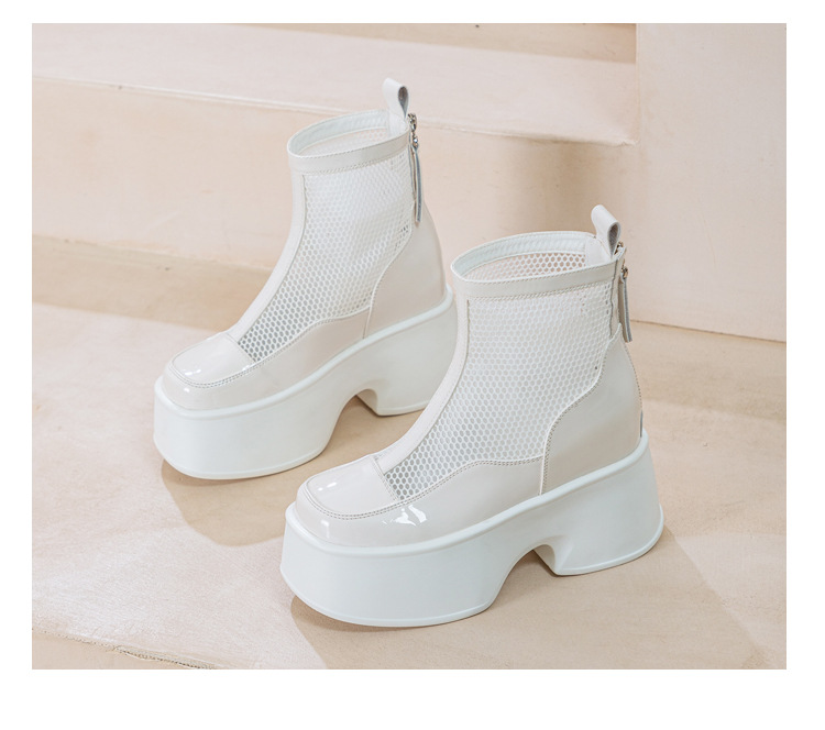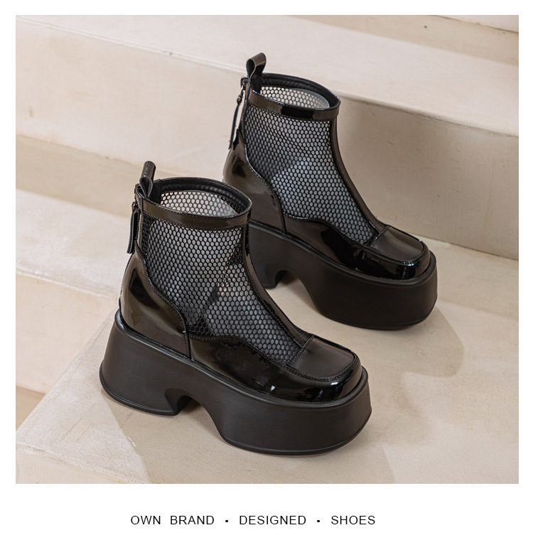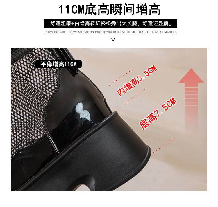 여성용 천연 가죽 메쉬 마틴 부츠, 두꺼운 밑창, 2026년 신상 여름 통풍 메쉬 부츠, 여성용 키높이 부츠, 숏부츠