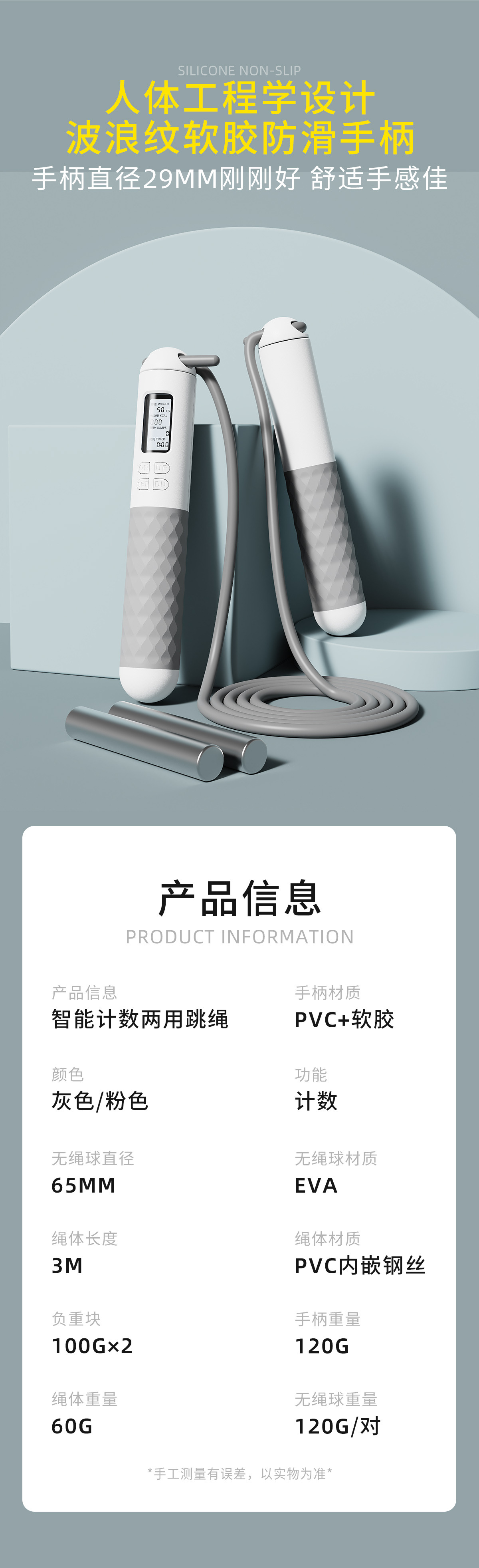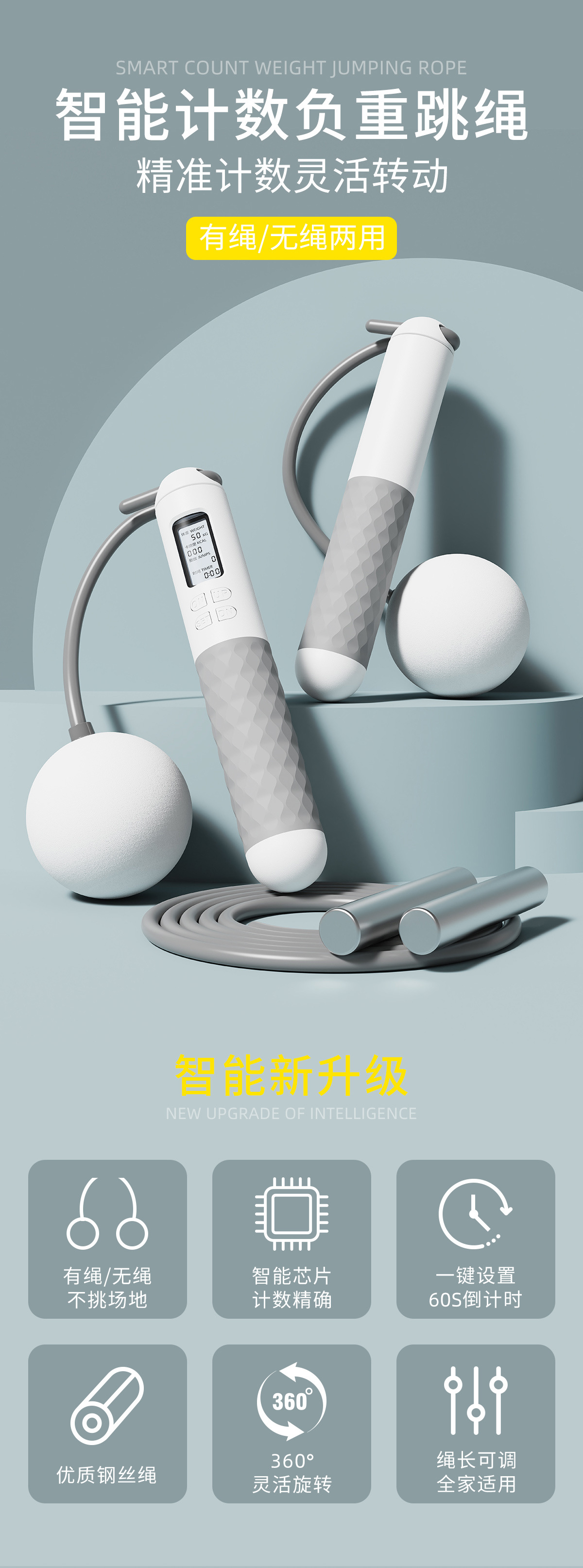밧줄 건너 뛰는 피트니스 체중 감량 지방 연소 여성 스포츠 무선 웨이트 볼 테스트 학생 어린이 스포츠 프로 카운트 로프