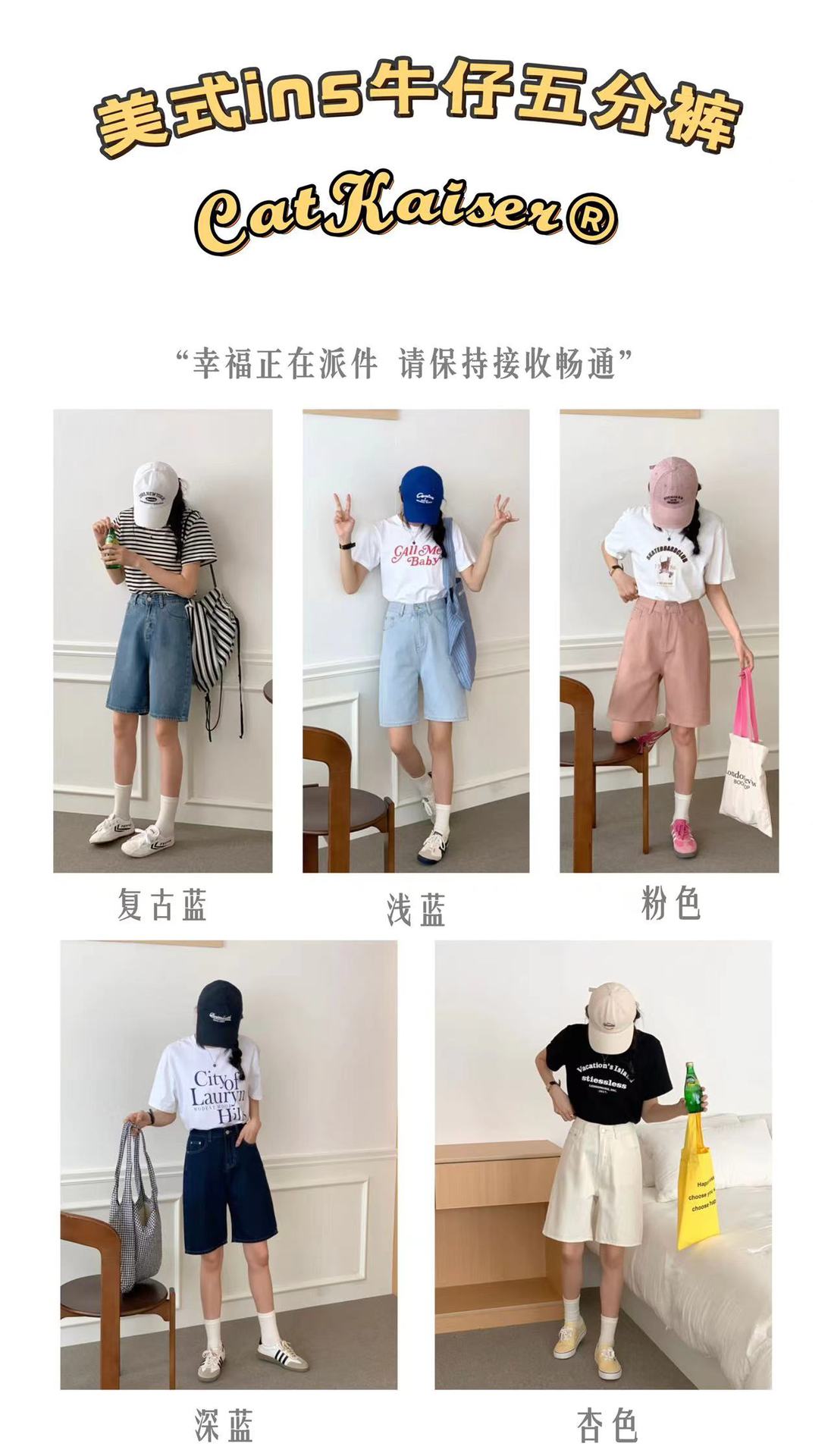 CatKaiser American Style Ins 데님 바지 여름 새로운 A 라인 간단한 슬리밍 여성을위한 모든 캐주얼 반바지