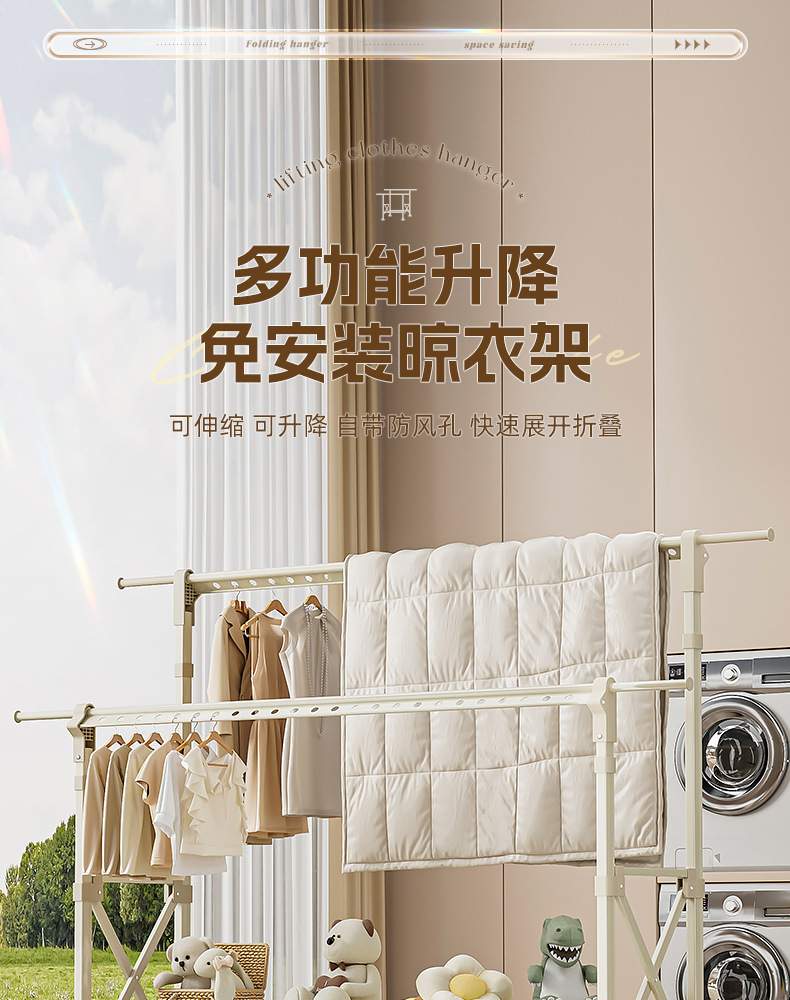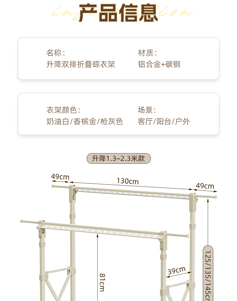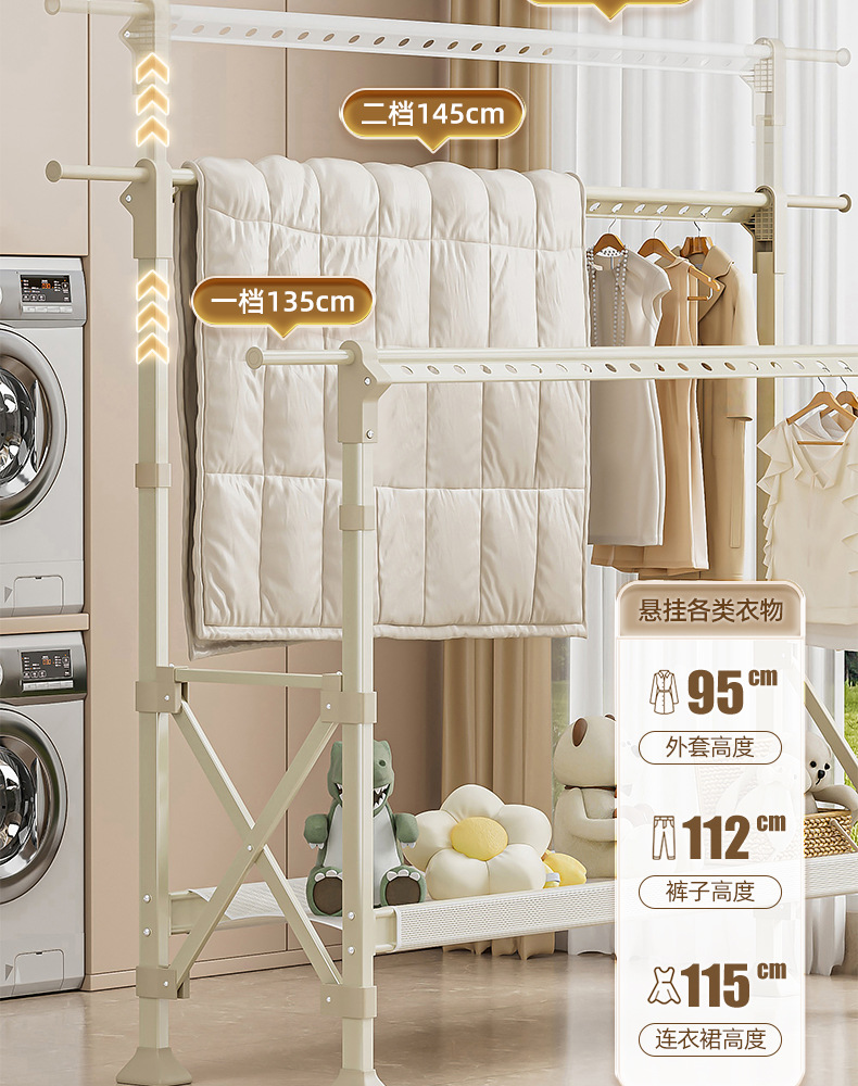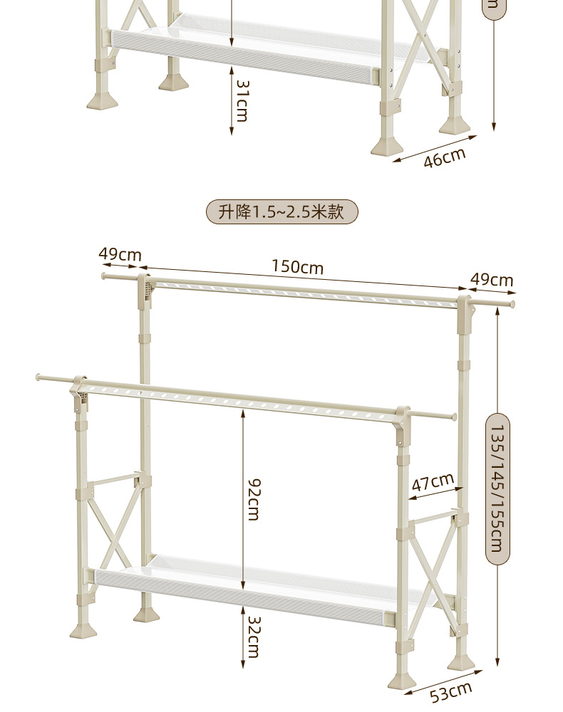 샴페인 골드 [1.5- 2.5m 텔레스코픽-복열 리프팅] 건조망-바퀴 없음-업그레이드 및 설치 불필요