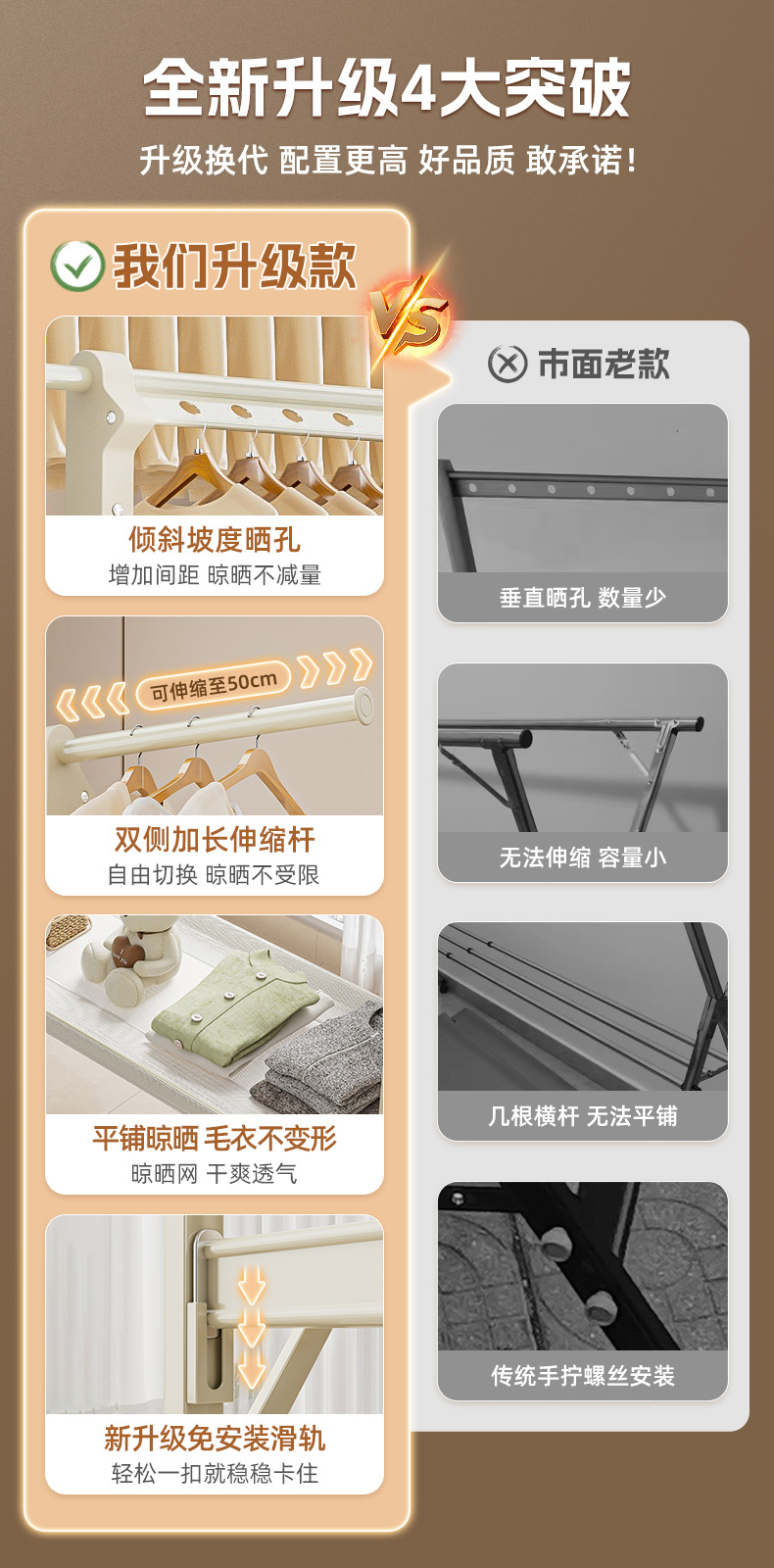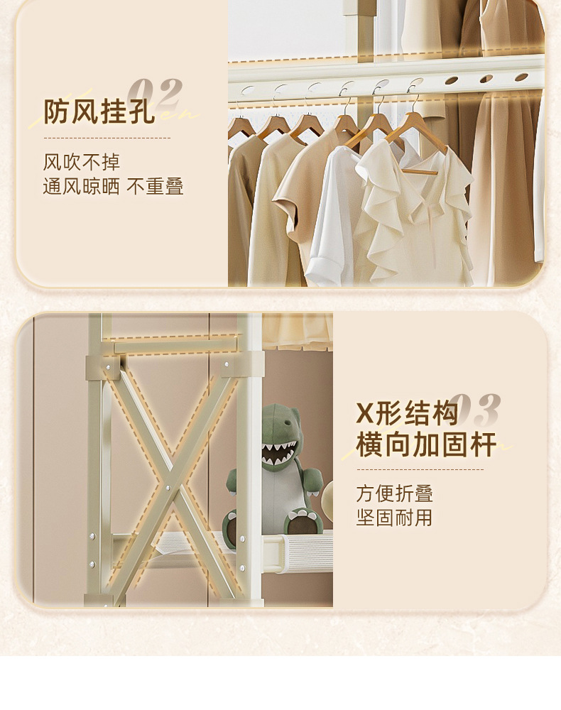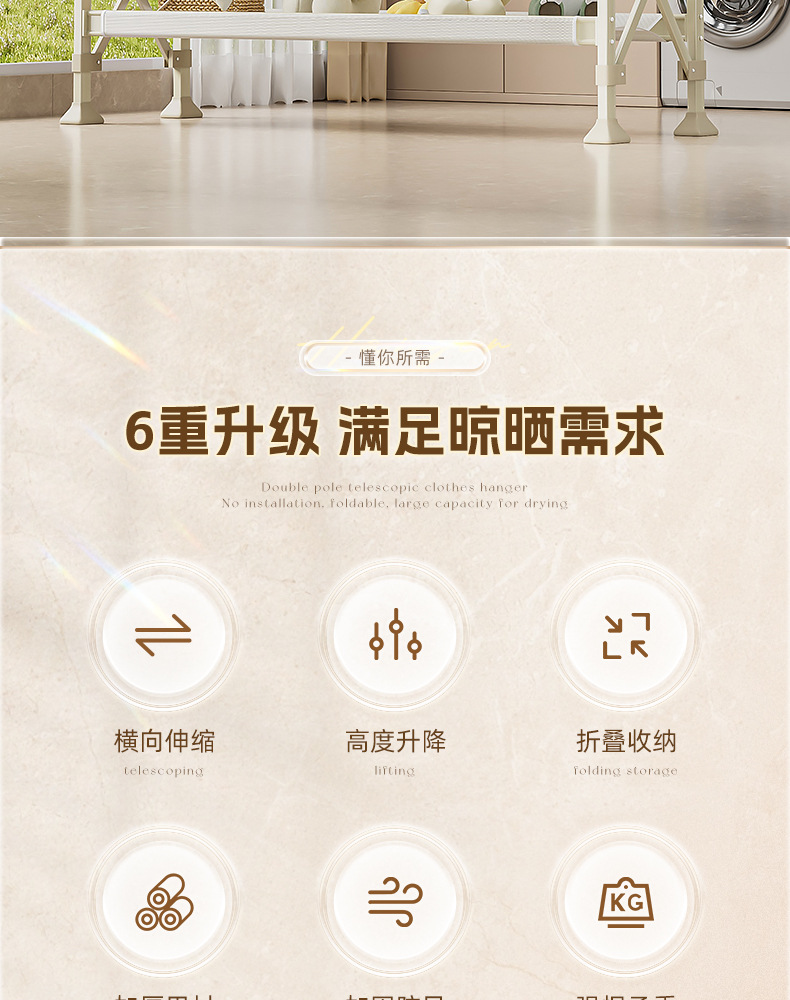 샴페인 골드 [1.3- 2.3m 텔레스코픽-복열 리프팅] 건조망-바퀴 없음-업그레이드 및 설치 불필요