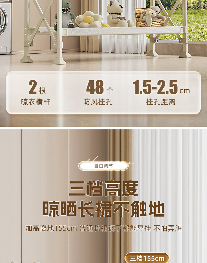 크림 화이트 [1.5- 2.5m 텔레스코픽-복열 리프팅] 건조망-바퀴 업그레이드 및 설치 불필요