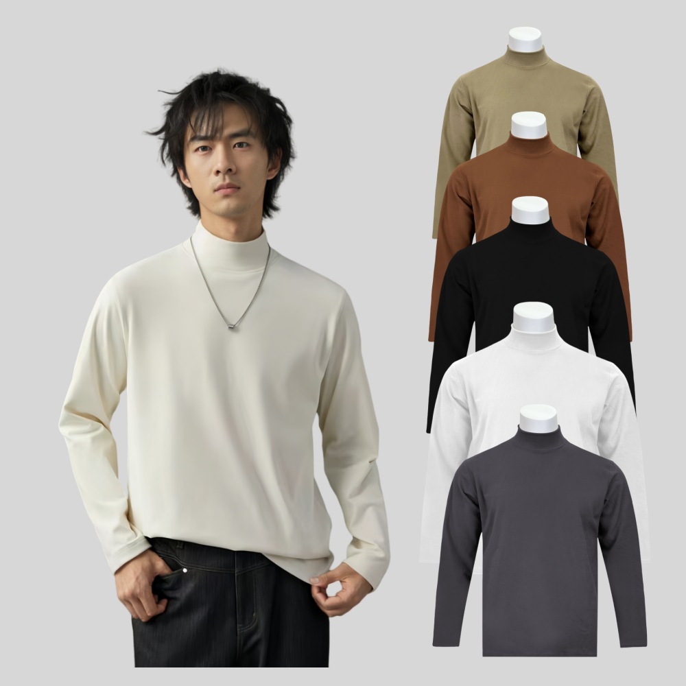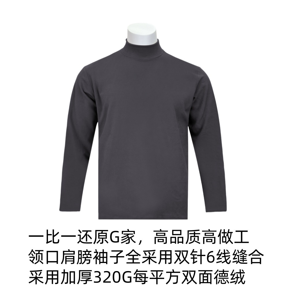 헤비 320G 겨울 패딩 양면 벨벳 하이 칼라 남성 긴팔 단색 바닥 셔츠 패션 조커 티셔츠