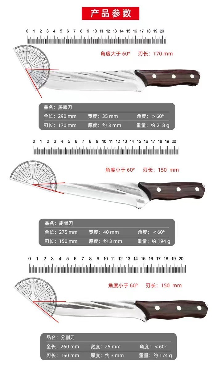손으로 위조 된 보닝 칼 돼지 살인자 특수 학살 칼 3 조각 칼 칼 절단 칼 날카로운 요리사 칼