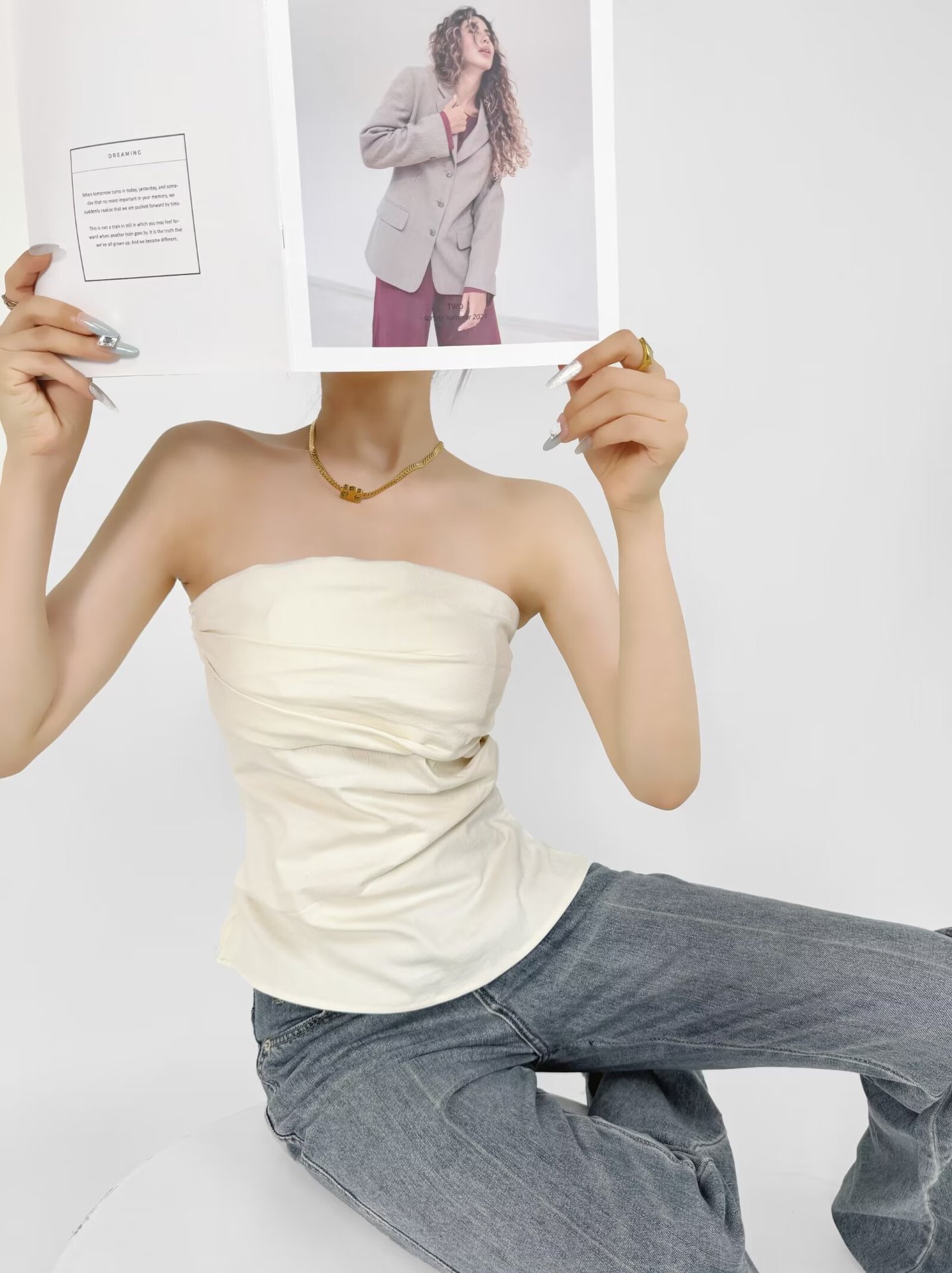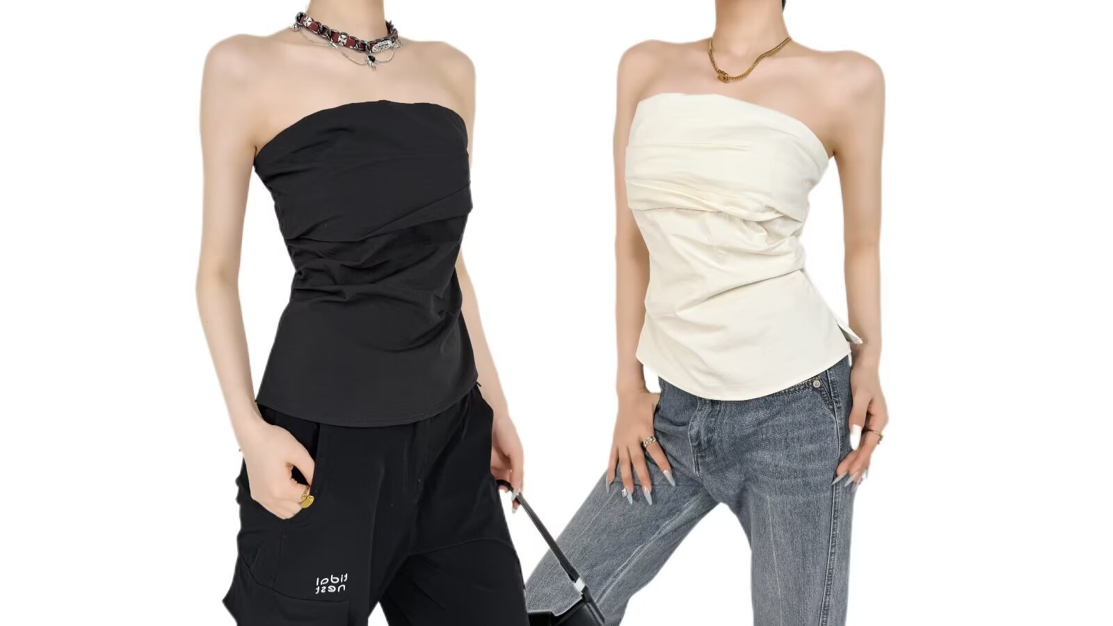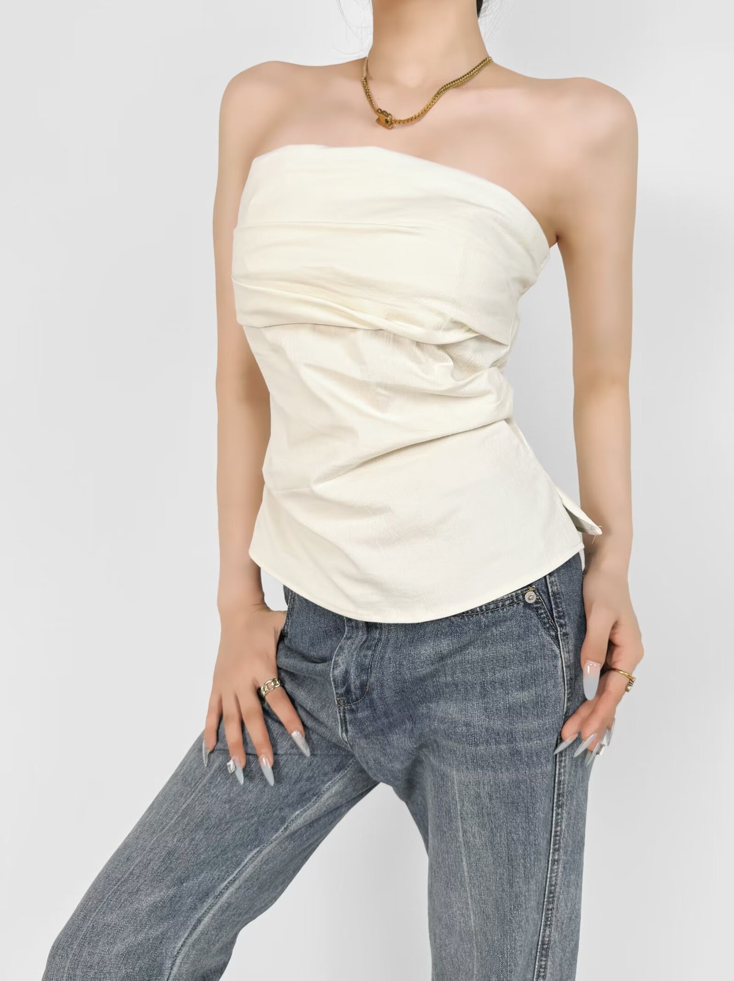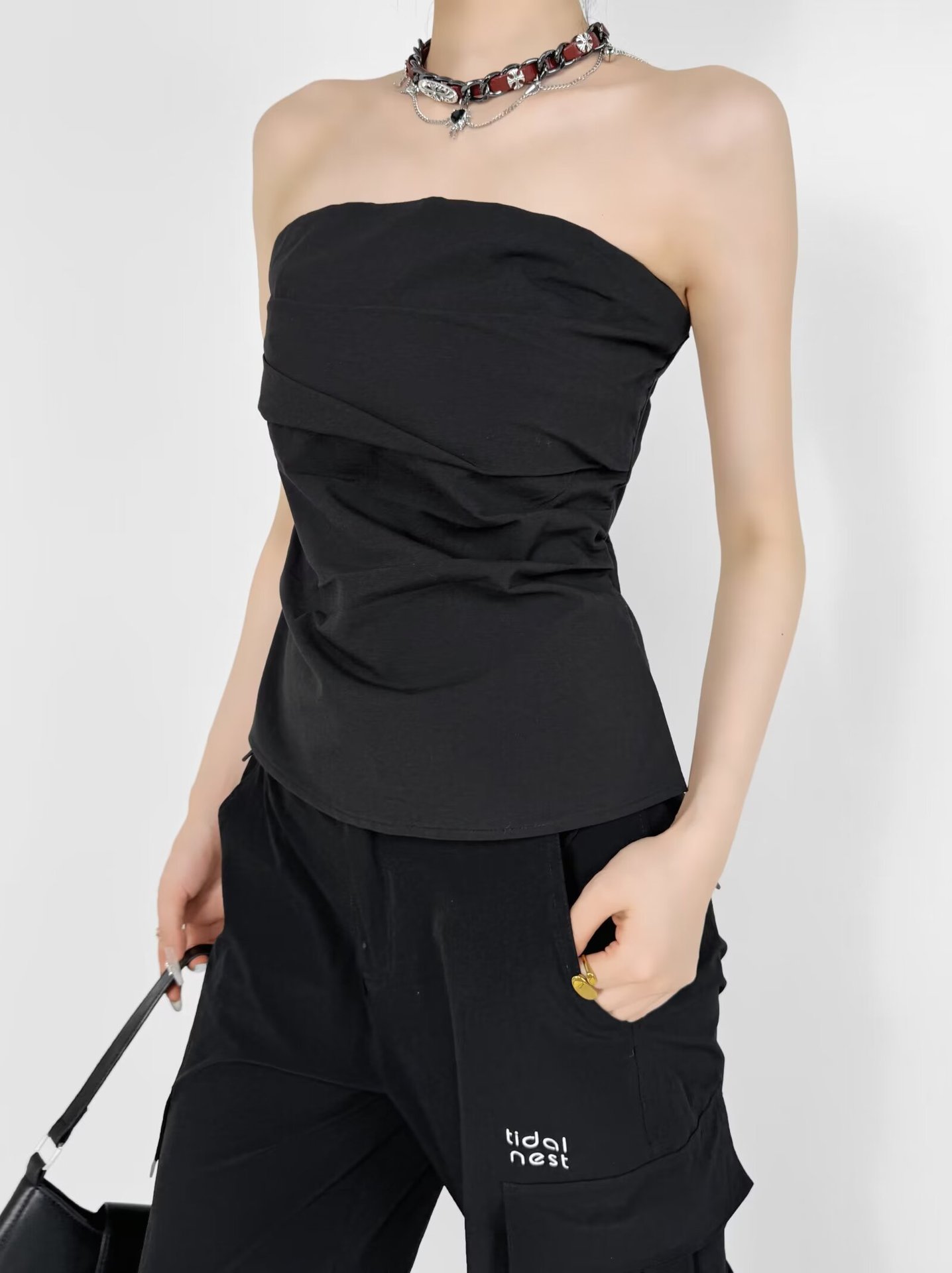 디자인 센스 어깨 주름 튜브 탑 여름 새로운 스타일 순수한 욕망 휴가 조끼 슬림 핏 슬리밍 스파이스 소녀 탑 여성