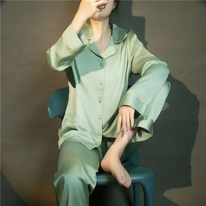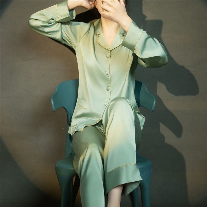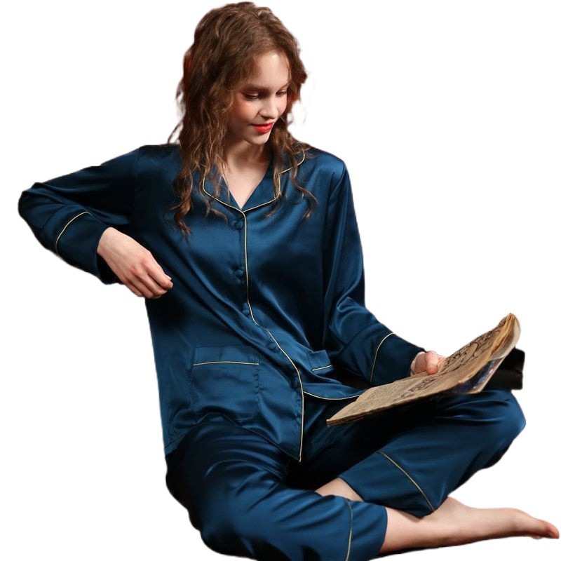 % 뽕나무 실크 여성 실크 잠옷 신제품 센스 봄과 가을 플러스 사이즈 단색 실크 홈 의류 겨울 폭발 세트
