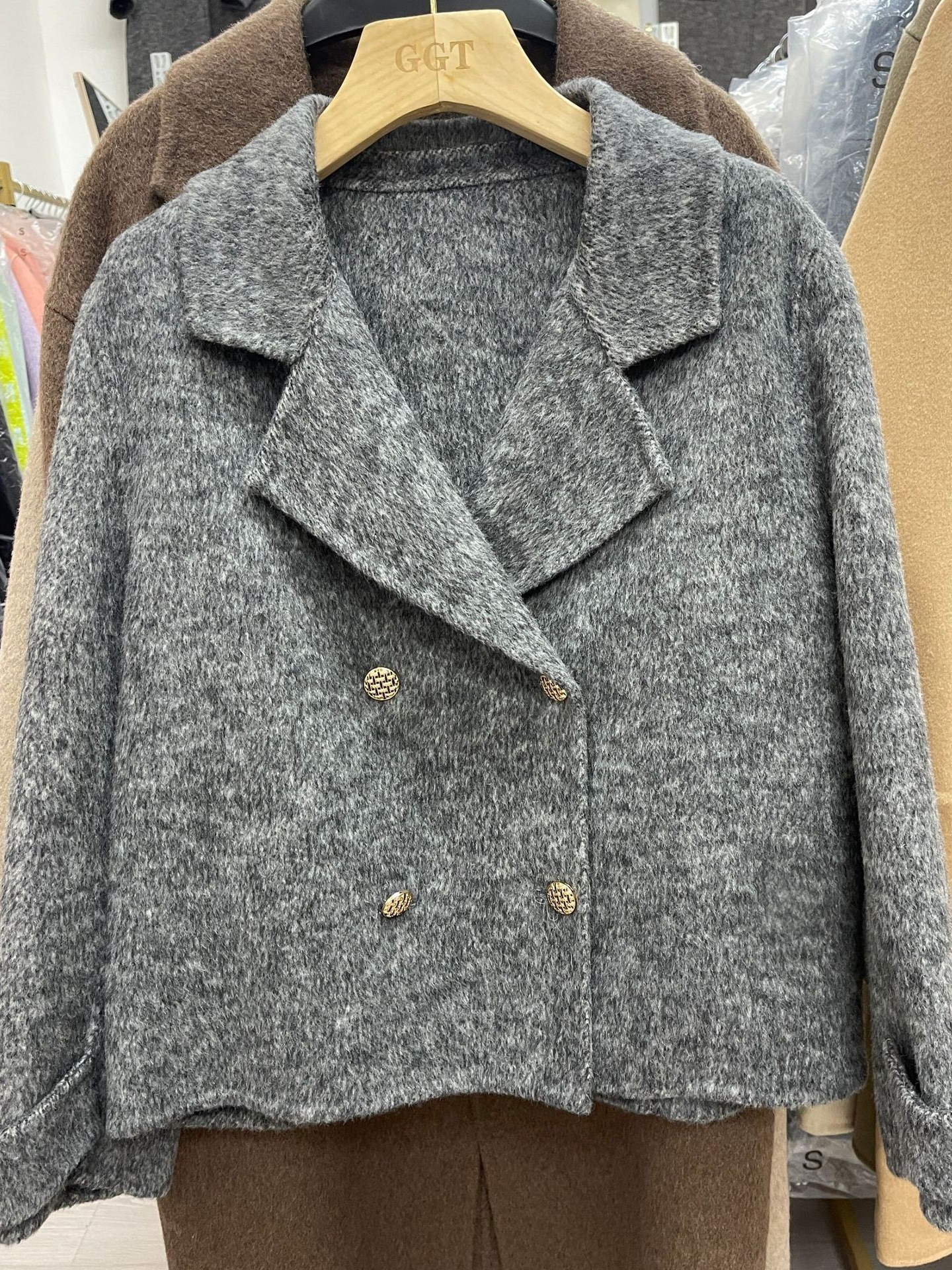 2025 새로운 양면 캐시미어 코트 한국 스타일 짧은 스타일 슬림 느슨한 작은 모직 울 코트 여성을위한