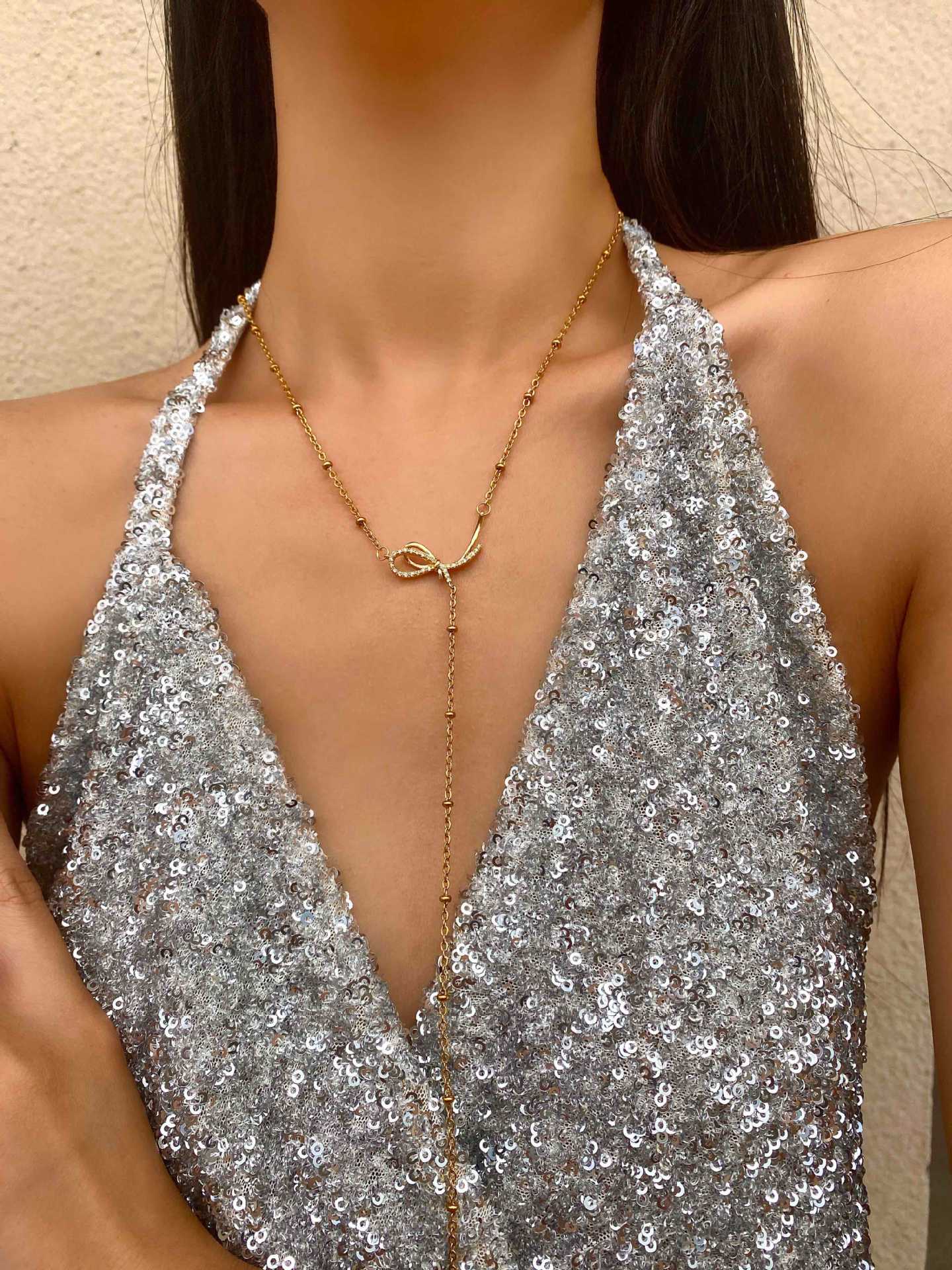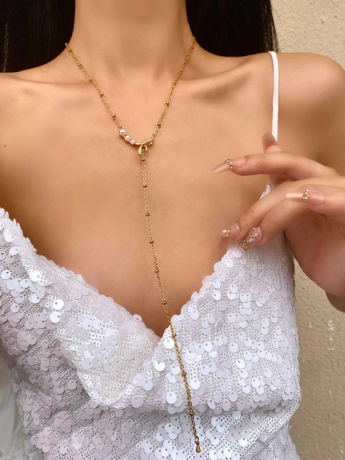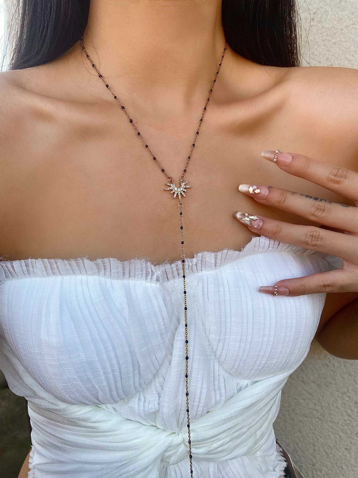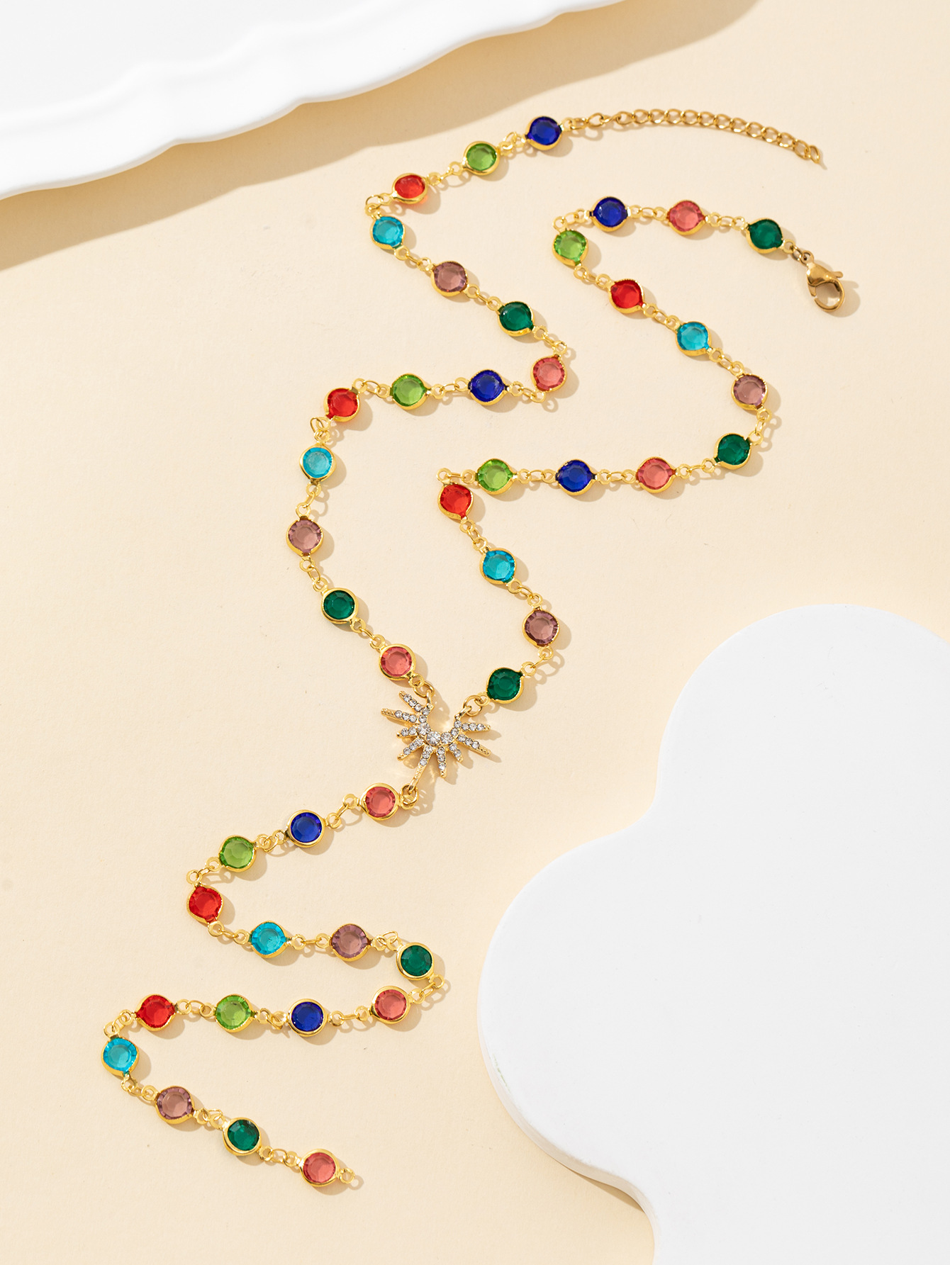 컬러 다이아몬드 유리 Y자형 체인 0843