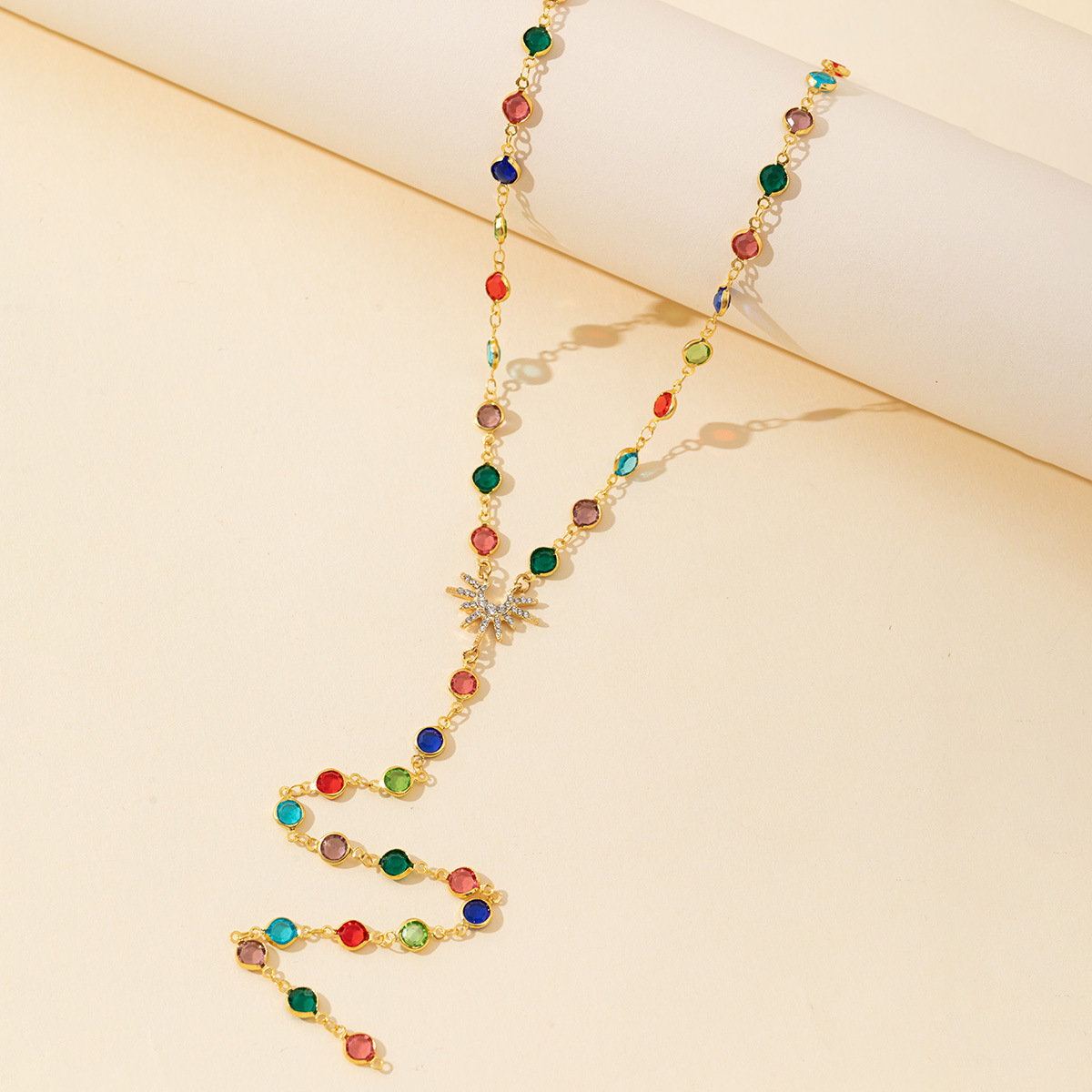 유럽과 미국 국경 보석 패션 컬러 라운드 유리 긴 목걸이 Y 체인 폭발
