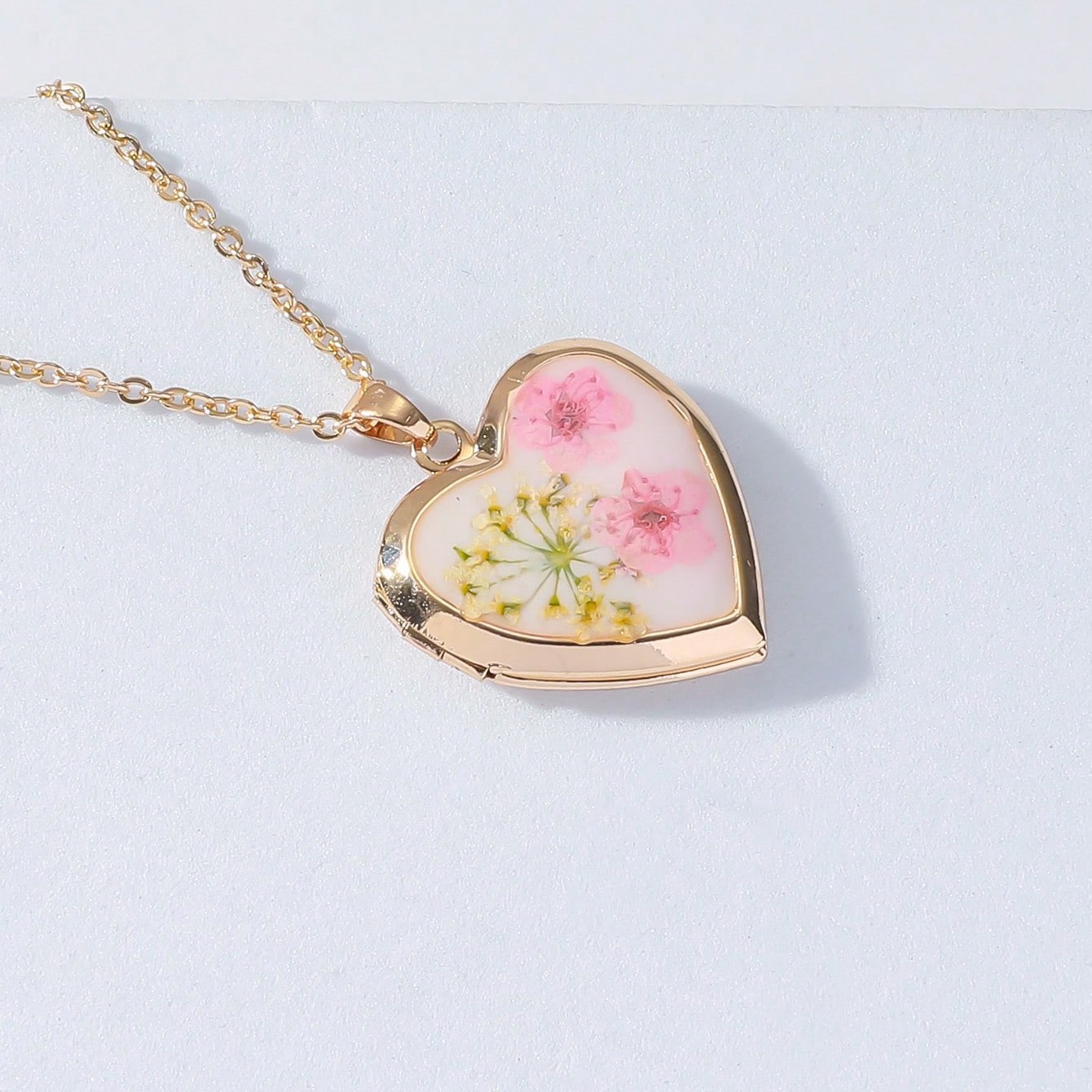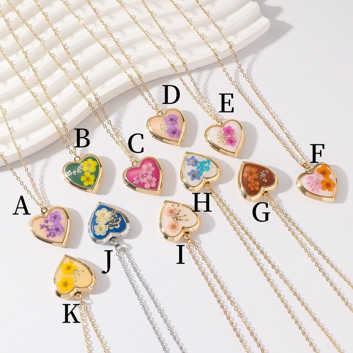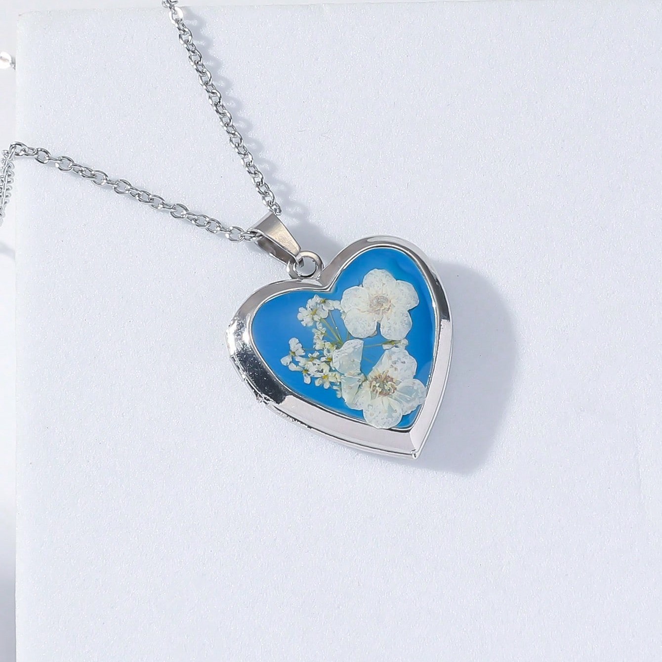 국경을 넘는 인기 상품, 수제 꽃무늬 물망초 사진함 목걸이, 사진이 들어있는 구리 하트 펜던트