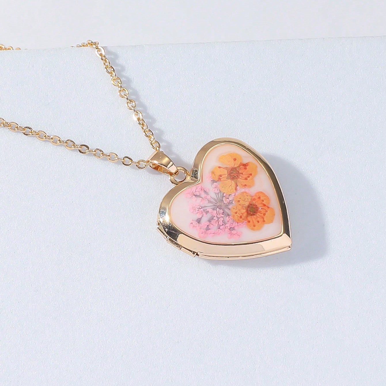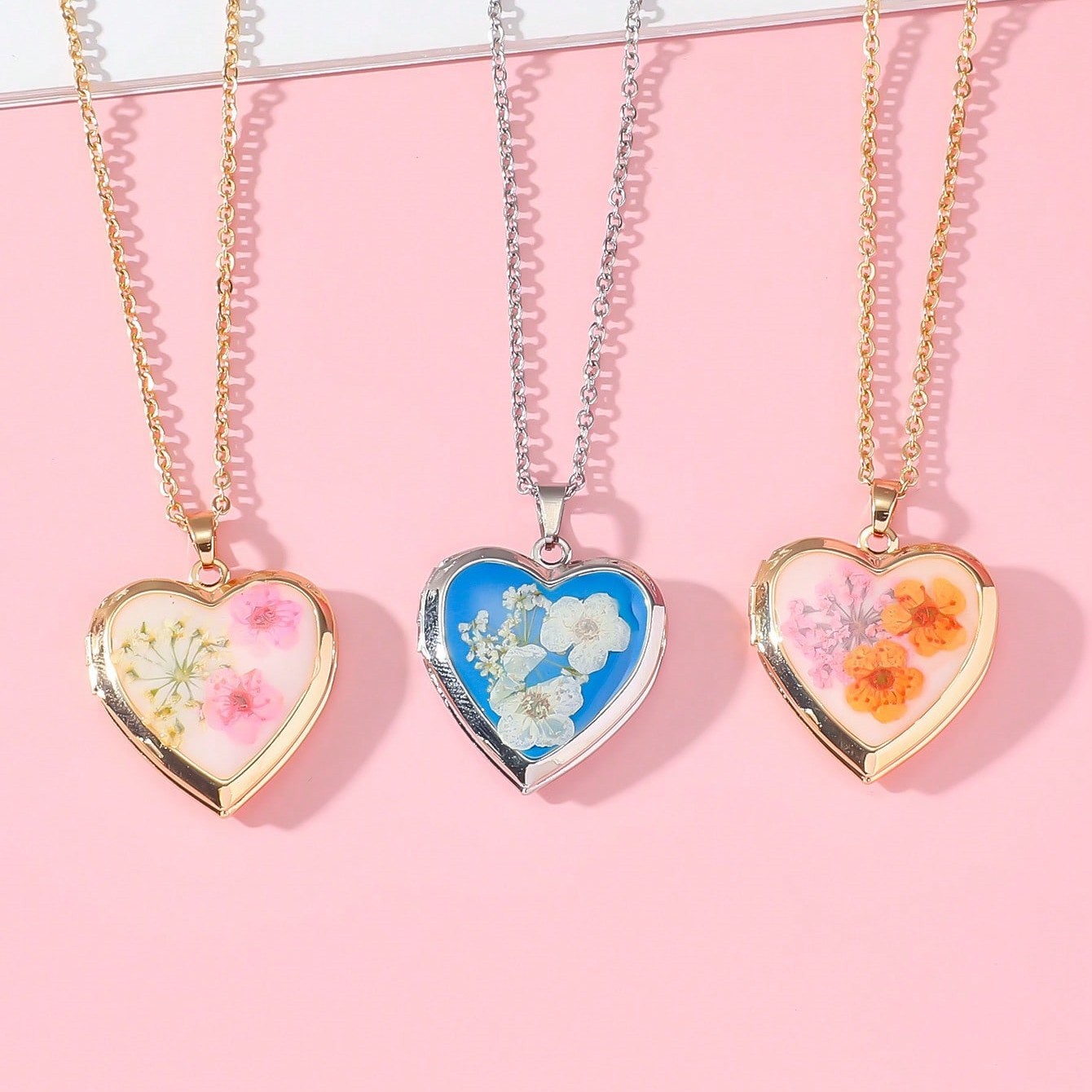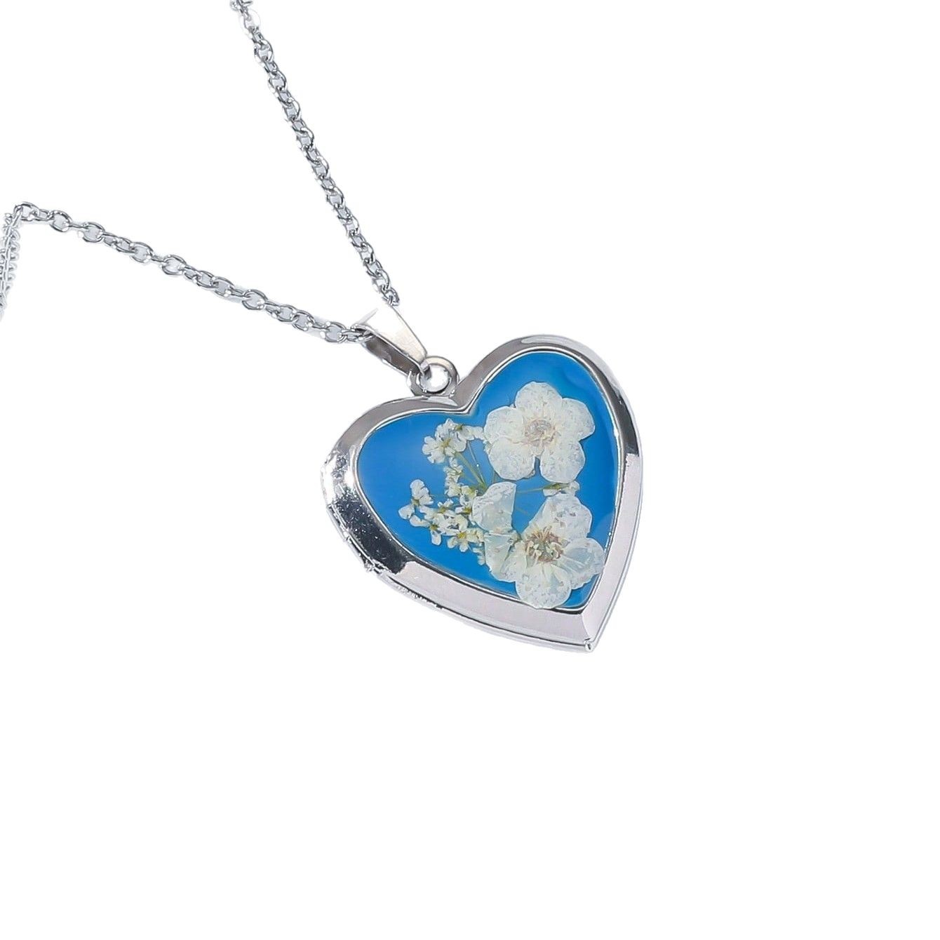 국경을 넘는 인기 상품, 수제 꽃무늬 물망초 사진함 목걸이, 사진이 들어있는 구리 하트 펜던트