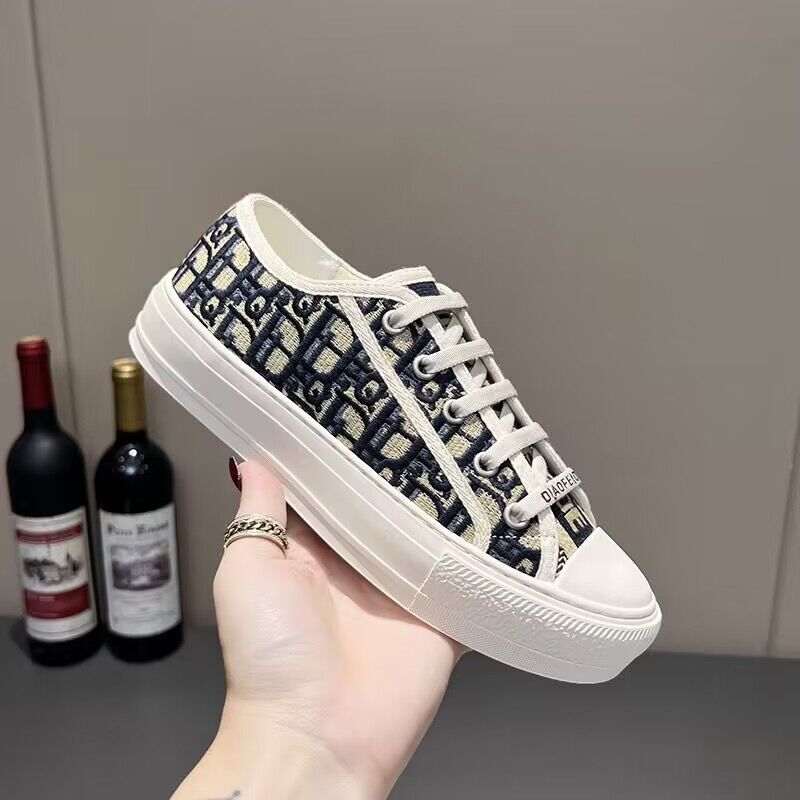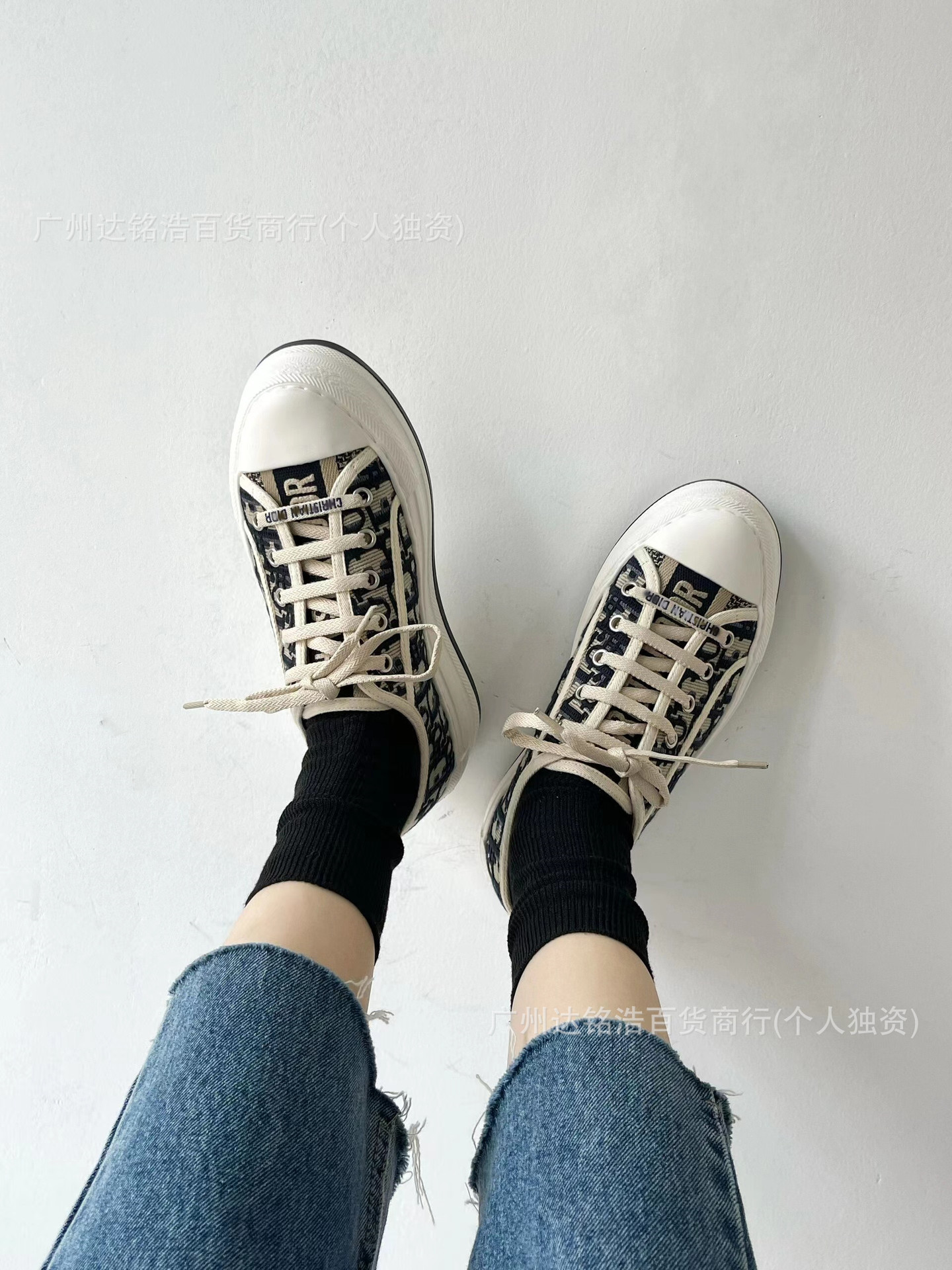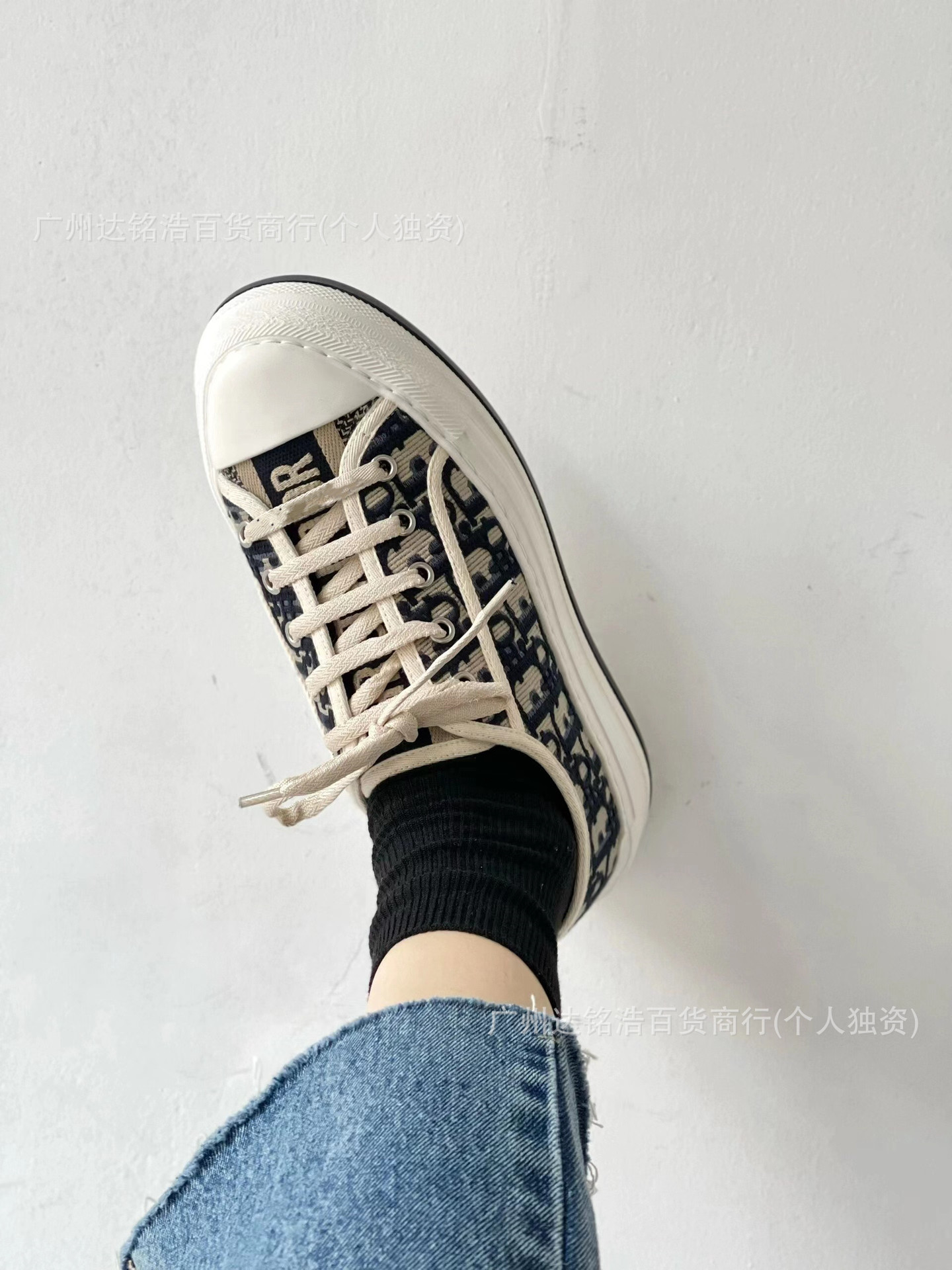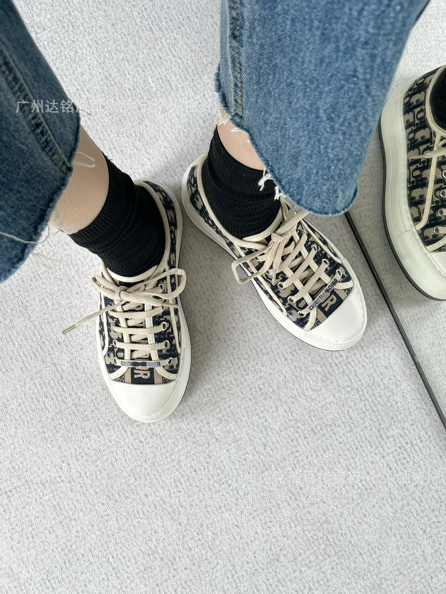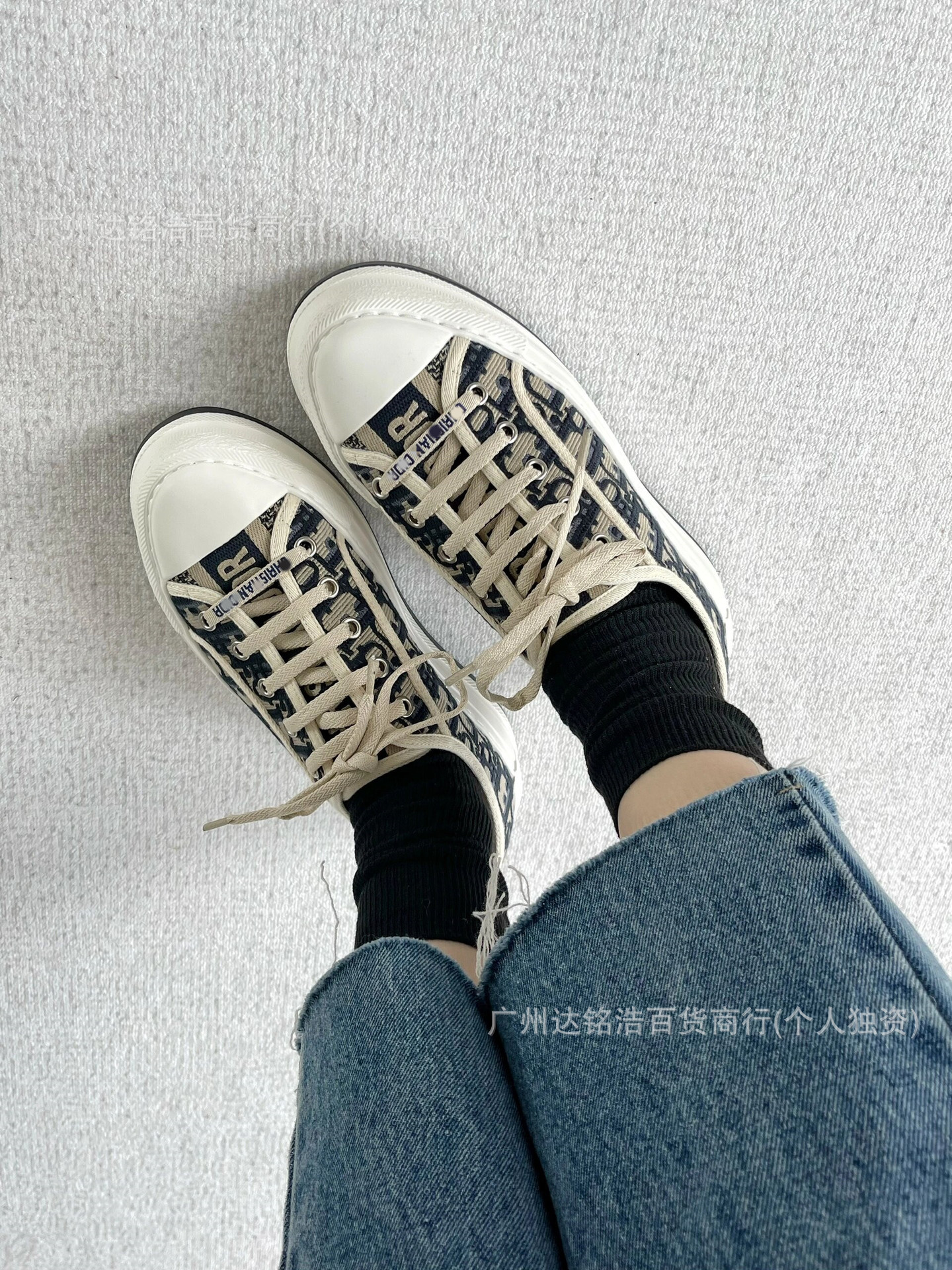 2026년 봄 D 브랜드 자수 캔버스화 캐주얼 레트로 레터링 다용도 두꺼운 밑창 운동화 여성 레트로 스타일