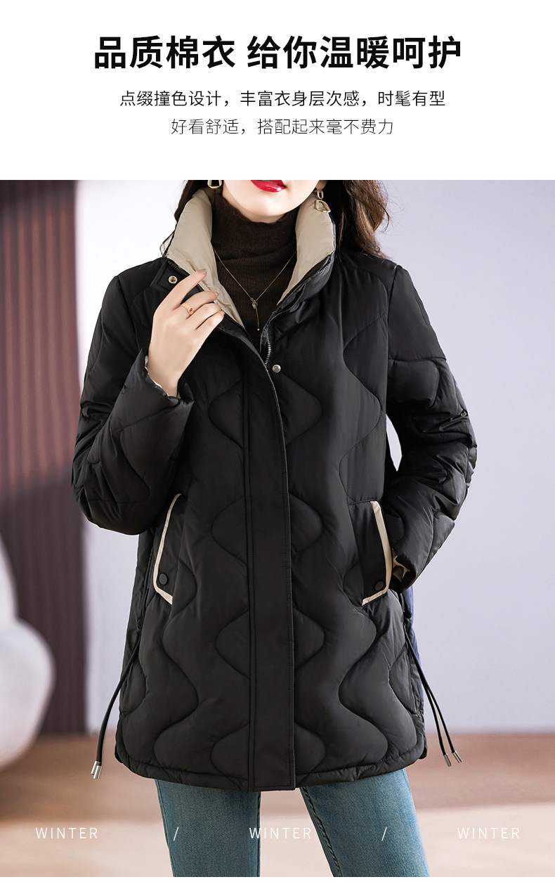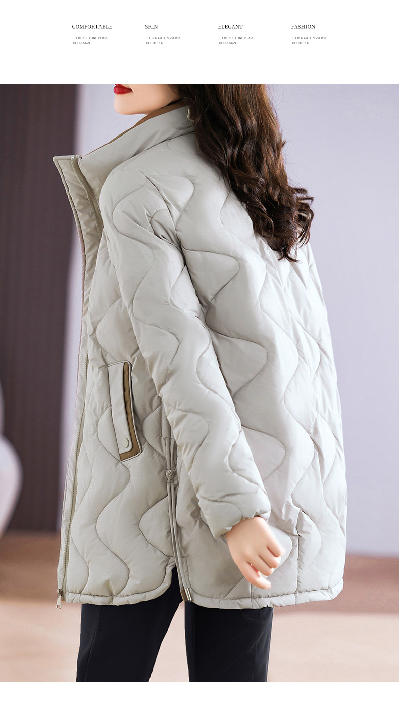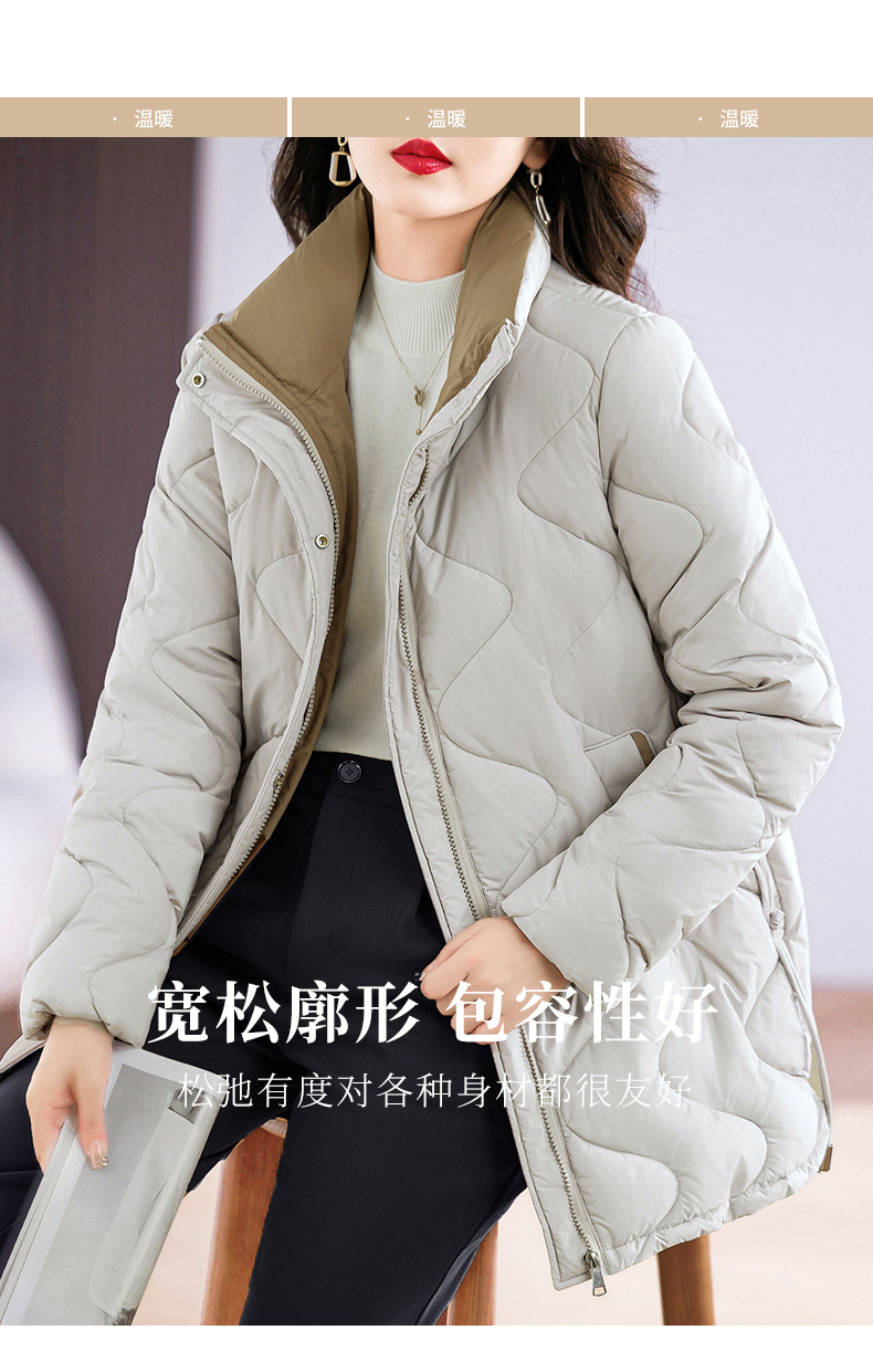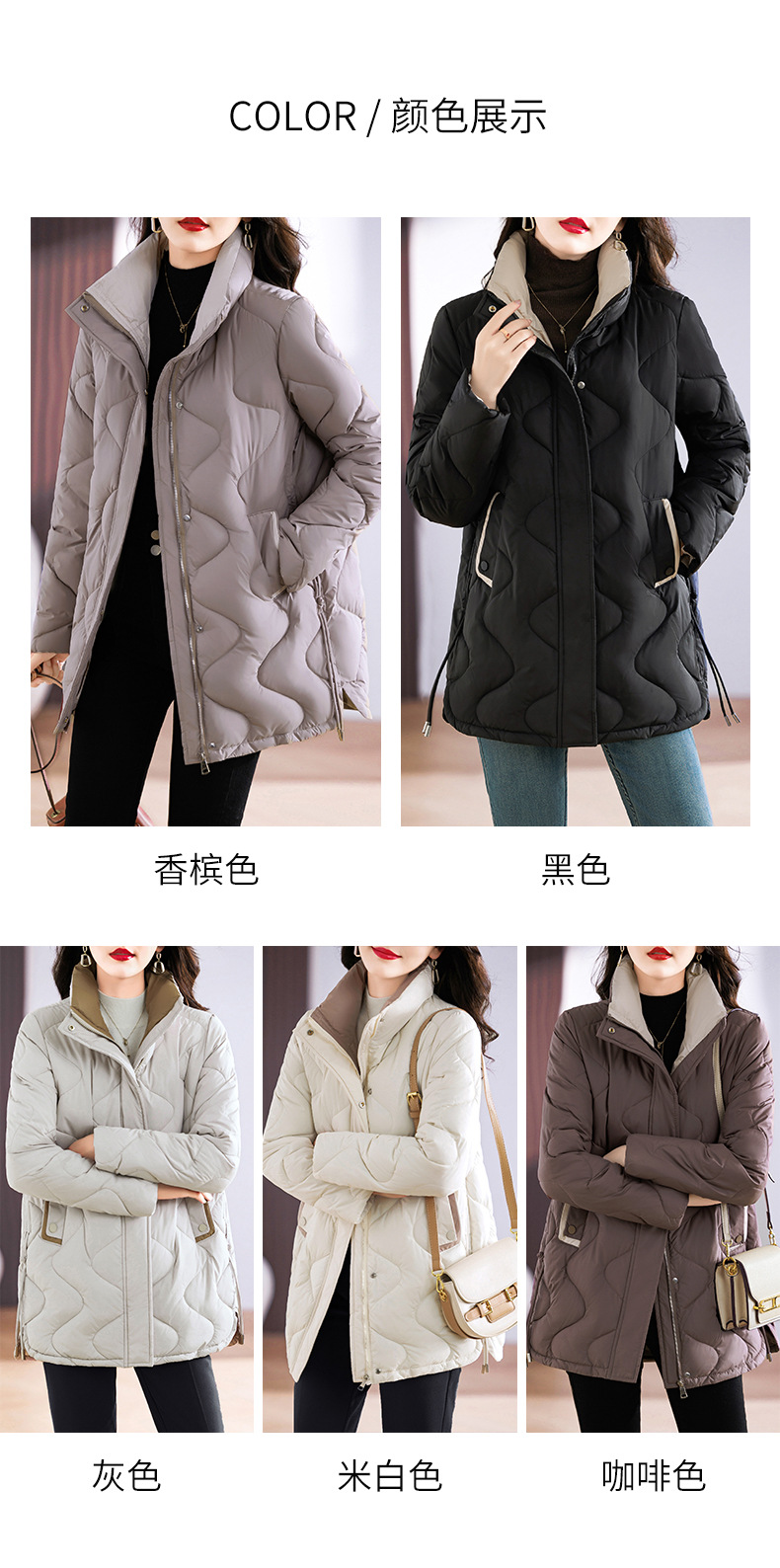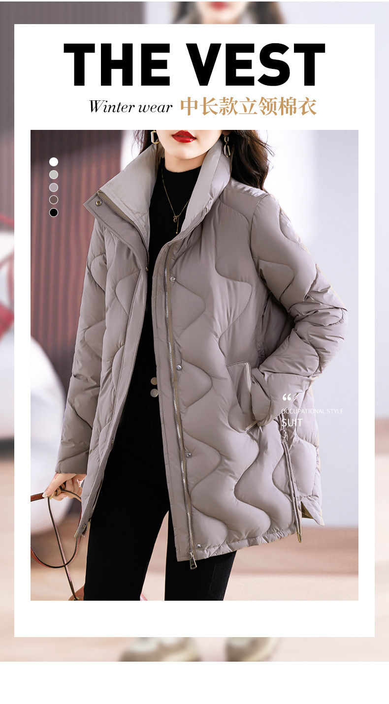다운 코튼 패딩 재킷 여자 중간 길이의 새로운 한국 스타일 느슨한 두꺼운 수직 칼라 슬림 룩 코튼 패딩 재킷 올매치 코튼 패딩 재킷