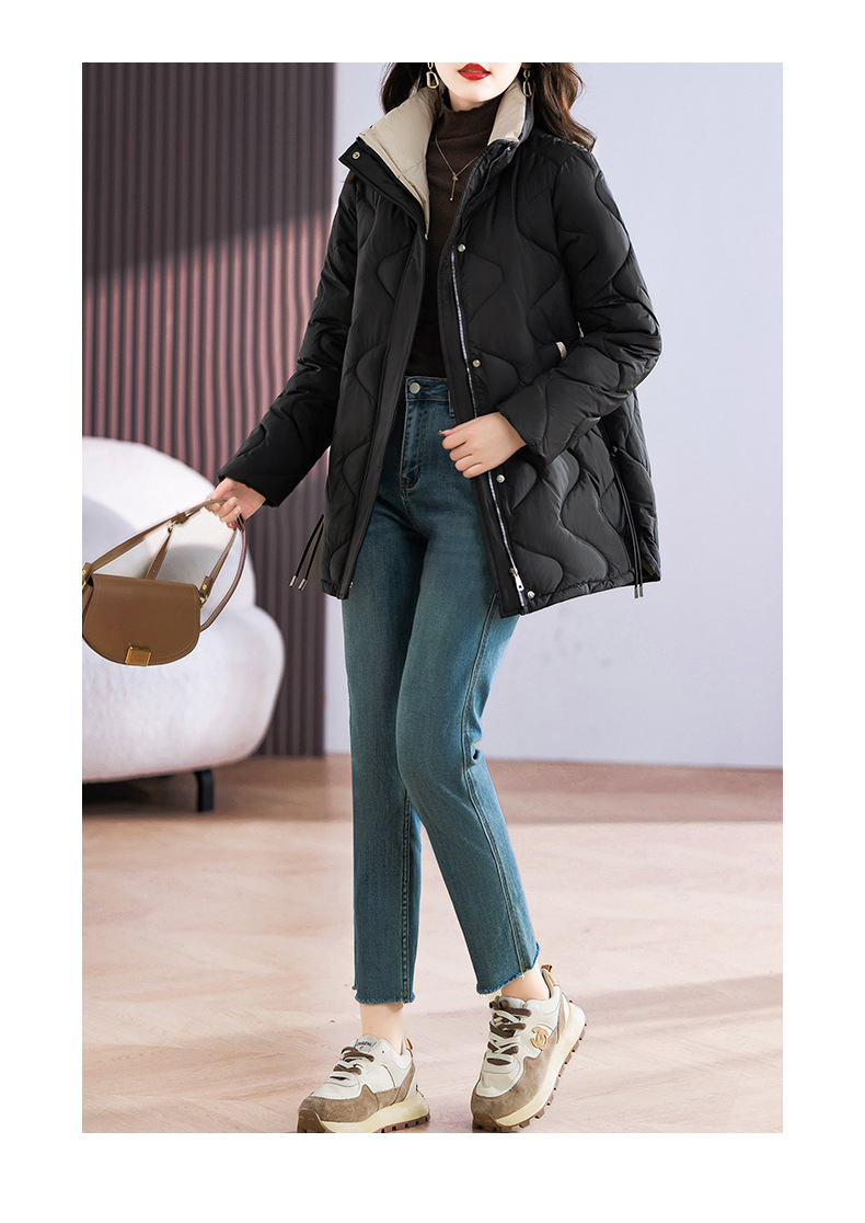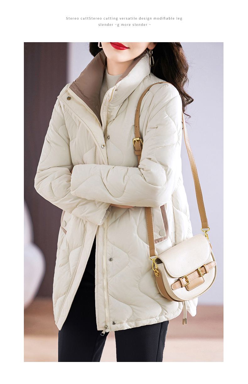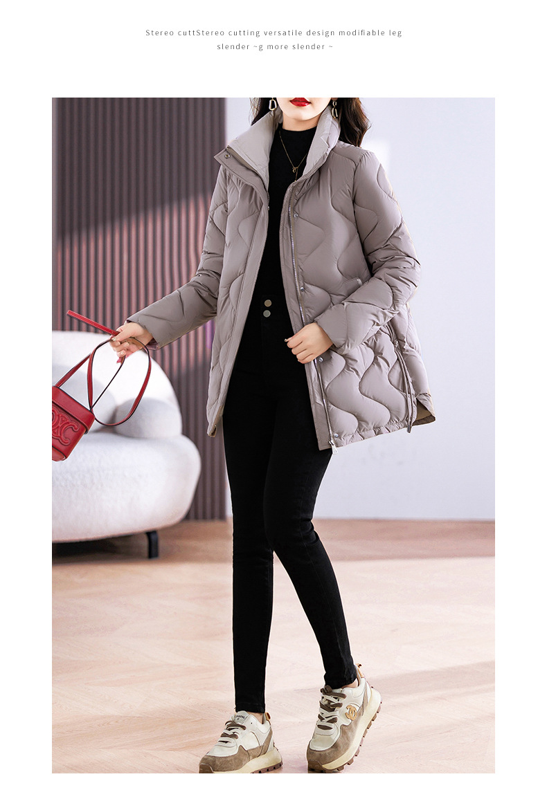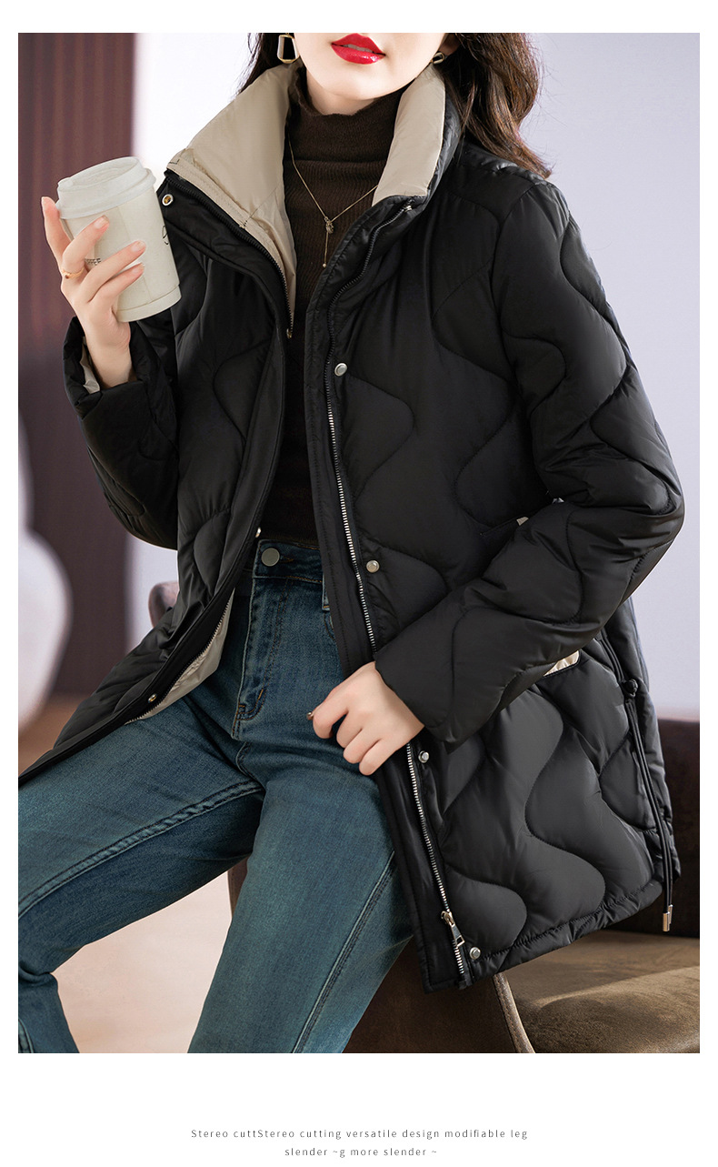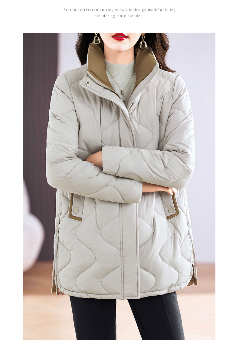 다운 코튼 패딩 재킷 여자 중간 길이의 새로운 한국 스타일 느슨한 두꺼운 수직 칼라 슬림 룩 코튼 패딩 재킷 올매치 코튼 패딩 재킷