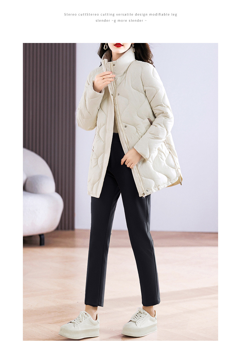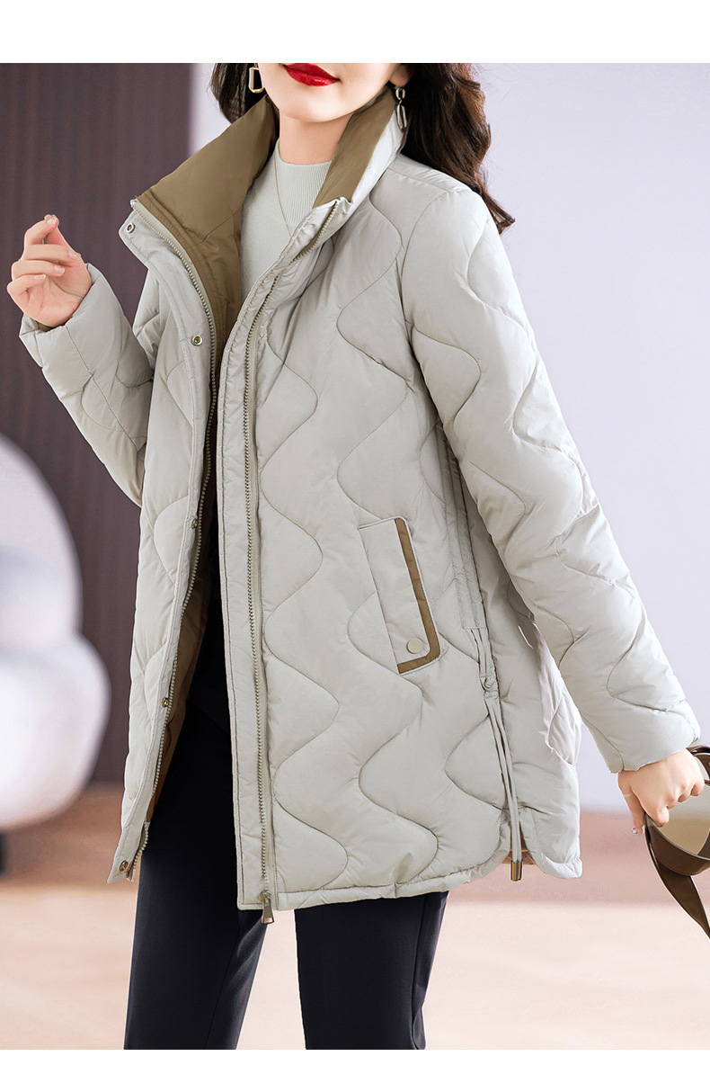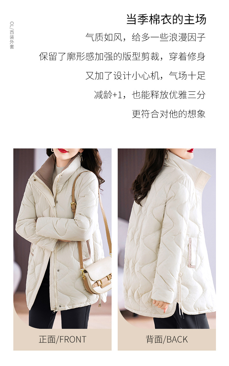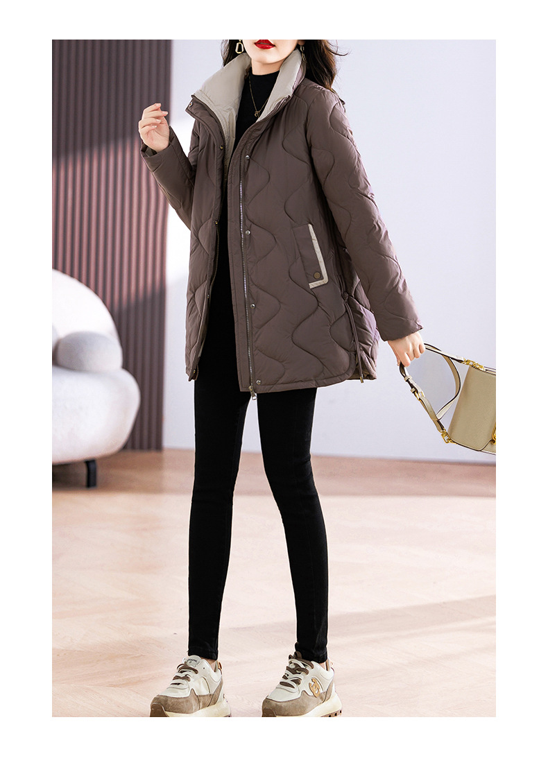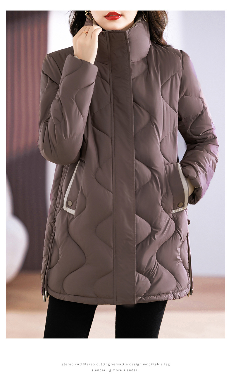 다운 코튼 패딩 재킷 여자 중간 길이의 새로운 한국 스타일 느슨한 두꺼운 수직 칼라 슬림 룩 코튼 패딩 재킷 올매치 코튼 패딩 재킷