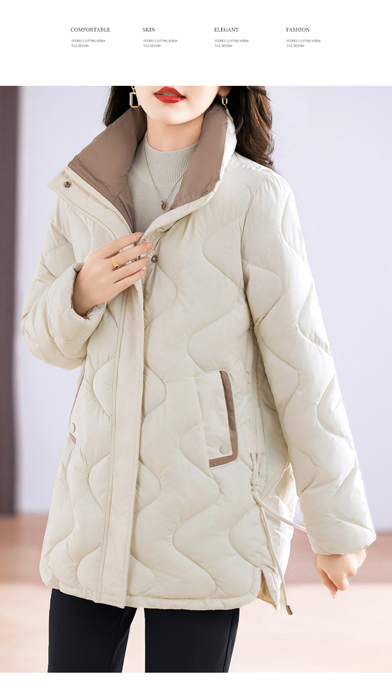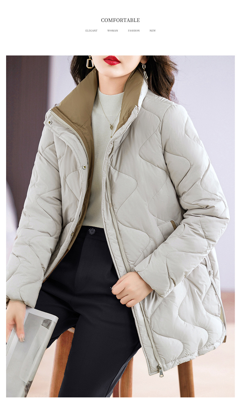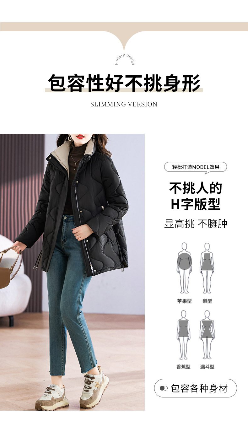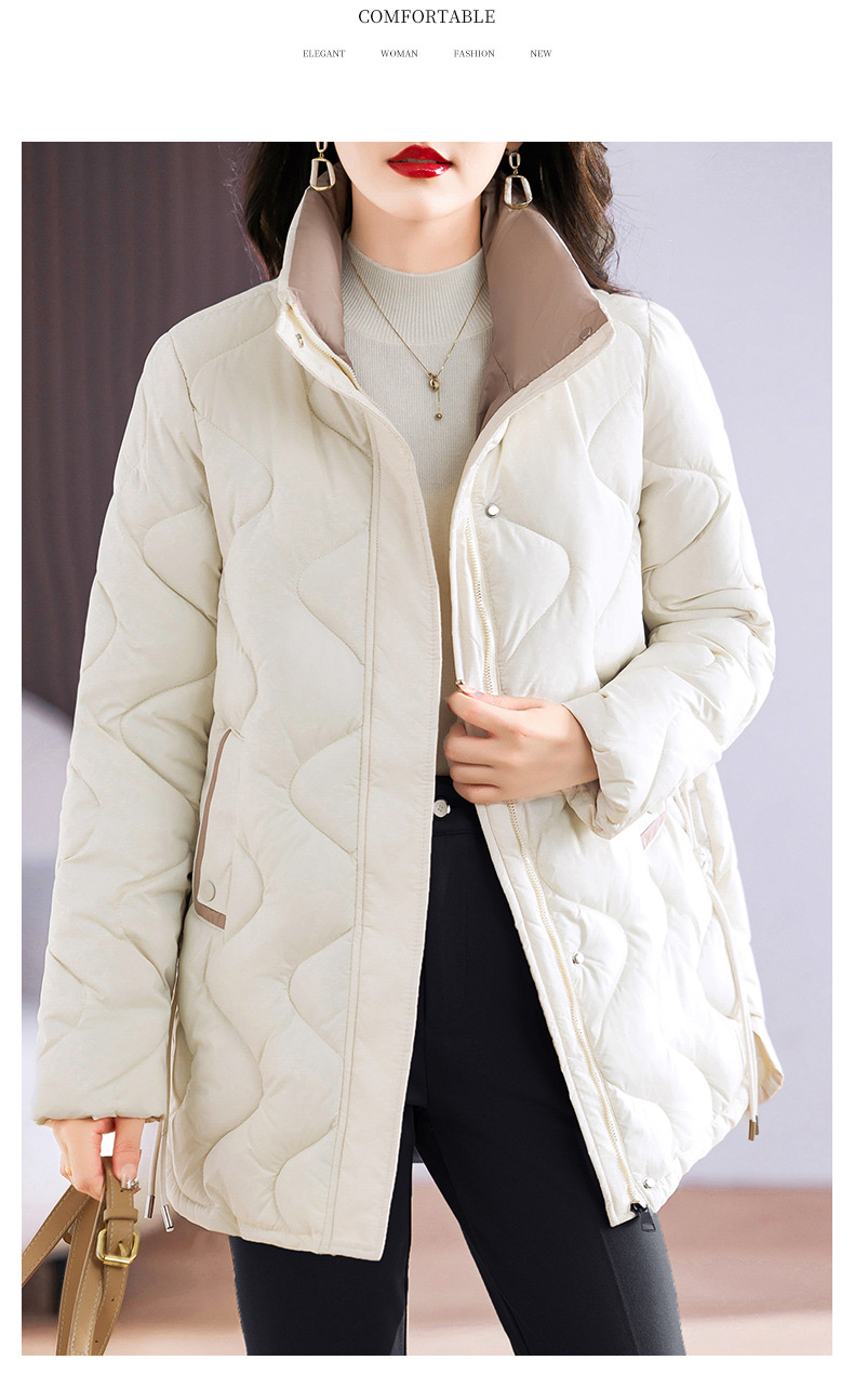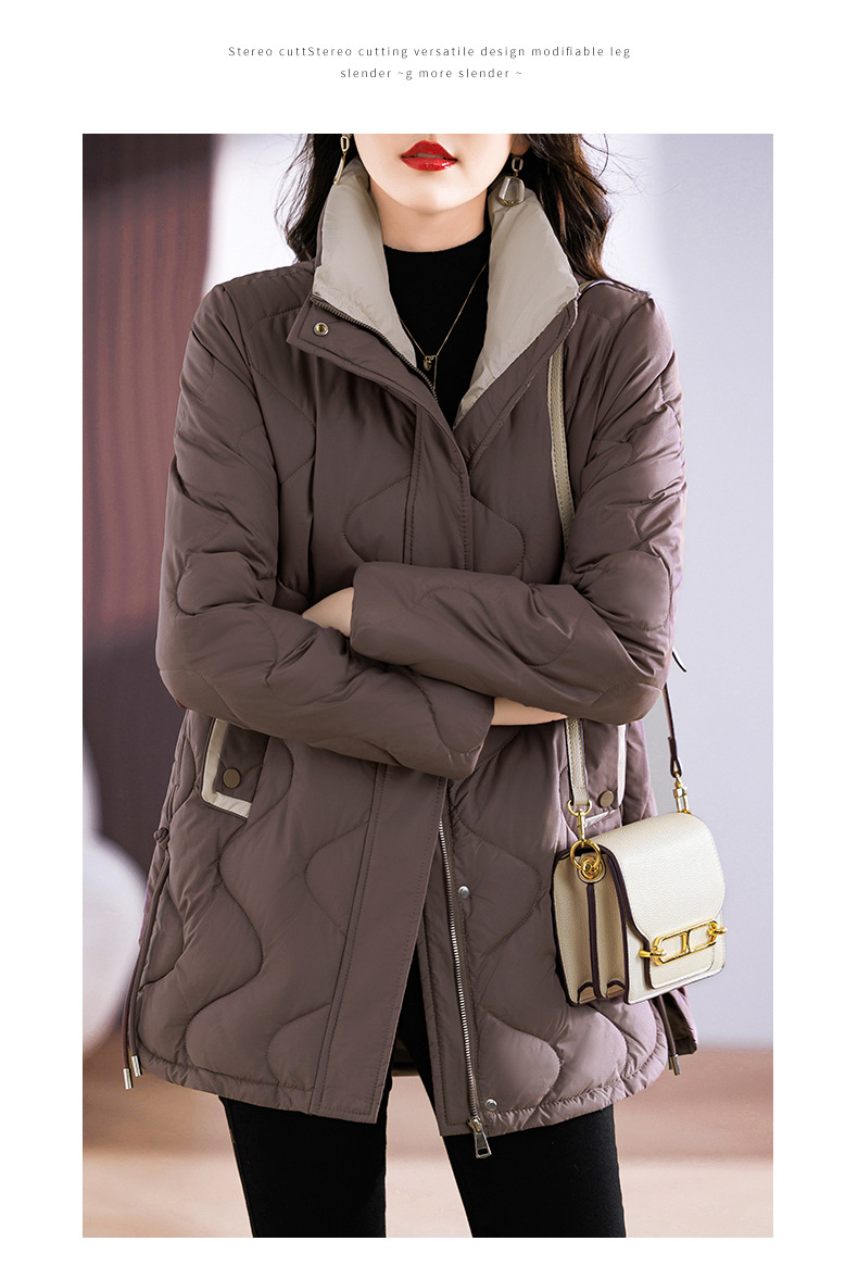 다운 코튼 패딩 재킷 여자 중간 길이의 새로운 한국 스타일 느슨한 두꺼운 수직 칼라 슬림 룩 코튼 패딩 재킷 올매치 코튼 패딩 재킷