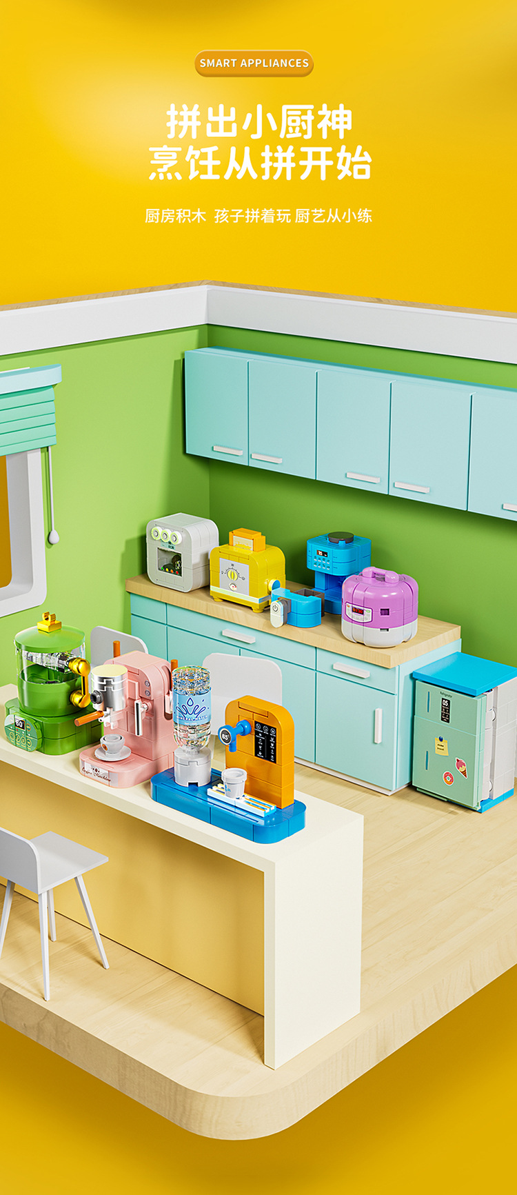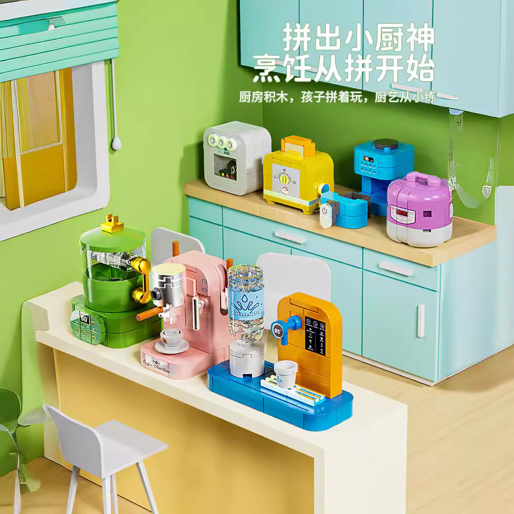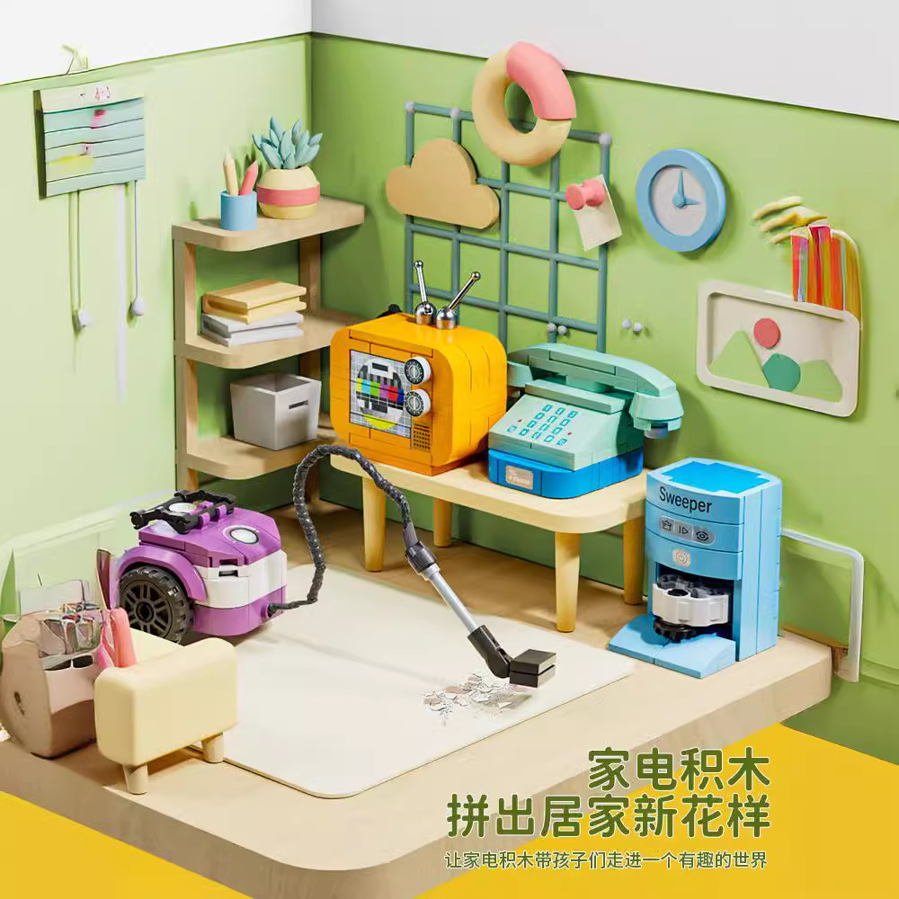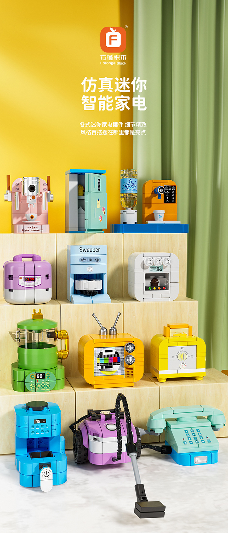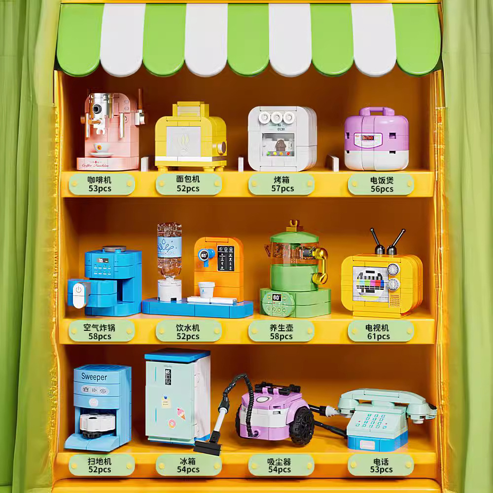 팡 오렌지 가전 세트 TV 냉장고 커피 머신 밥솥 조립 모델 어린이 조립 건물 블록 장난감 선물