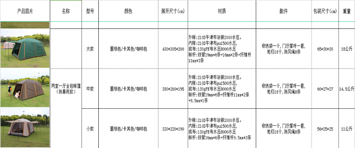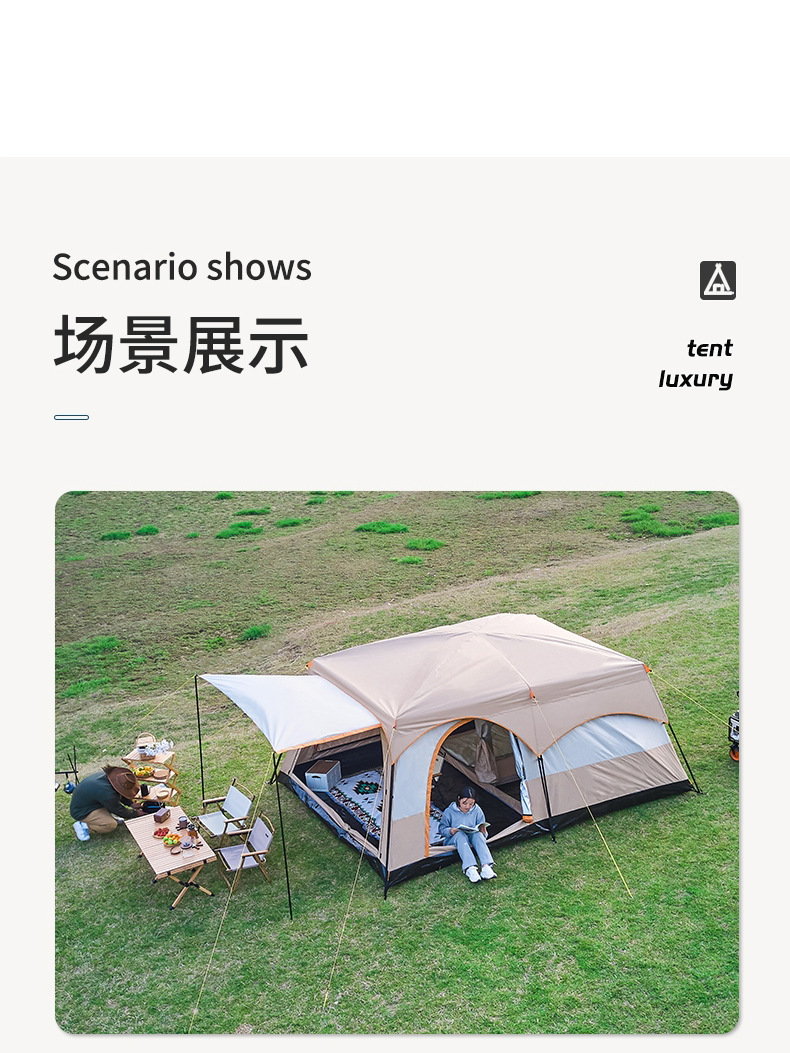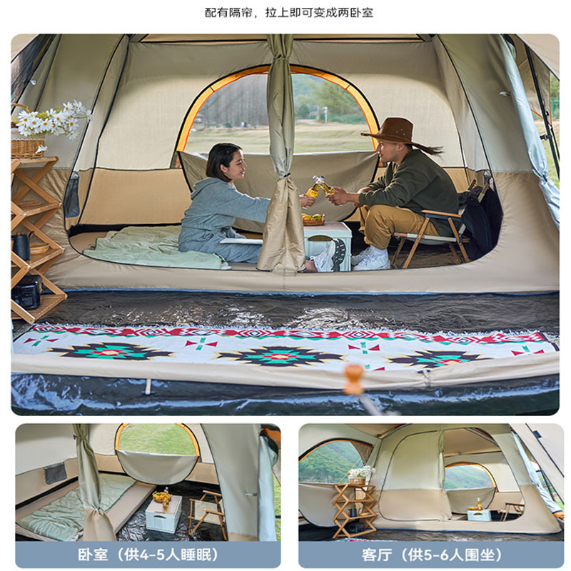 야외 캠핑 텐트 2 개 방 1 홀 공원 캠핑 용품 장비 휴대용 접이식 선 스크린 2 개 방 1 개 홀
