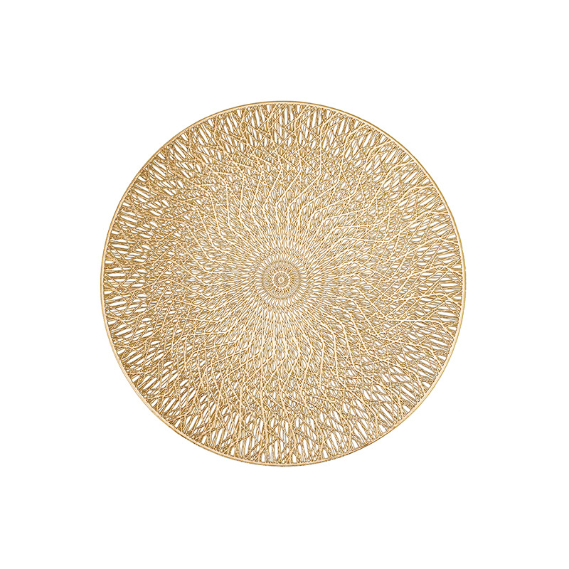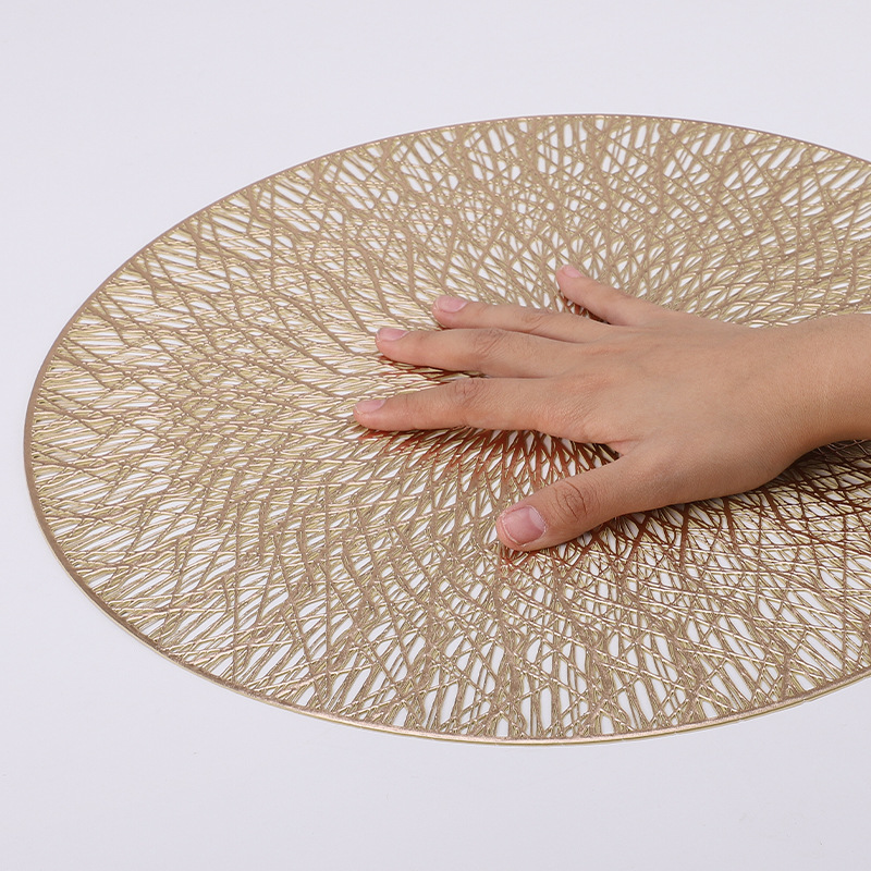 생 테슬린 노르딕 스타일 핫 스탬핑 PVC 할로우 라운드 다이닝 매트 가정용 간단한 서양 레스토랑 다이닝 매트 친환경 테이블 매트