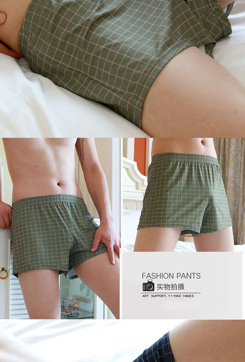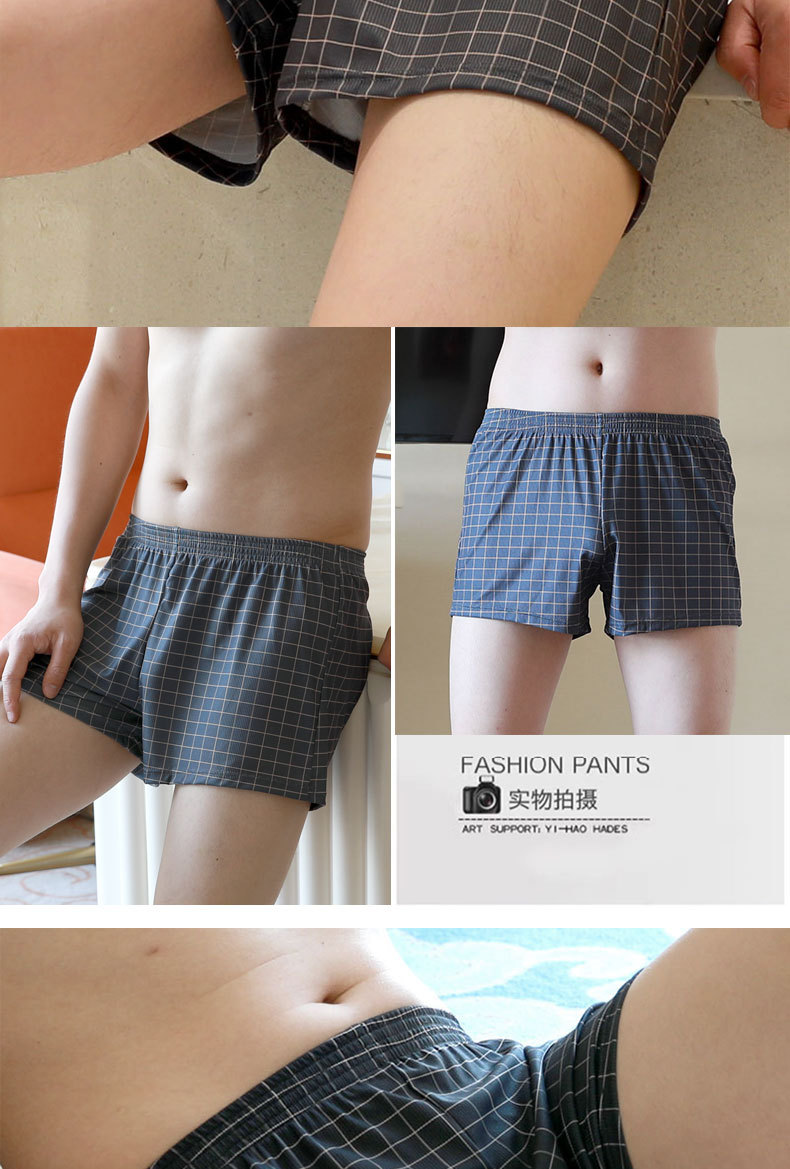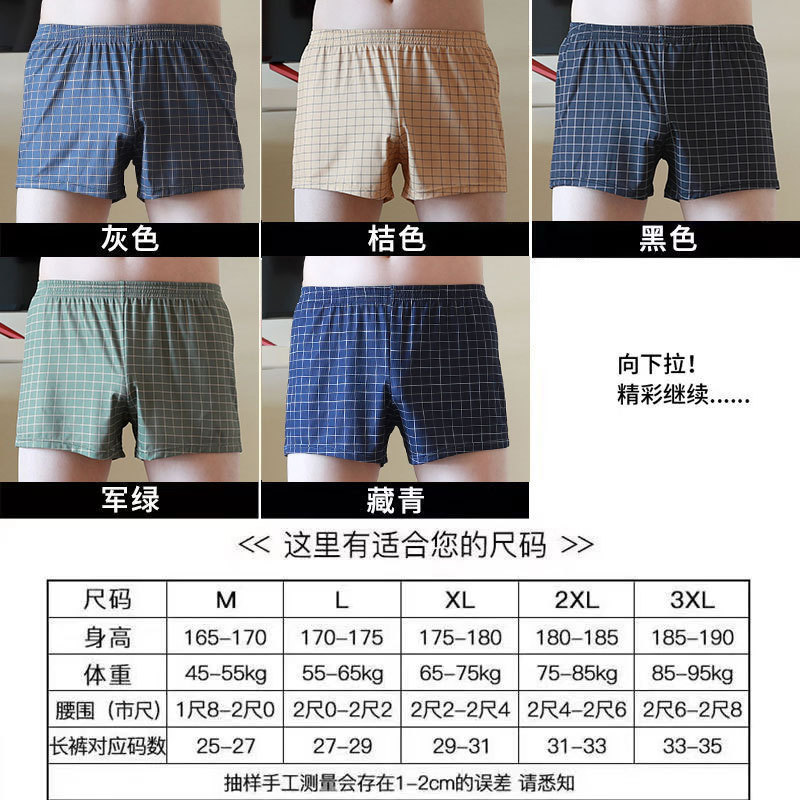 남자 플러스 사이즈 면 격자 무늬 줄무늬 알로 바지 느슨한 통기성 복서 플러스 뚱뚱한 가정 파자마 복서 남자 속옷