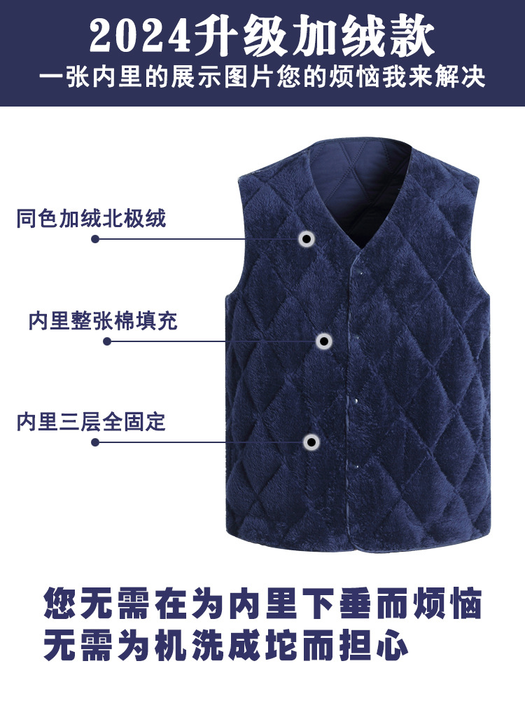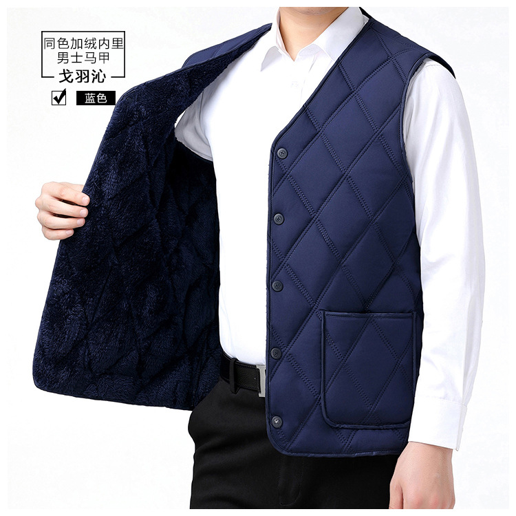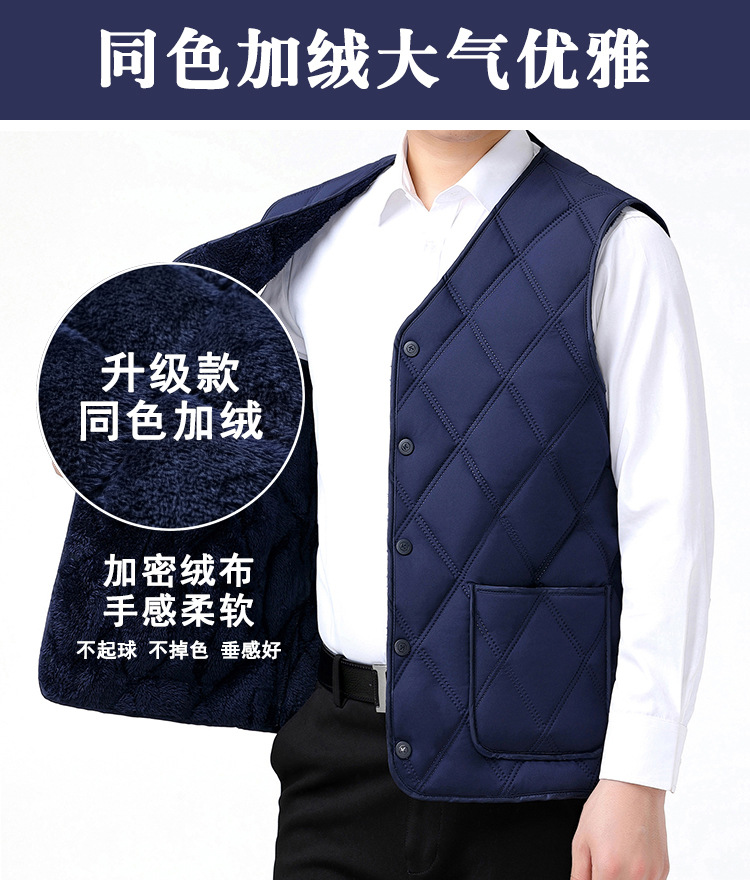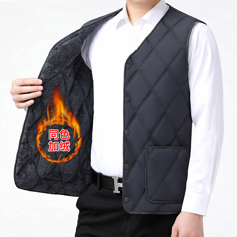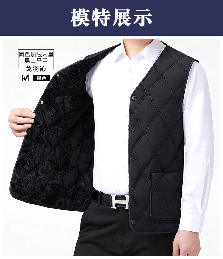 중노년용 다운 코튼 조끼, 두꺼운 신상 남성용 동일 색상 플리스 안감 조끼, 짧은 스타일, 큰 사이즈 조끼, 아빠용 조끼