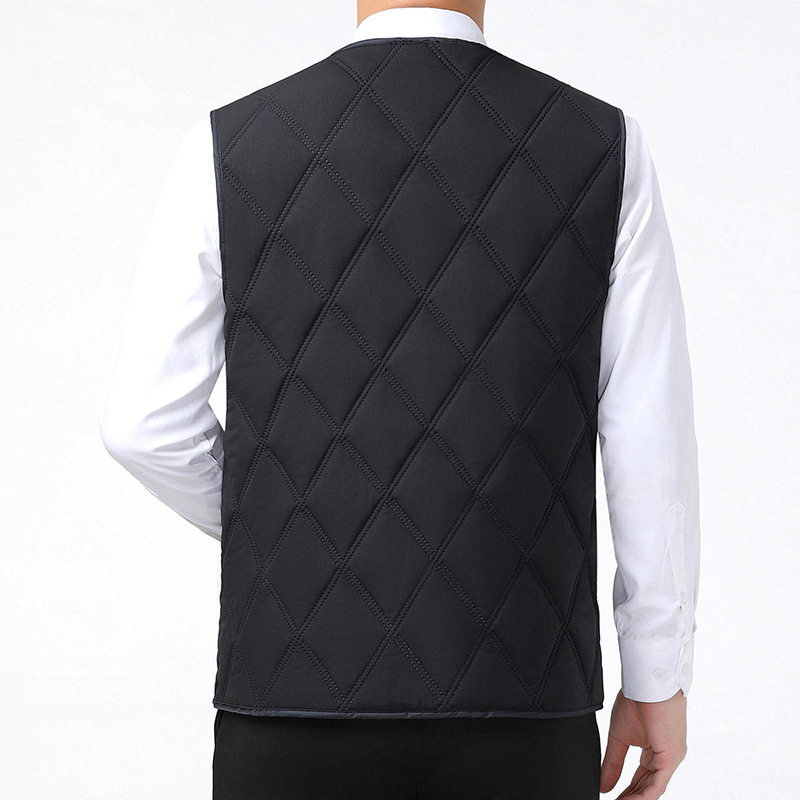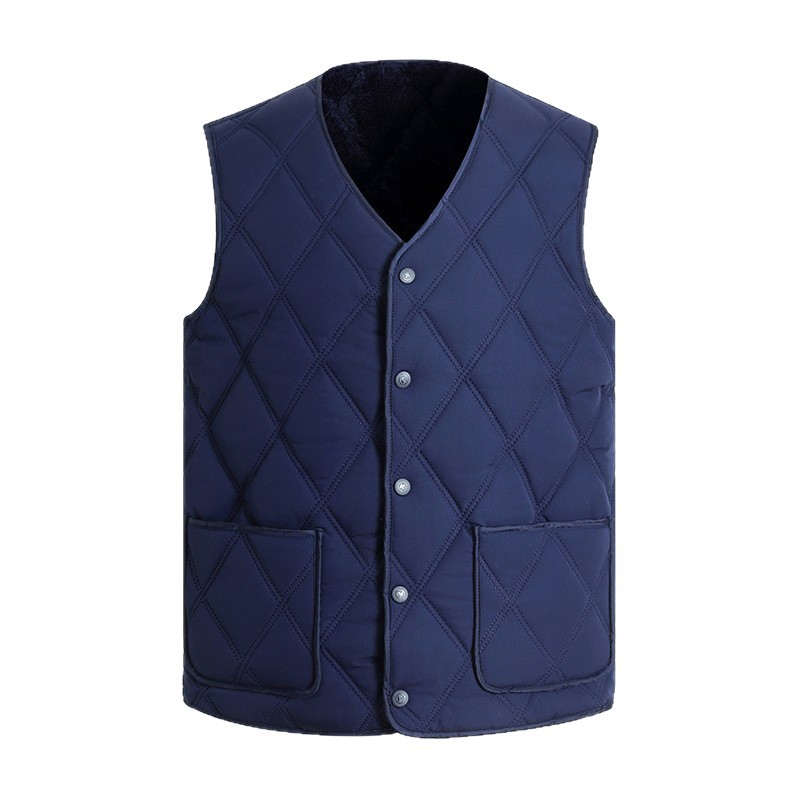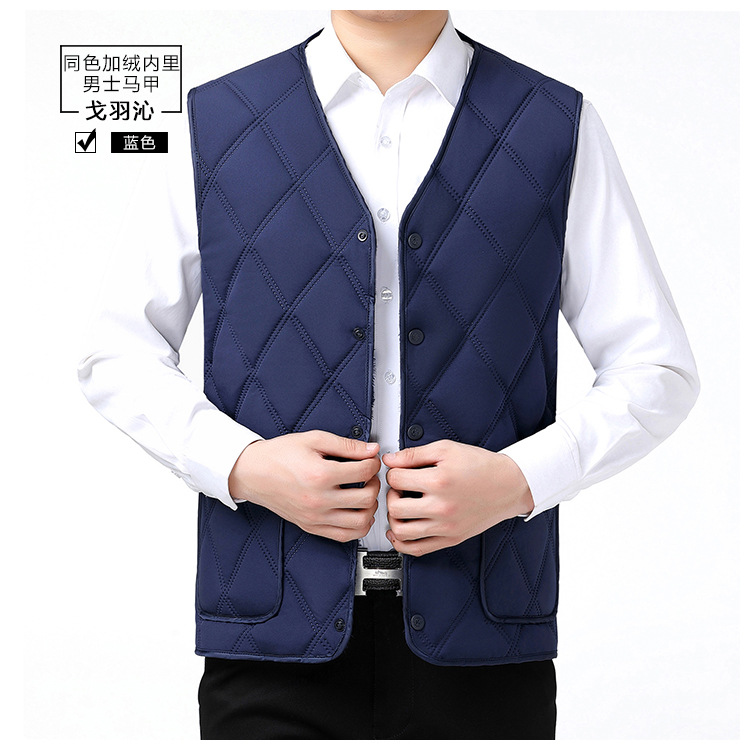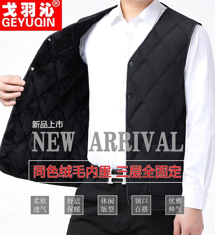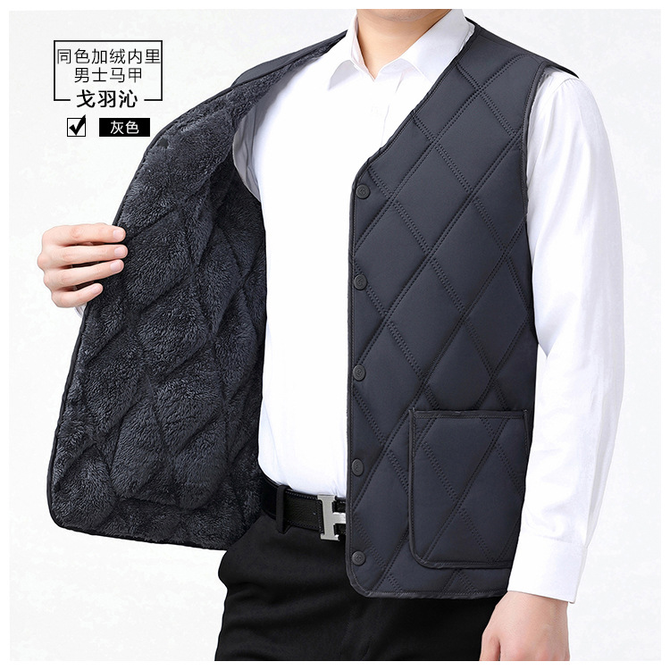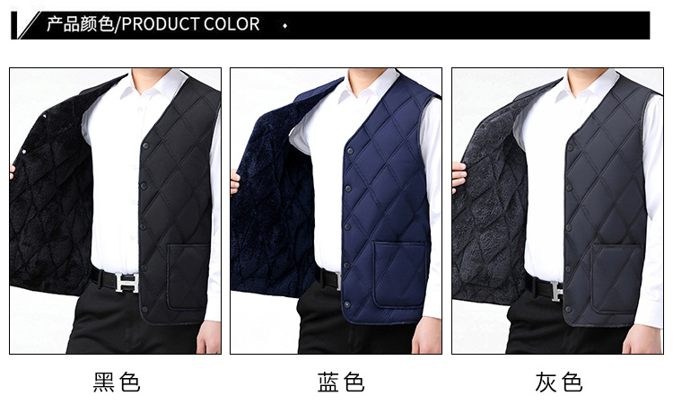 중노년용 다운 코튼 조끼, 두꺼운 신상 남성용 동일 색상 플리스 안감 조끼, 짧은 스타일, 큰 사이즈 조끼, 아빠용 조끼