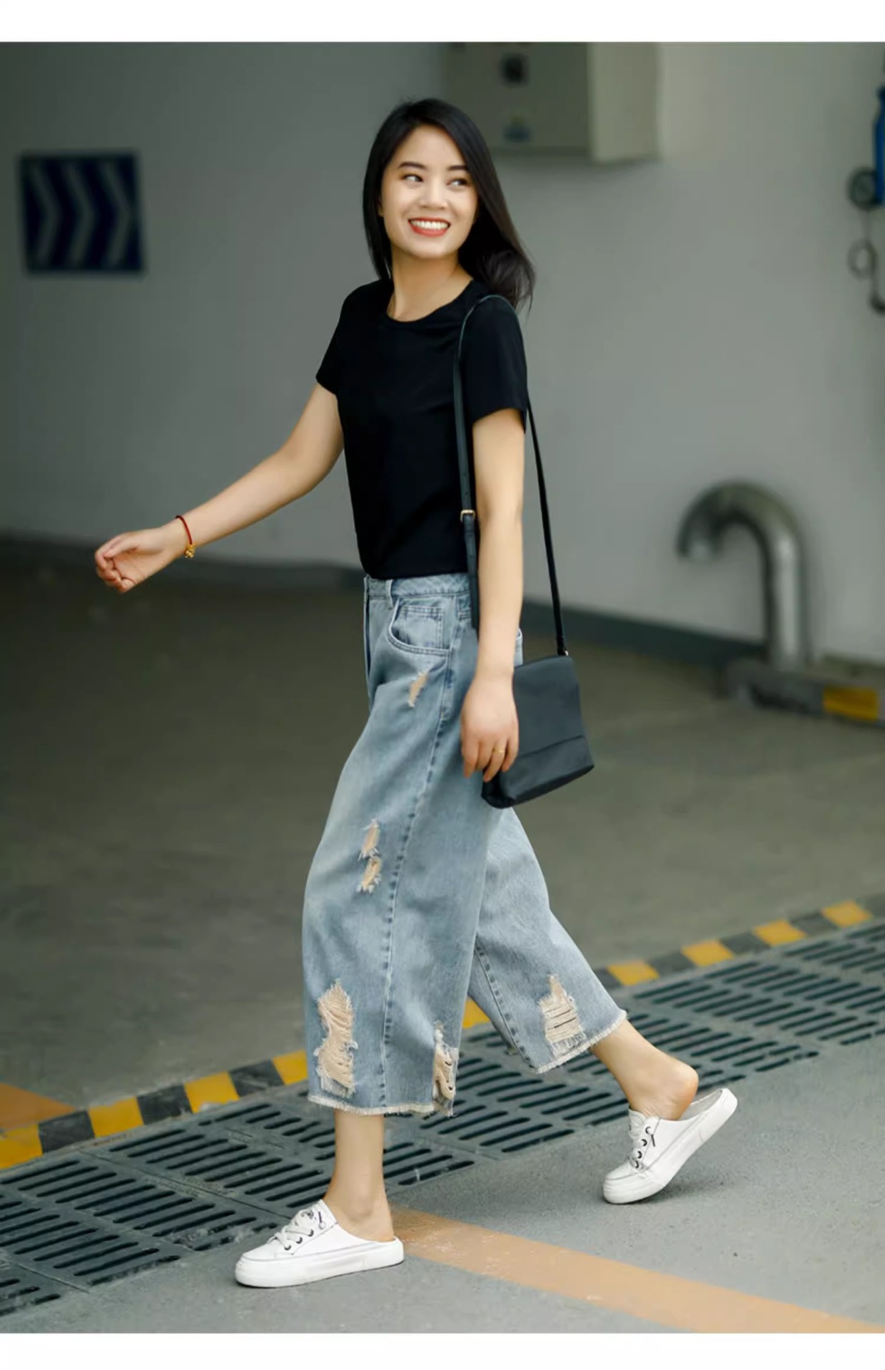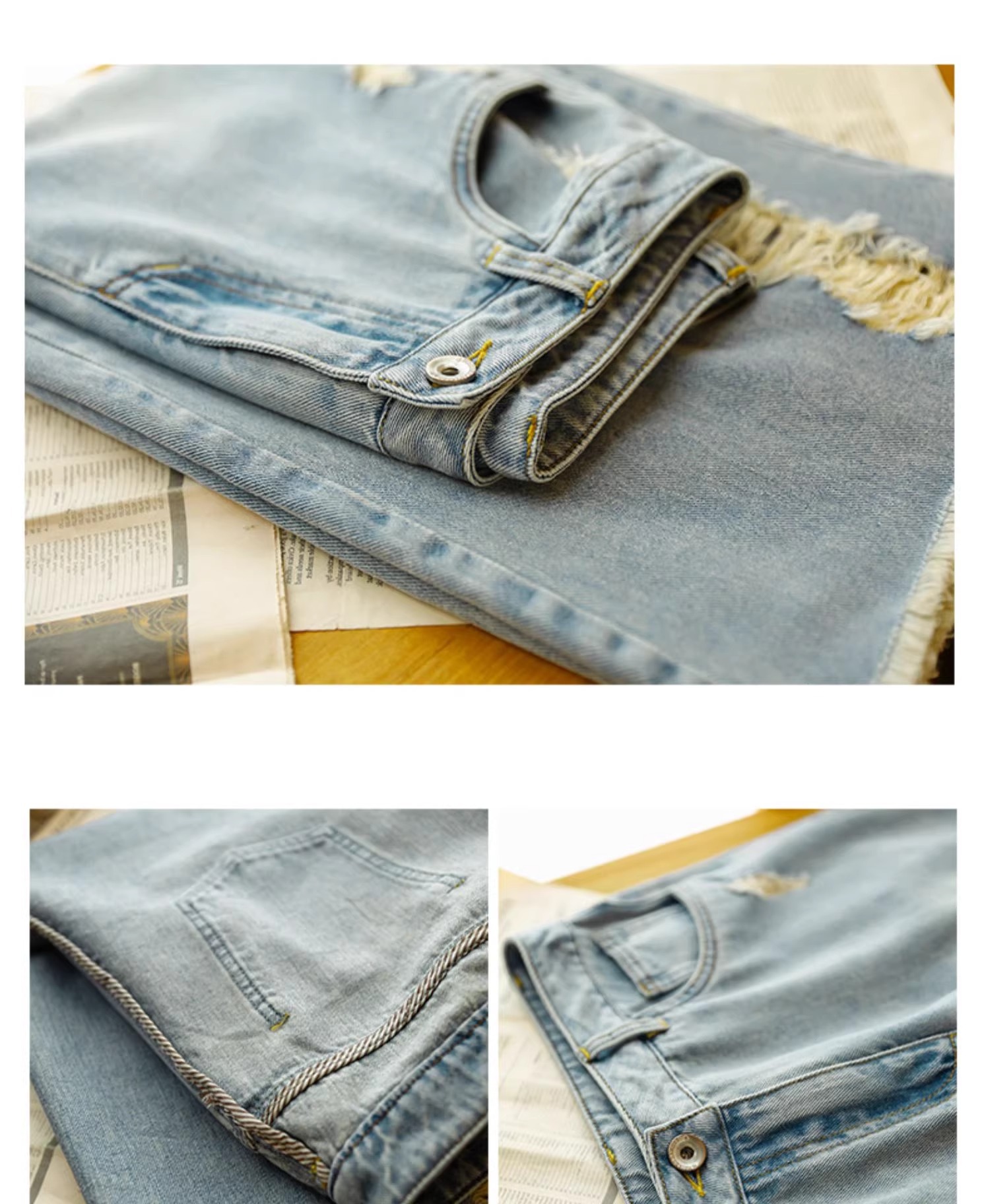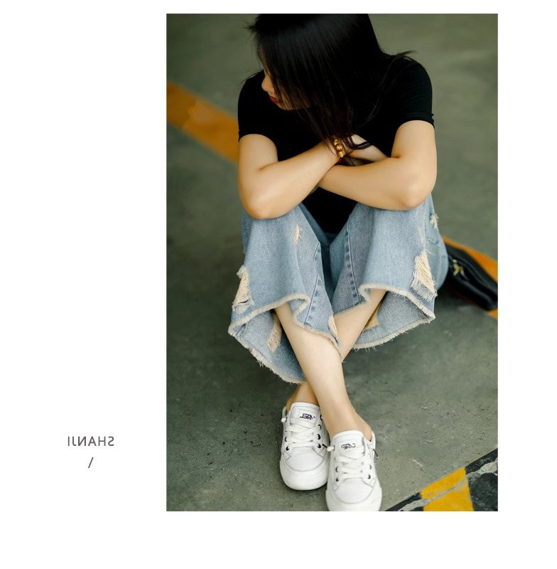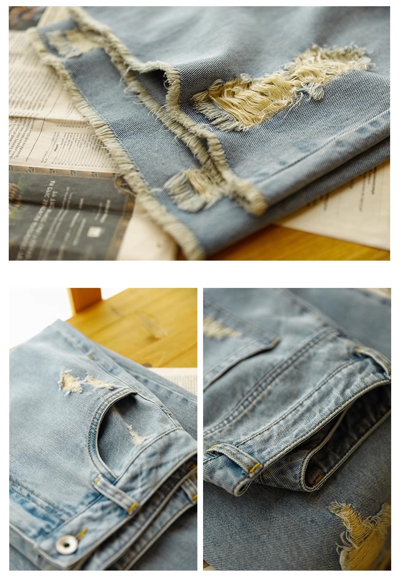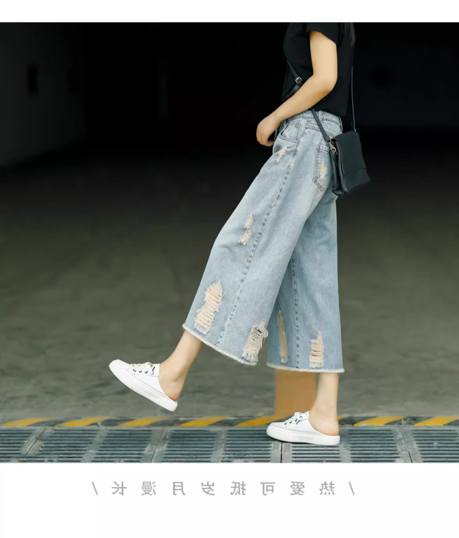 빈티지 드레스 찢어진 청바지 여성용 여름 얇은 높은 허리 느슨한 넓은 다리 바지 여성용 짧은 자른 캐주얼 바지
