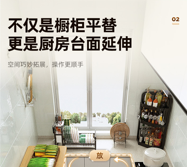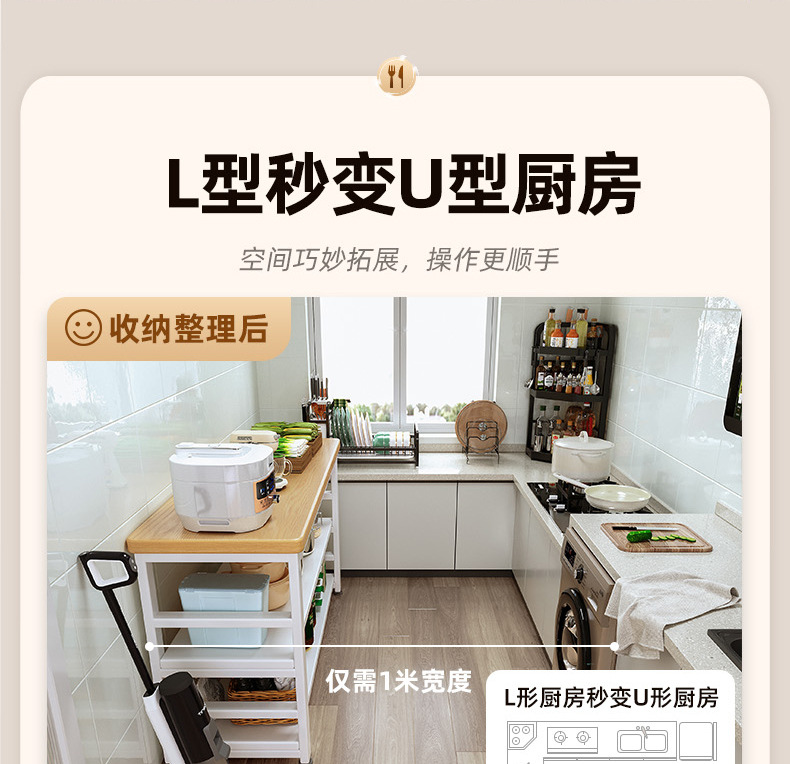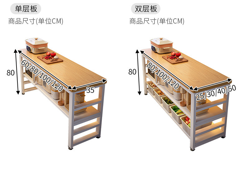 [두꺼운 30mm 조리대] 2층은 길이 80cm, 폭 35cm, 높이 80cm입니다.