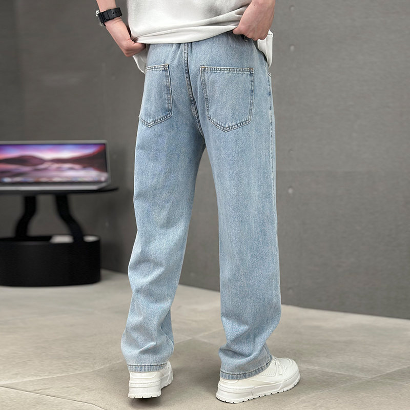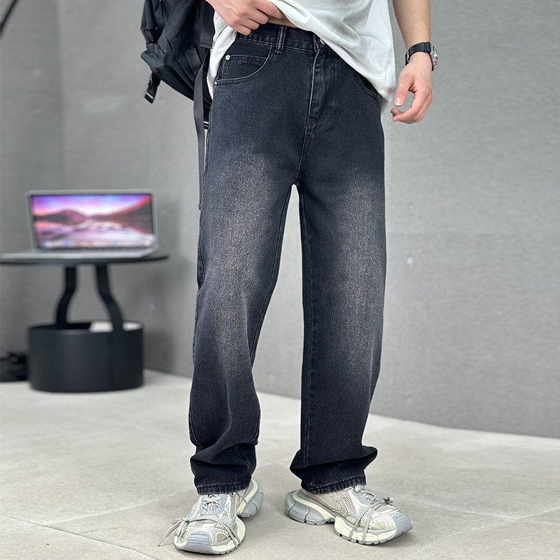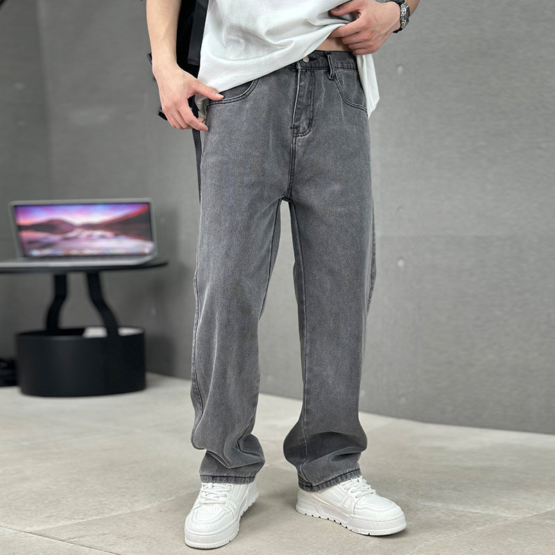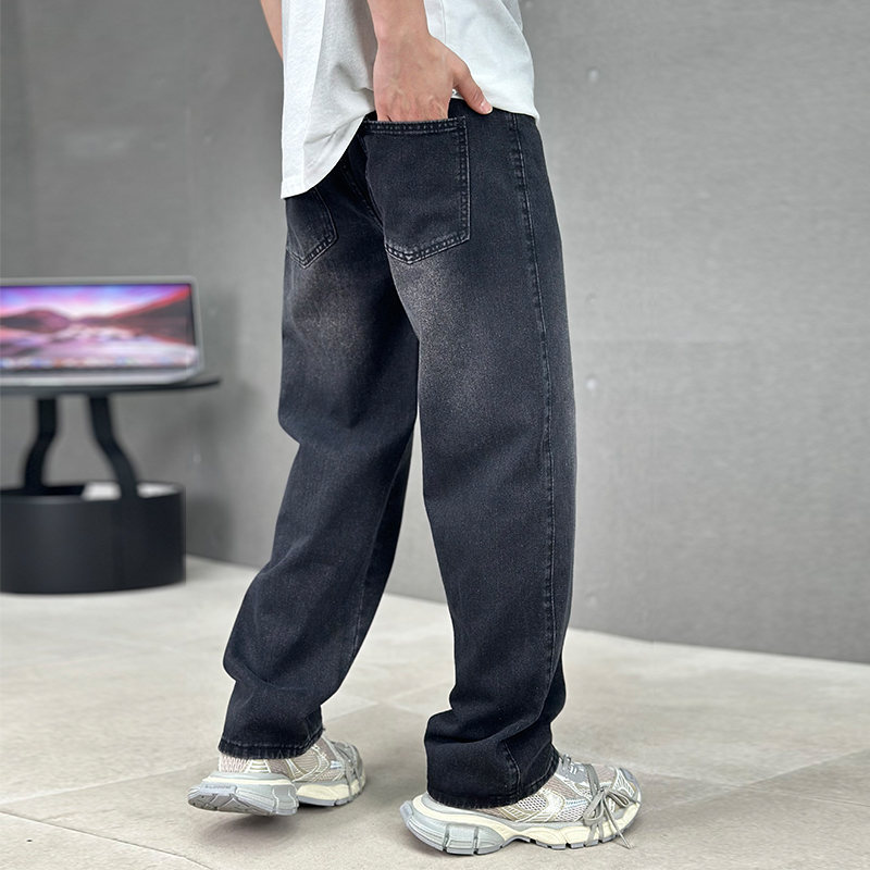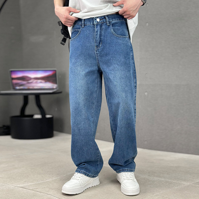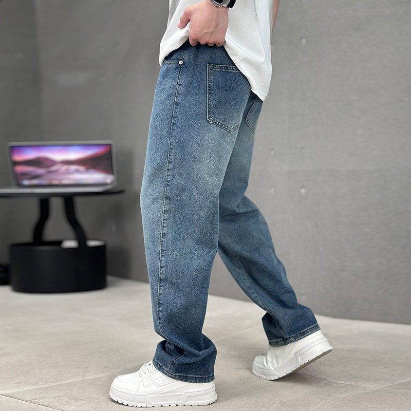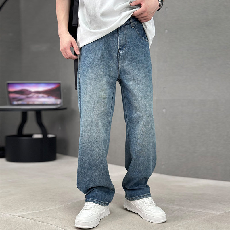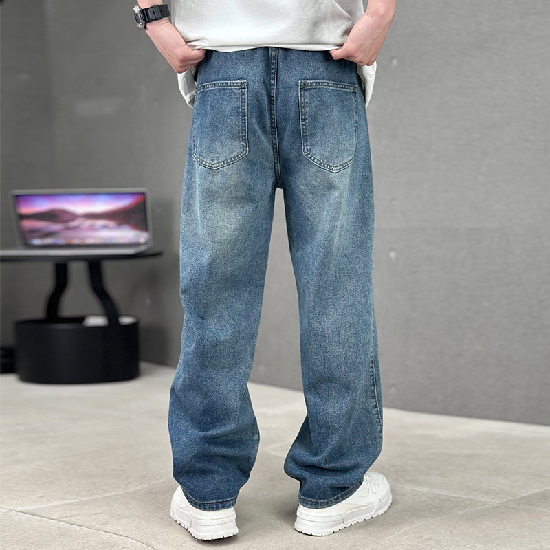 아메리칸 청바지 남성용 봄 플러스 사이즈 하이 스트리트 루즈 스트레이트 팬츠 트렌디 브랜드 트렌디 한 빈티지 메일러드 올 매치 캐주얼 바지