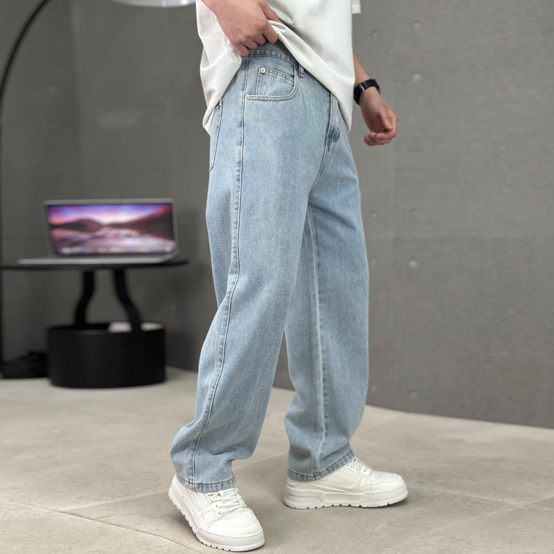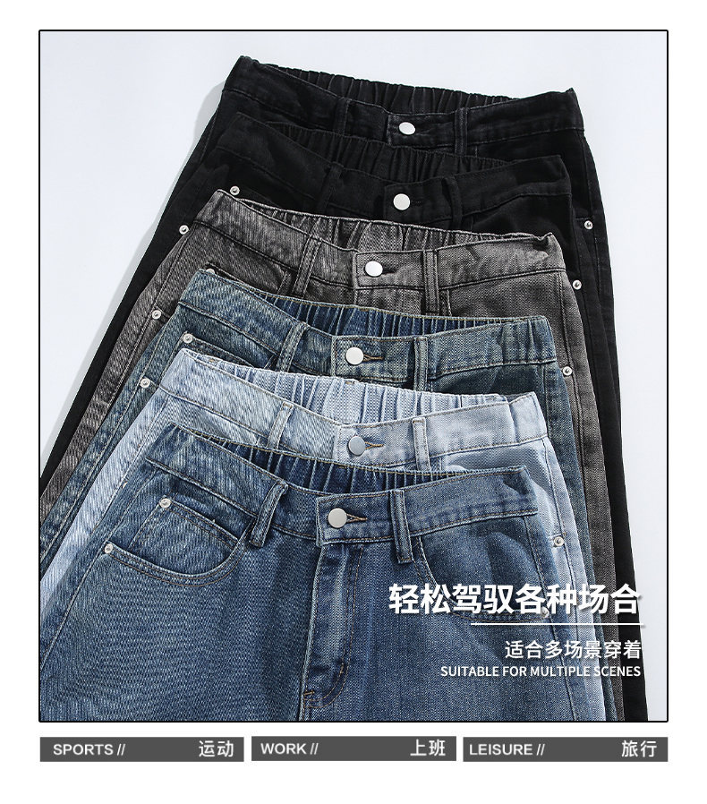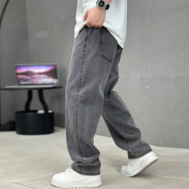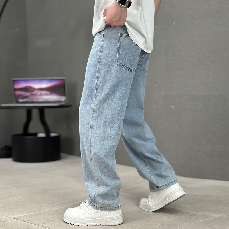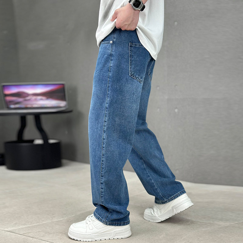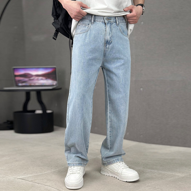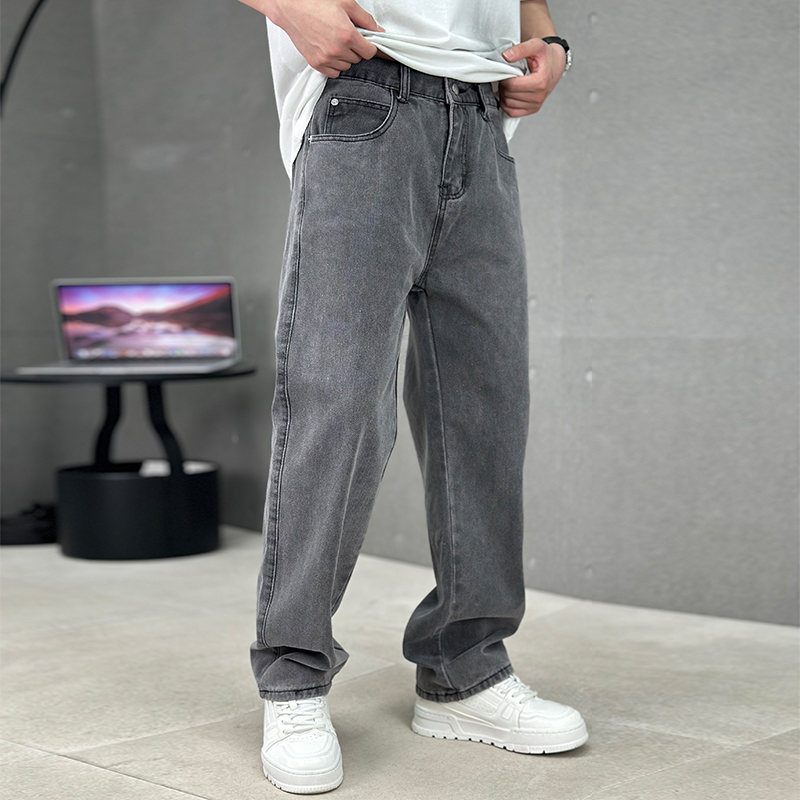 아메리칸 청바지 남성용 봄 플러스 사이즈 하이 스트리트 루즈 스트레이트 팬츠 트렌디 브랜드 트렌디 한 빈티지 메일러드 올 매치 캐주얼 바지