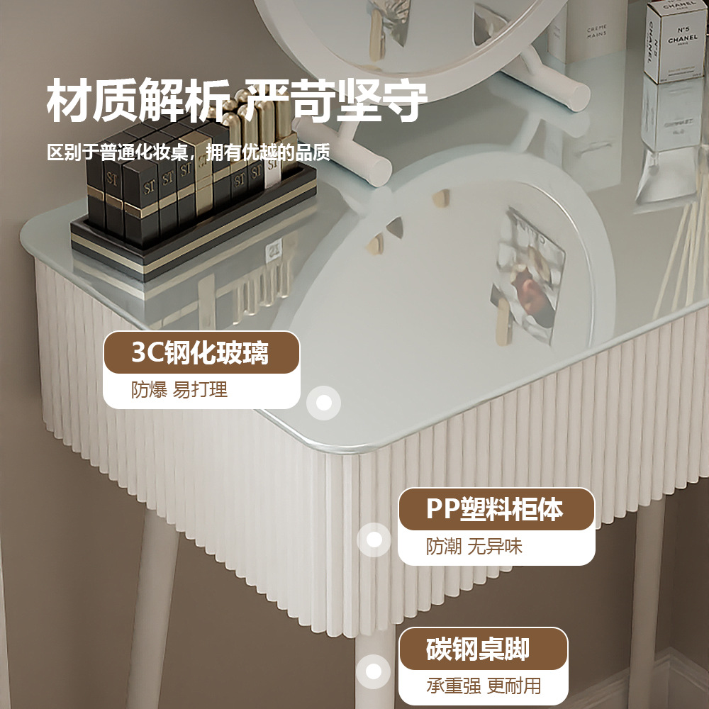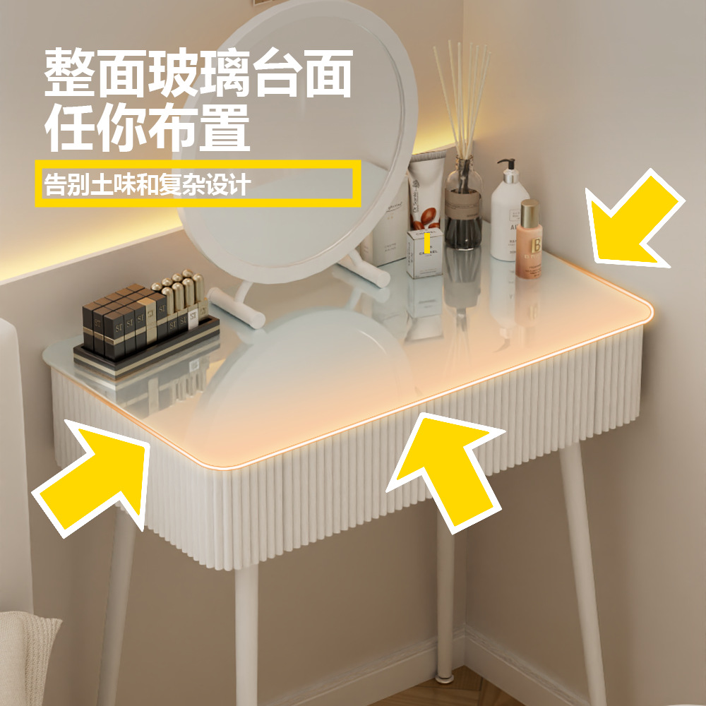 작은 아파트 간단한 현대 드레싱 테이블 침실 프랑스 크림 유리 책상 드레싱 테이블 통합 테이블과 의자 조합