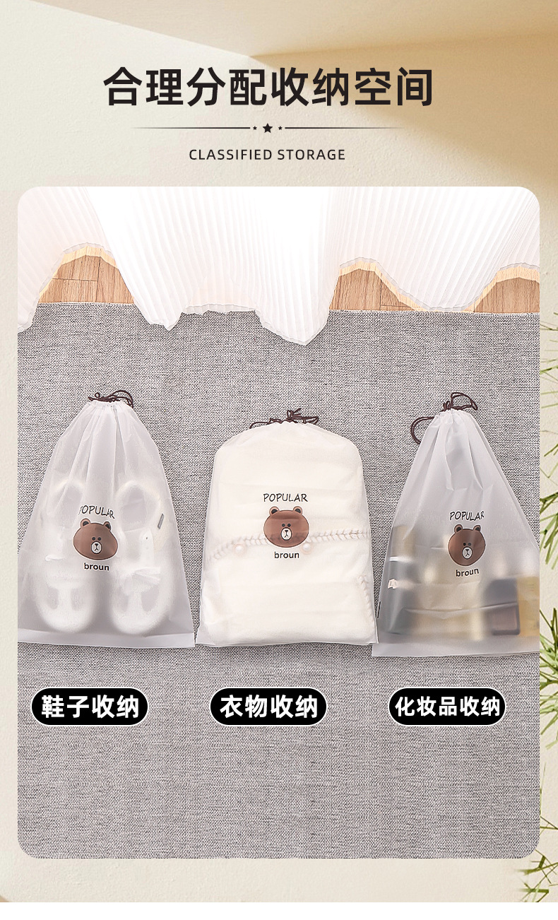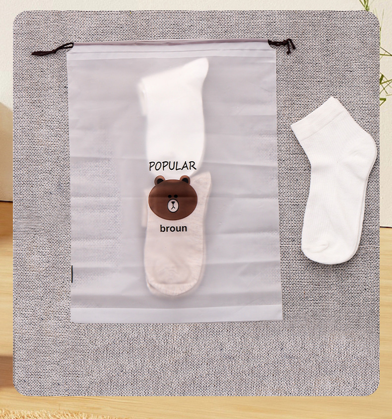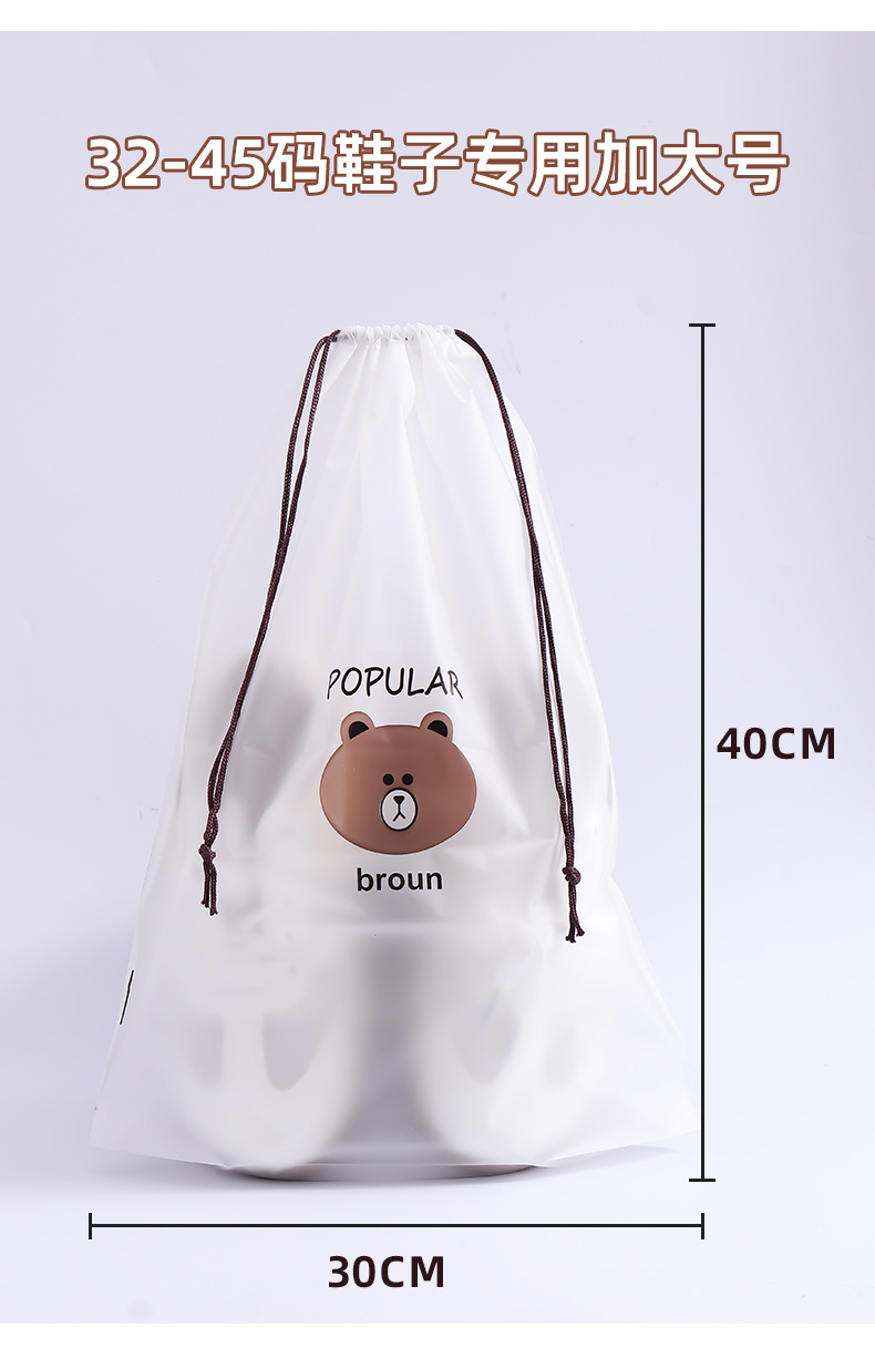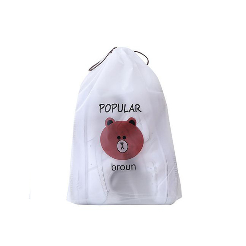 만화 곰 신발 커버 서리 드로우 스트링 가방 플라스틱 신발 보관 가방 방수 클렌징 타월 페이스 타월 포장