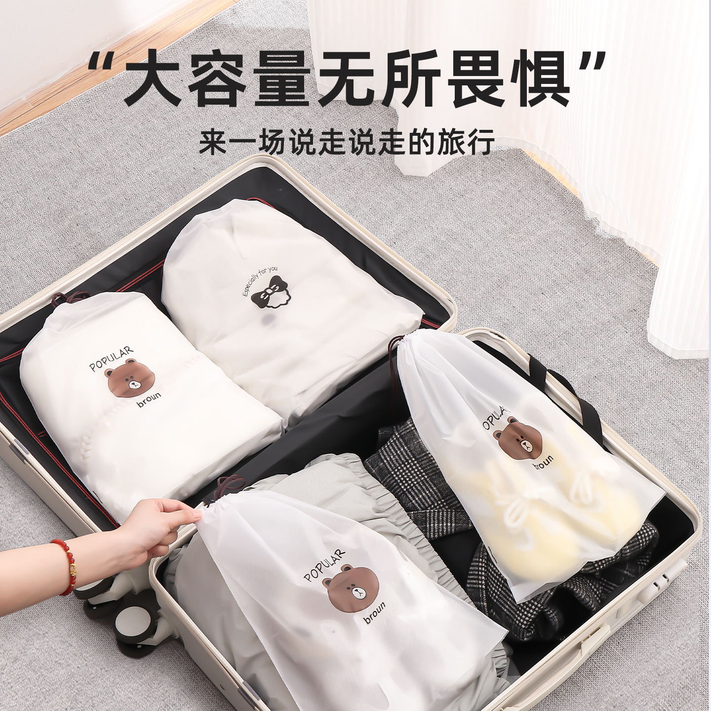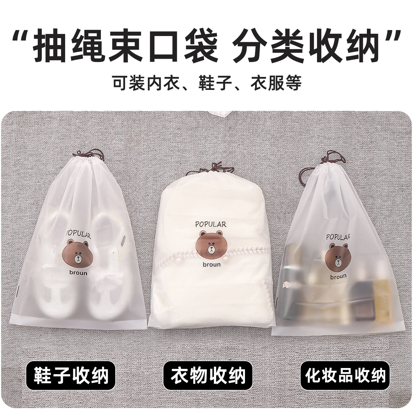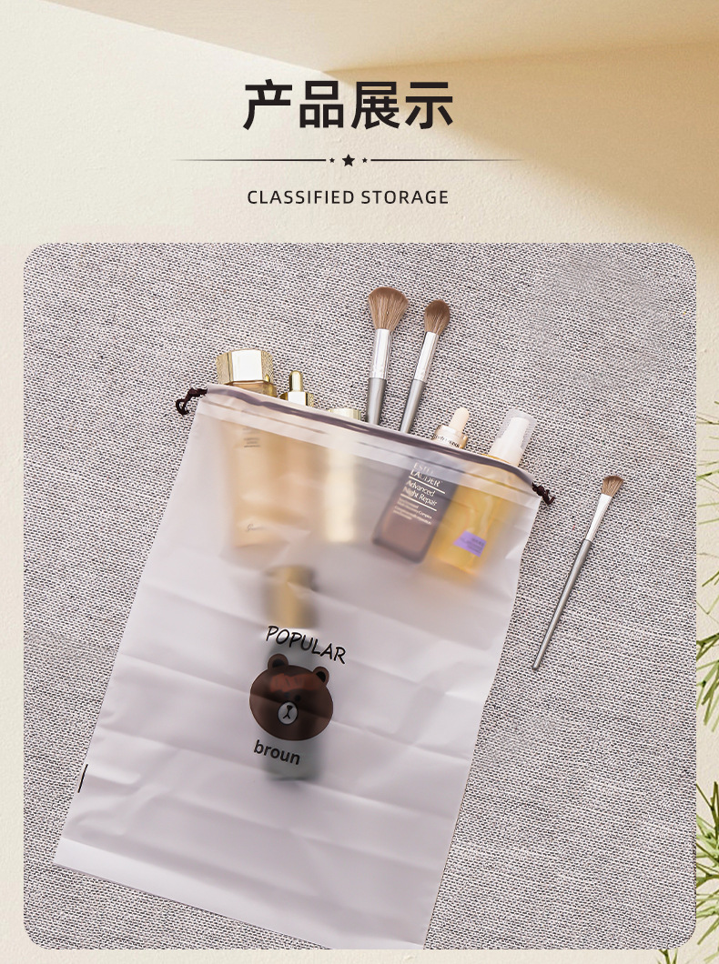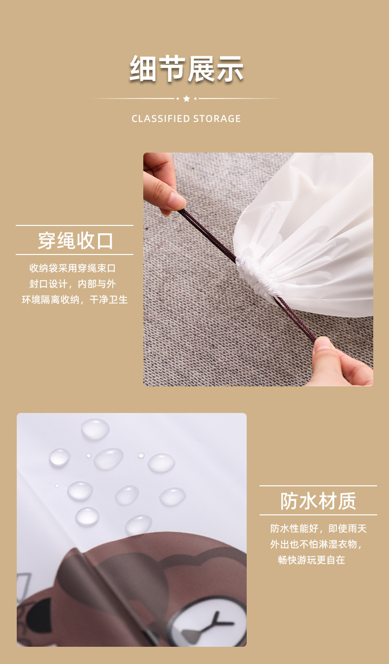 만화 곰 신발 커버 서리 드로우 스트링 가방 플라스틱 신발 보관 가방 방수 클렌징 타월 페이스 타월 포장