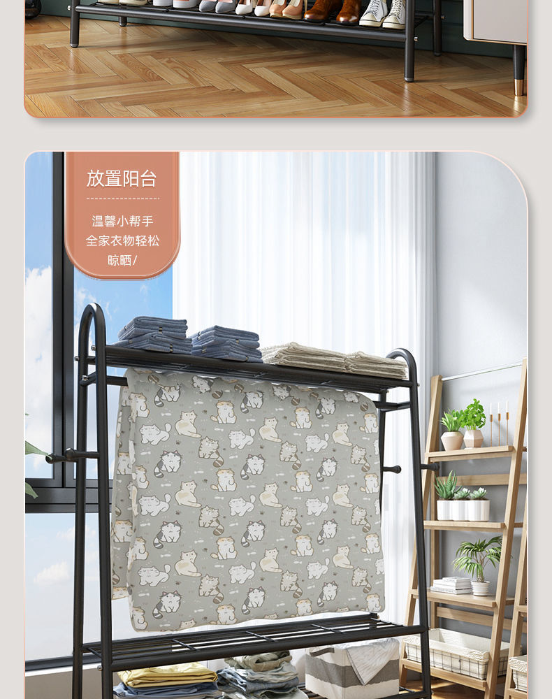 새 스타일 옷 랙 바닥 침실 내부 옷걸이 발코니 가정용 간단한 옷로드 기숙사 옷 랙