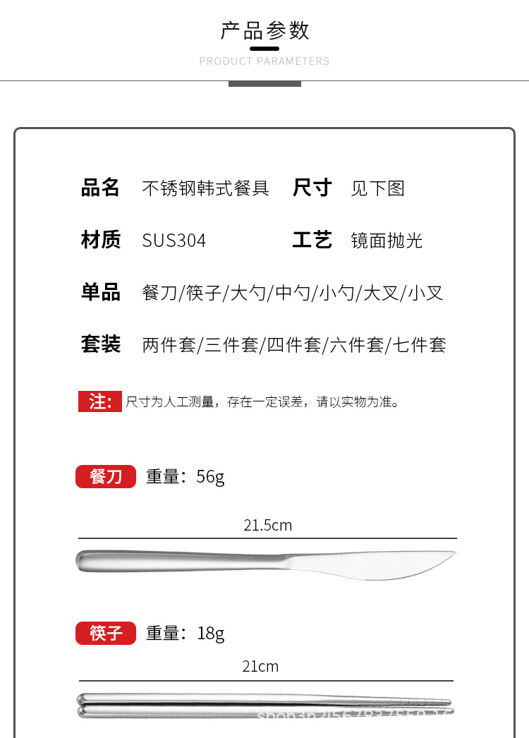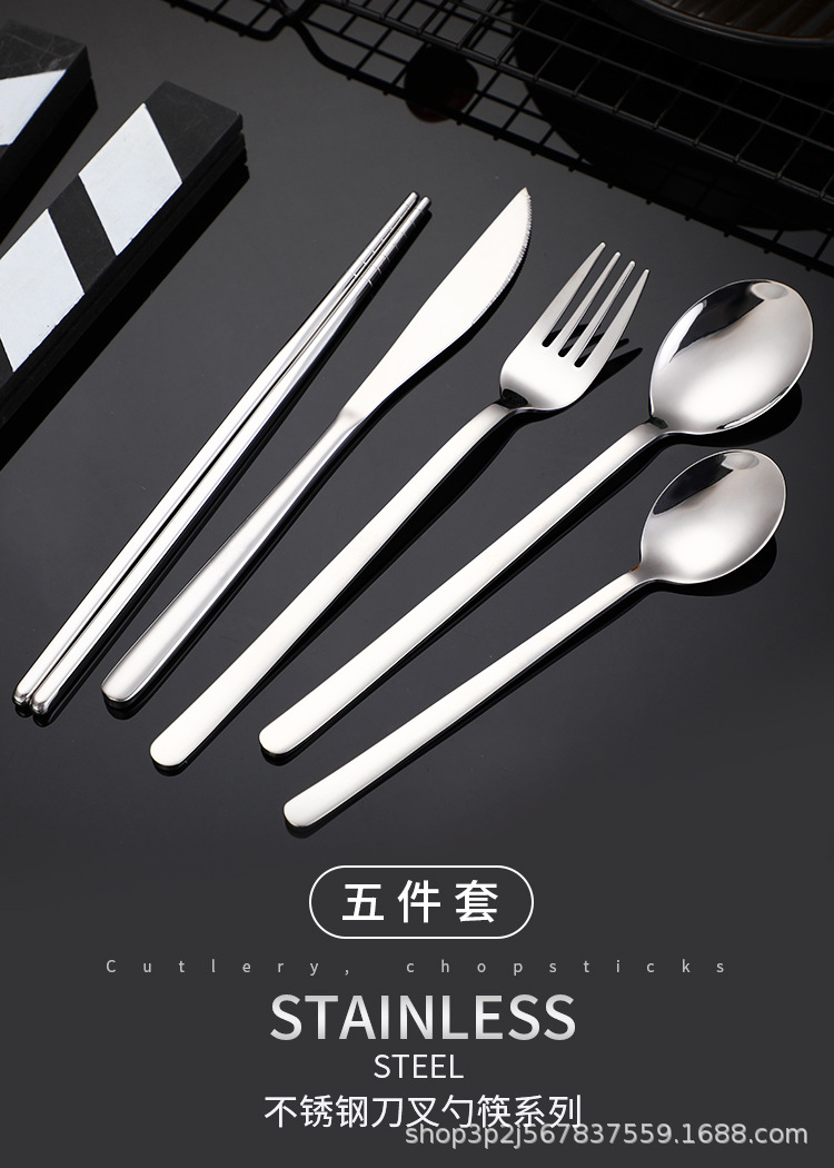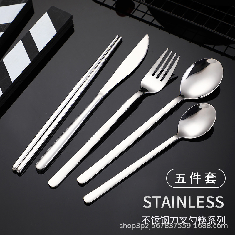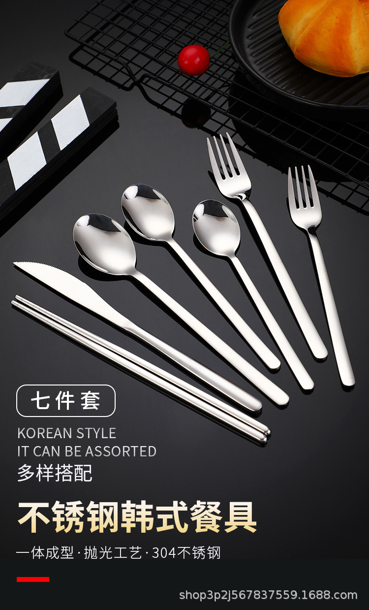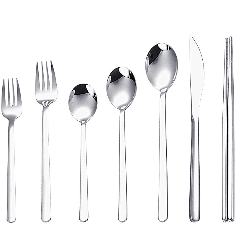 한국식 304 스테인레스 스틸 나이프와 포크 스푼 젓가락 식기 식기 칼 대형, 중형 및 소형 스푼과 포크 젓가락으로 창의적인 멀티 세트 식사