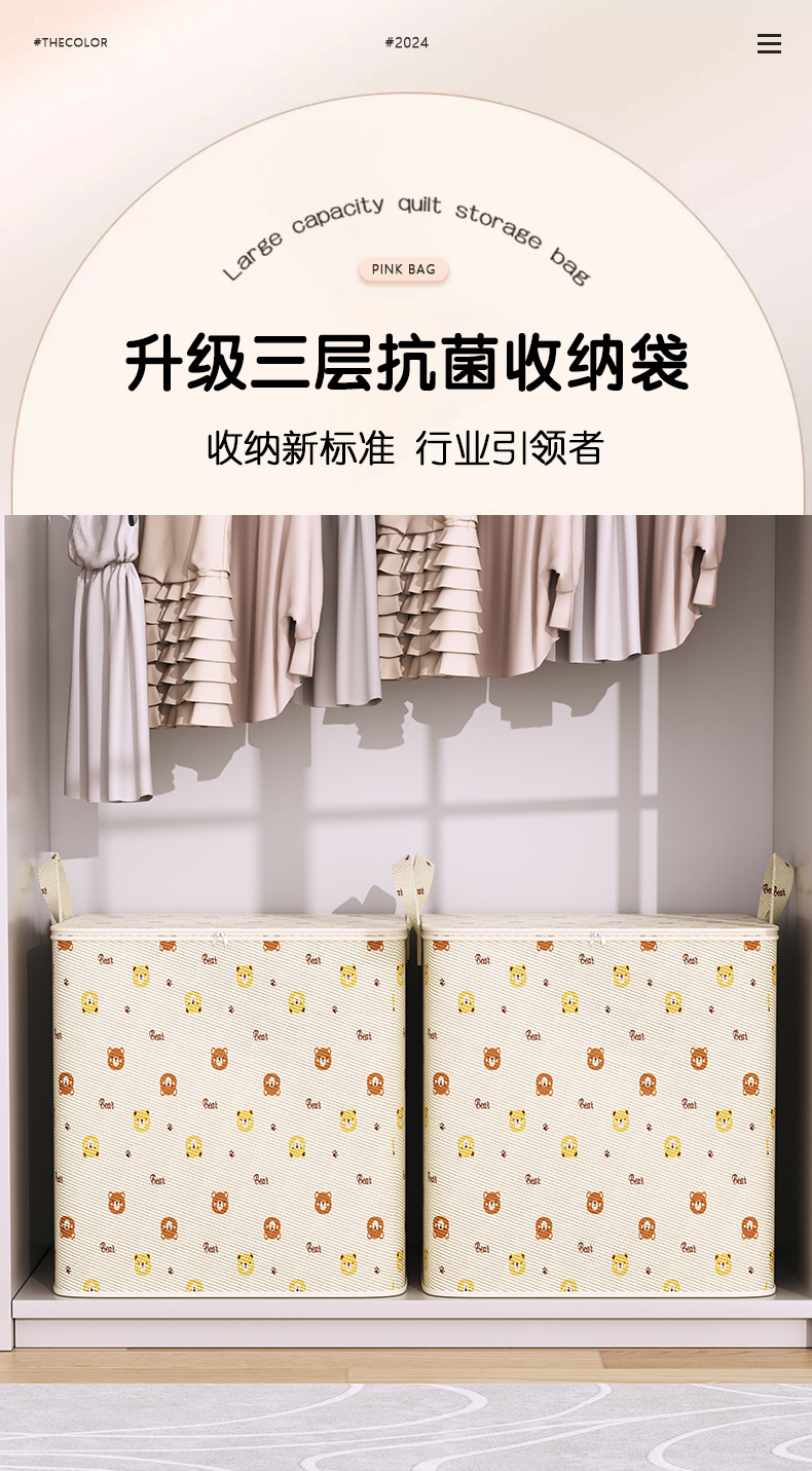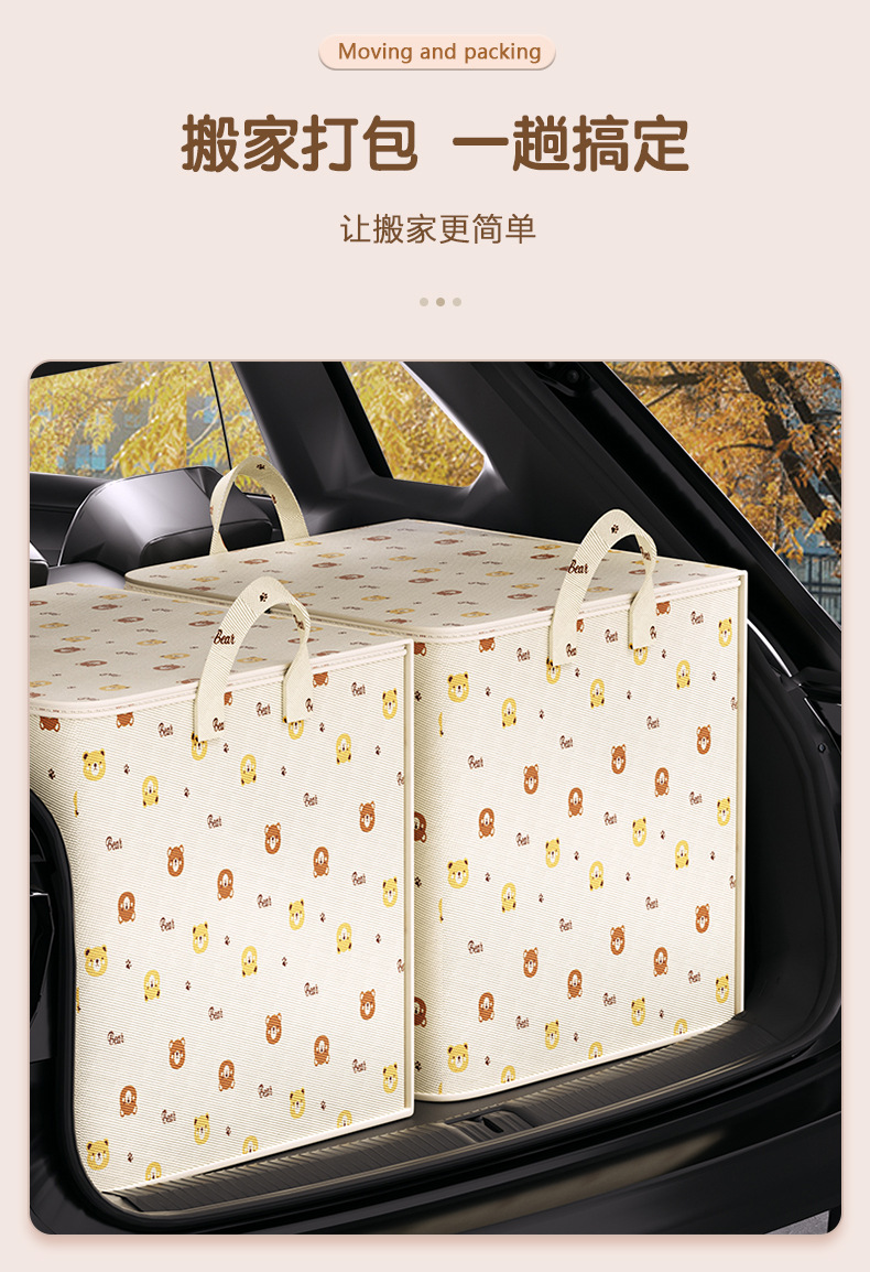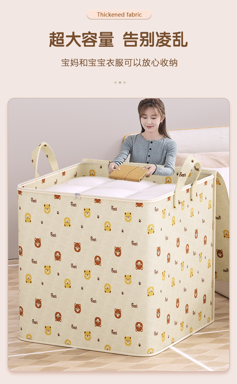 만화 곰 패턴 퀼트 의류 저장 가방 대용량 기숙사 이동 여행 가방 홈 저장 가방 유물