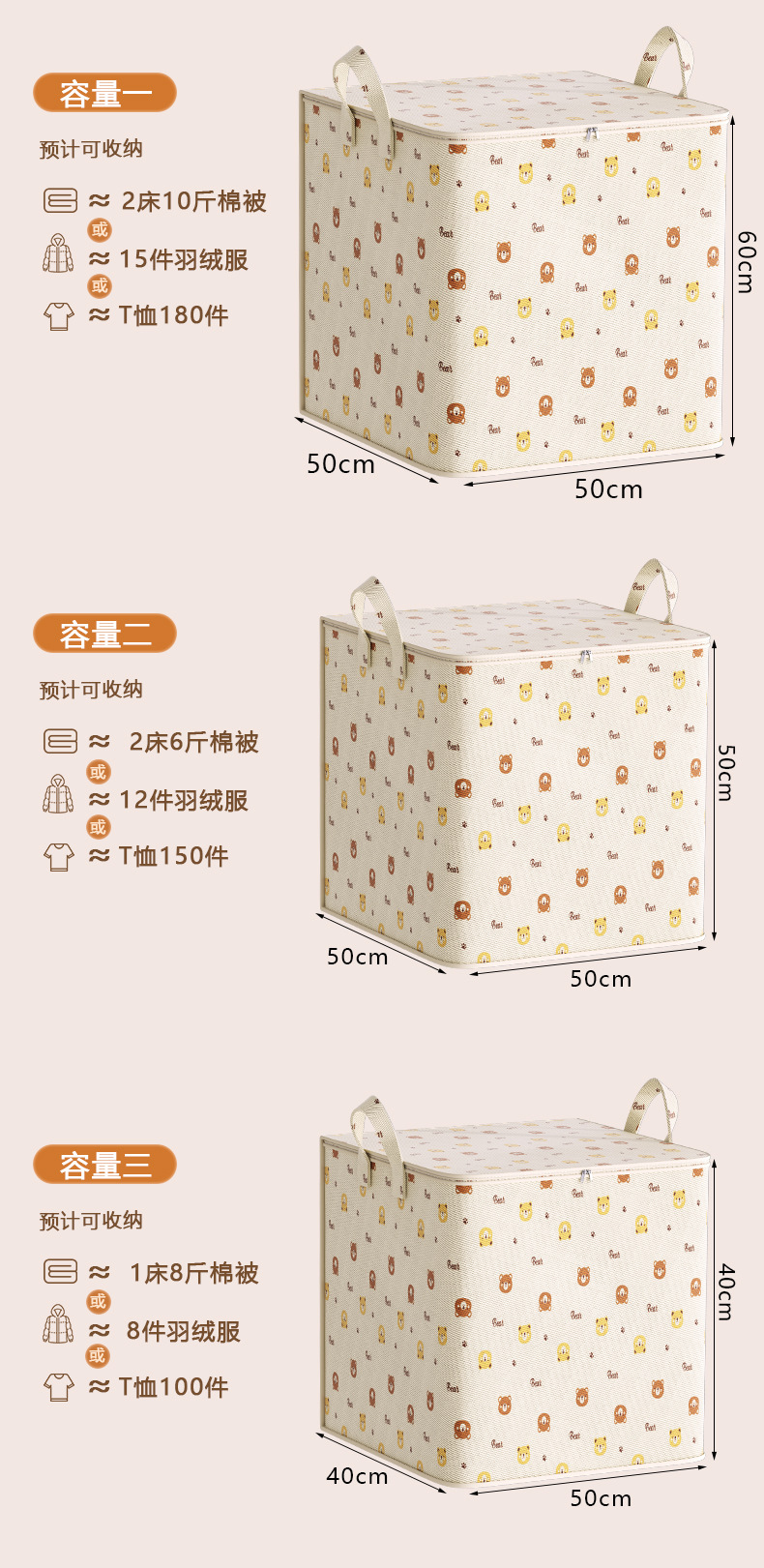 미색 곰 지퍼 스타일#대형 50*40*39 [피부친화적이고 냄새가 없음]|두꺼운 손잡이]