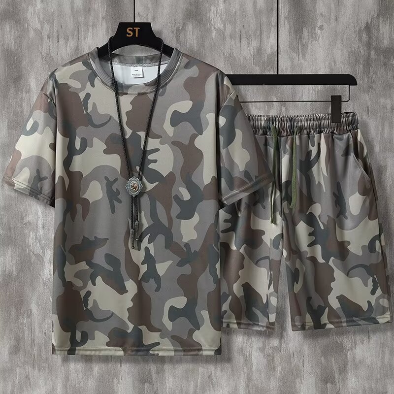 새로운 반팔 반바지 세트 남자 여름 트렌디 브랜드 남자 비치 티셔츠 남자 플러스 사이즈 캐주얼 스포츠 세트