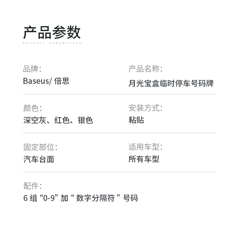 Baseus Moonlight 보물 상자 임시 주차 번호판