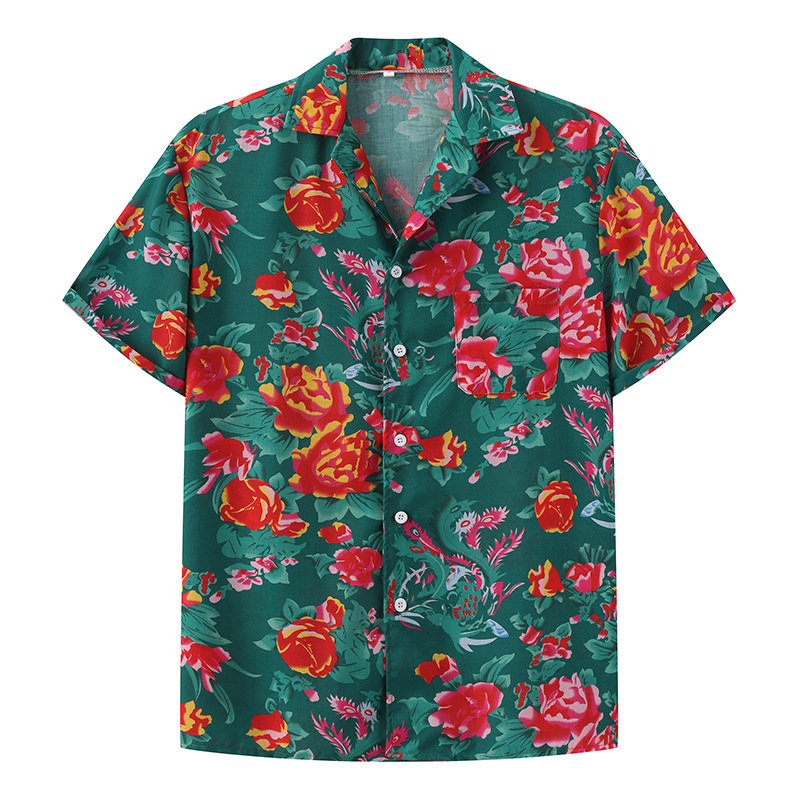 국경 간 하와이 비치 남자 동북 큰 꽃 세트 반팔 꽃 셔츠 남자 커플 반바지 2 피스 세트