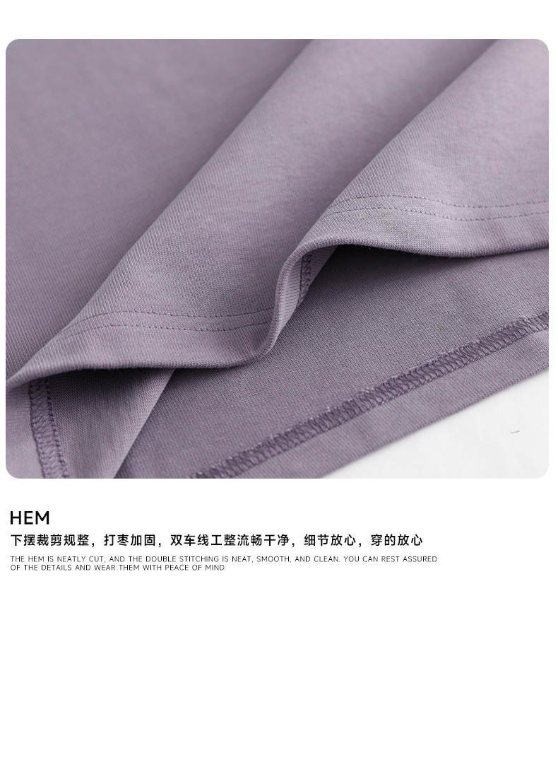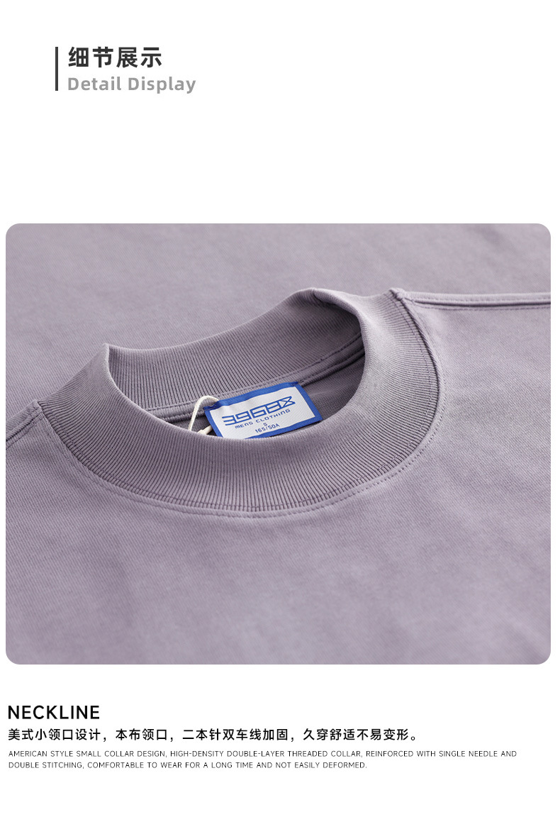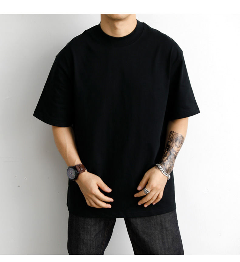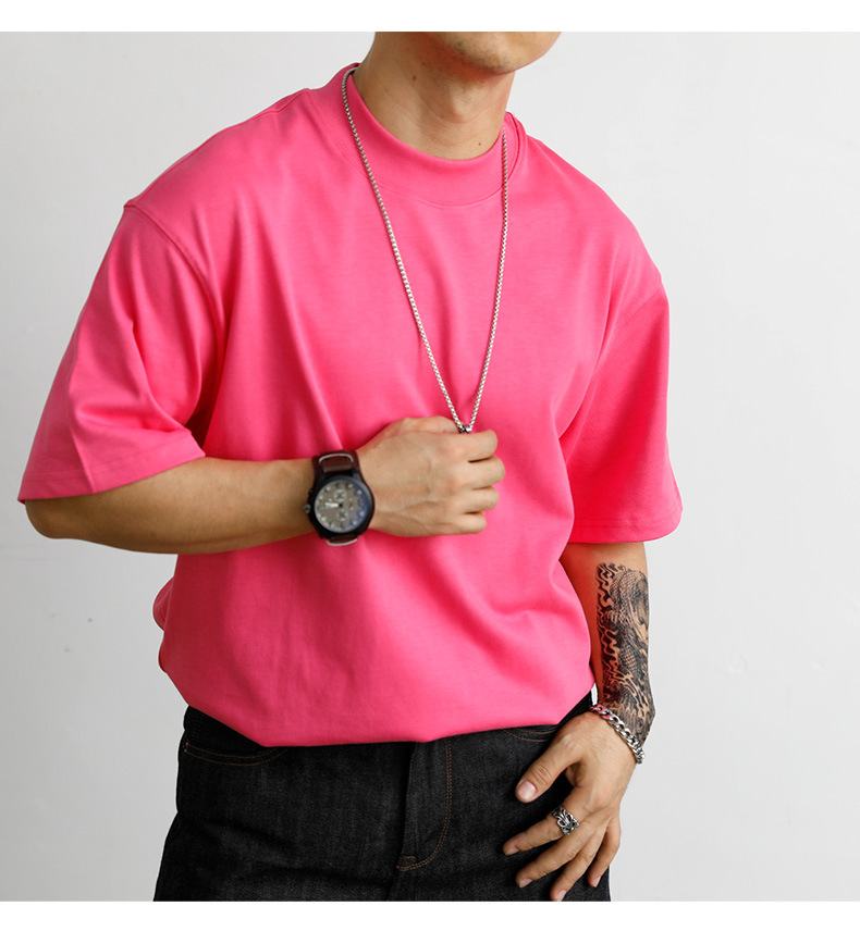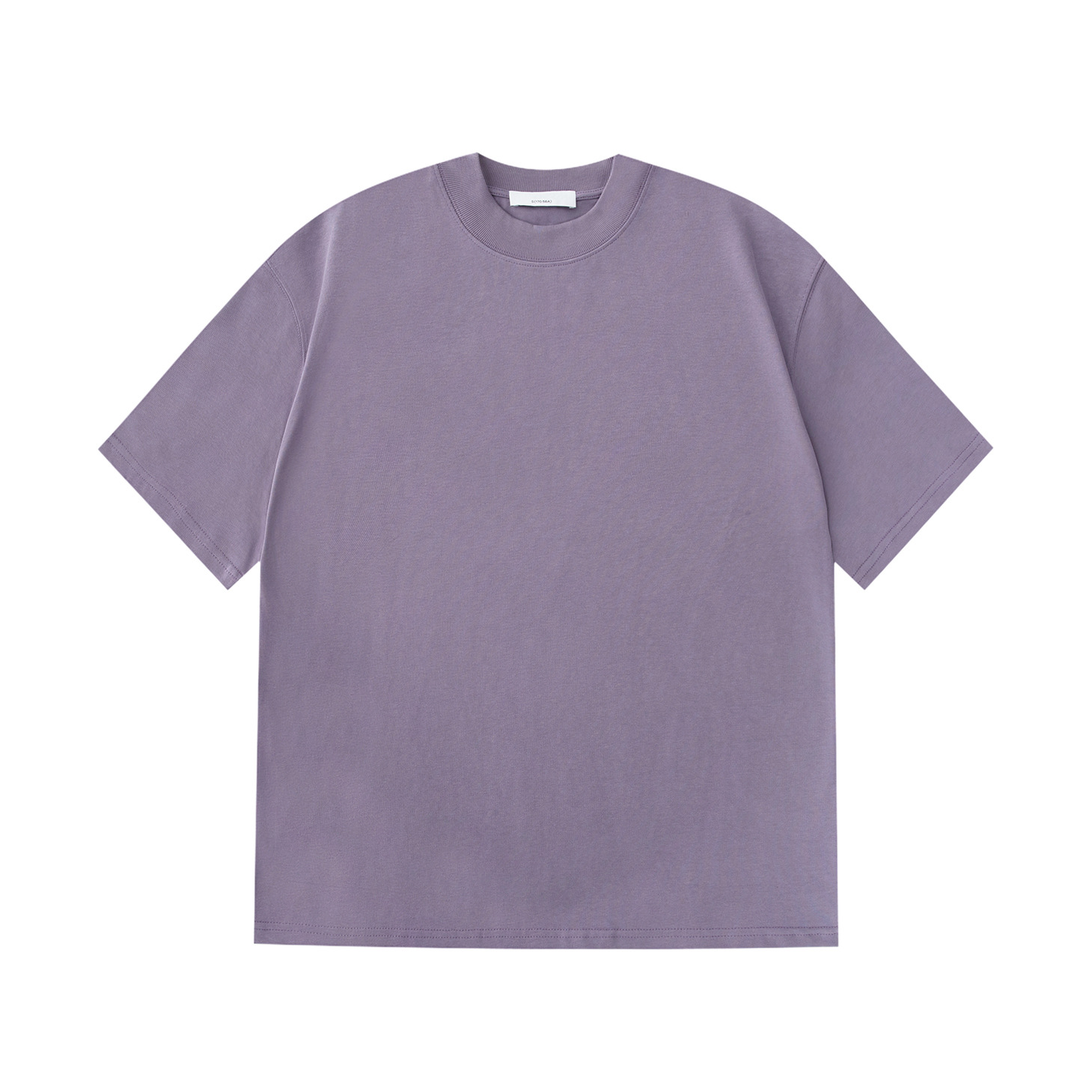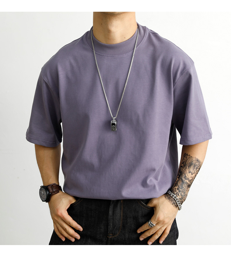 425g 무거운 면 작은 목 티셔츠 미국 작은 목 짧은 소매 남성용 에보니 보라색 느슨한 남성용 옷