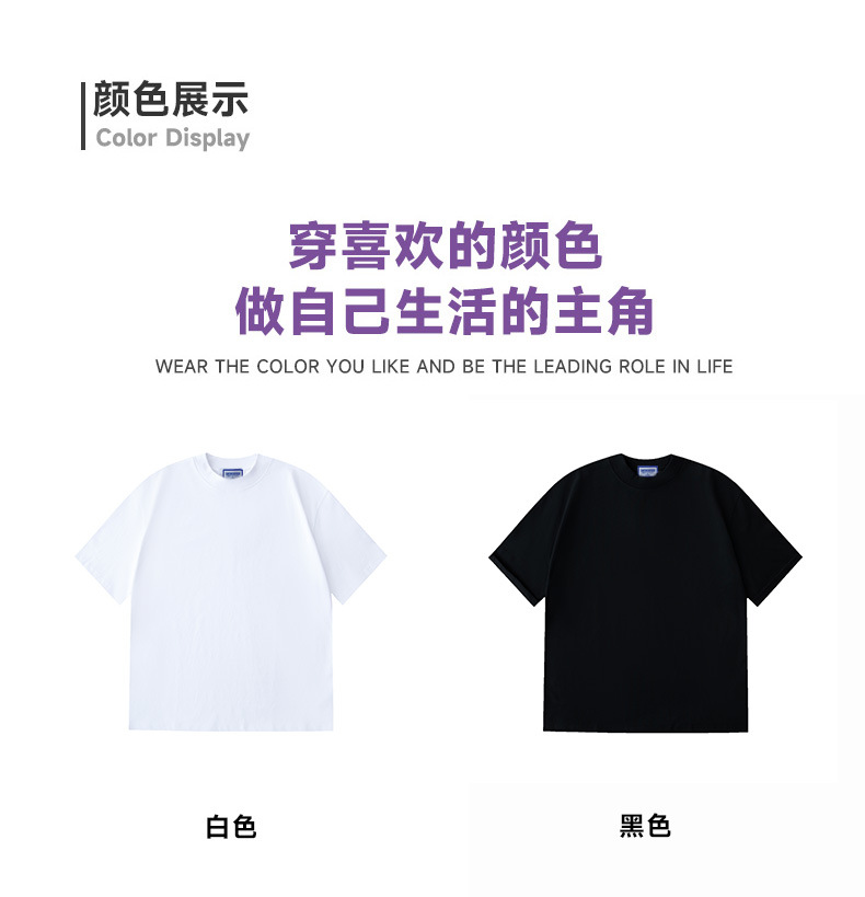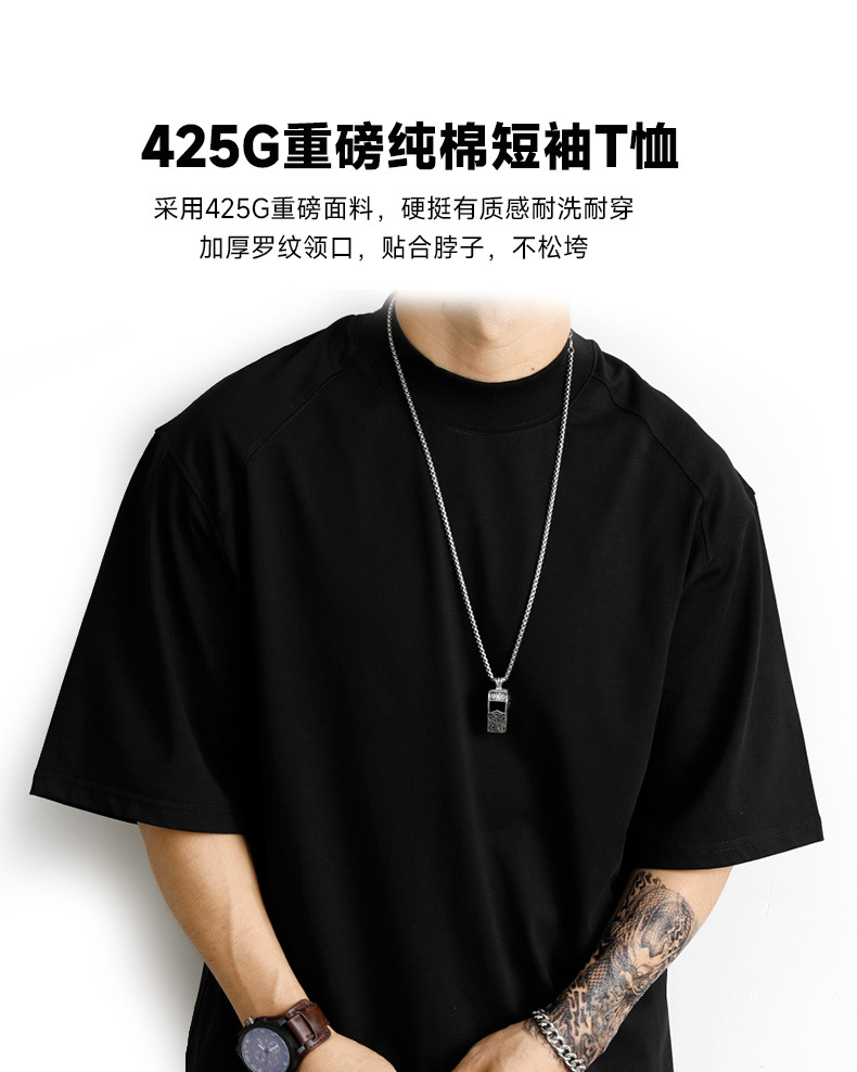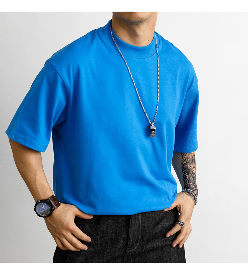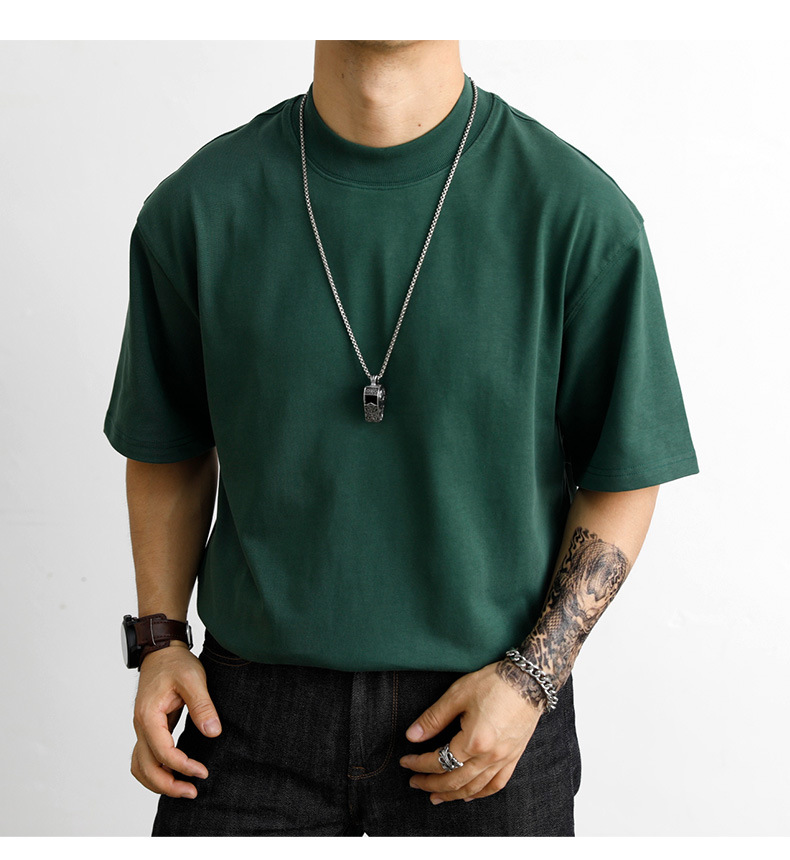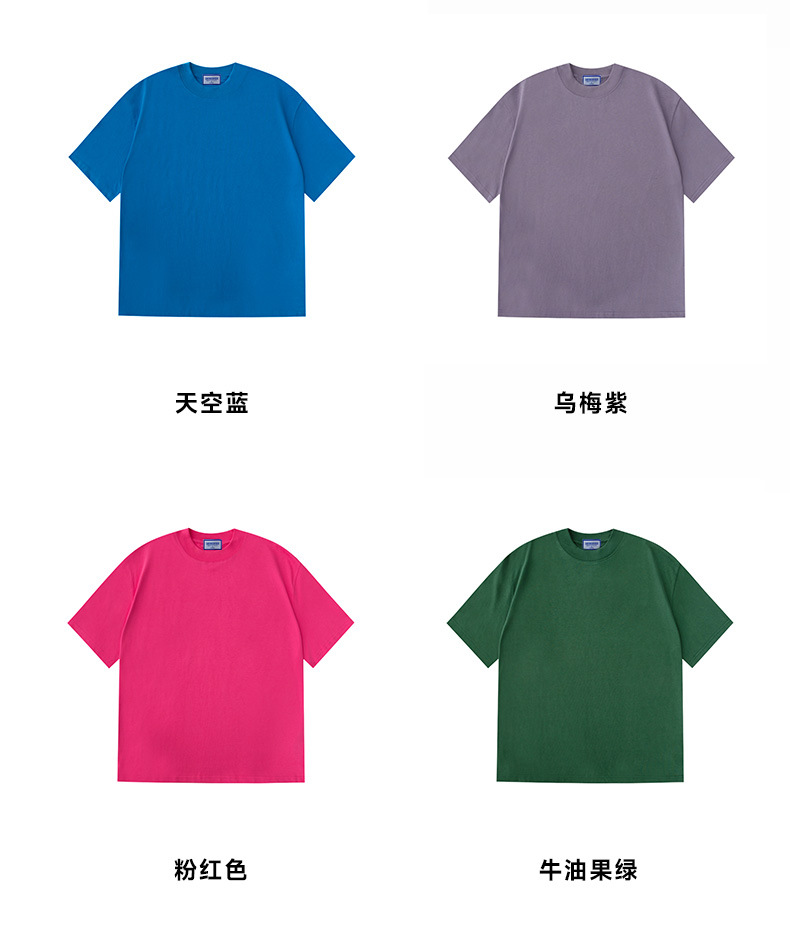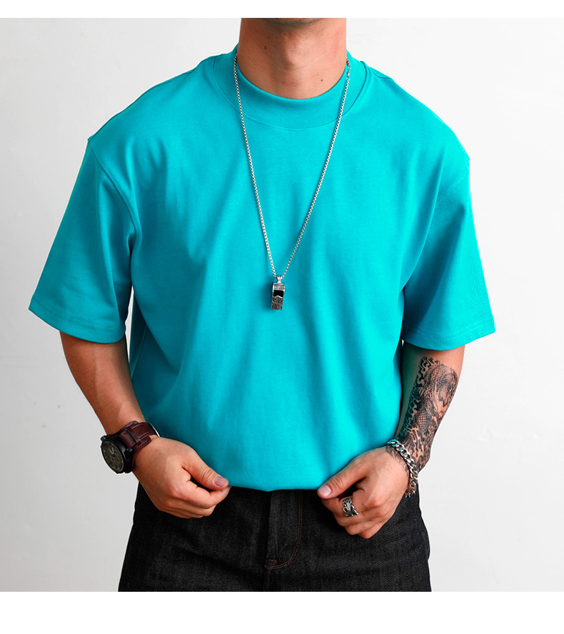 425g 무거운 면 작은 목 티셔츠 미국 작은 목 짧은 소매 남성용 에보니 보라색 느슨한 남성용 옷