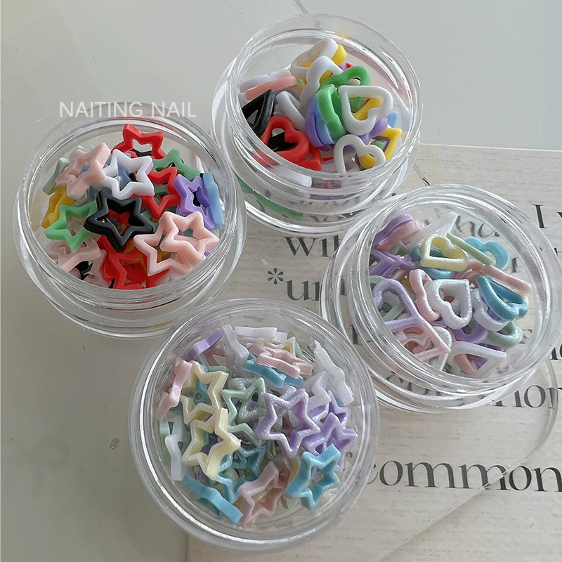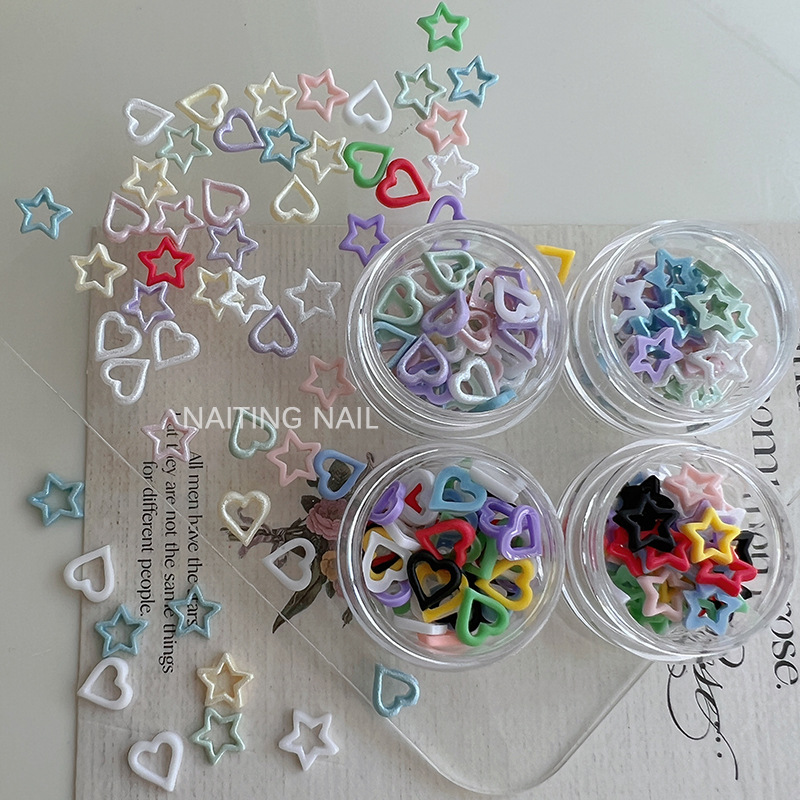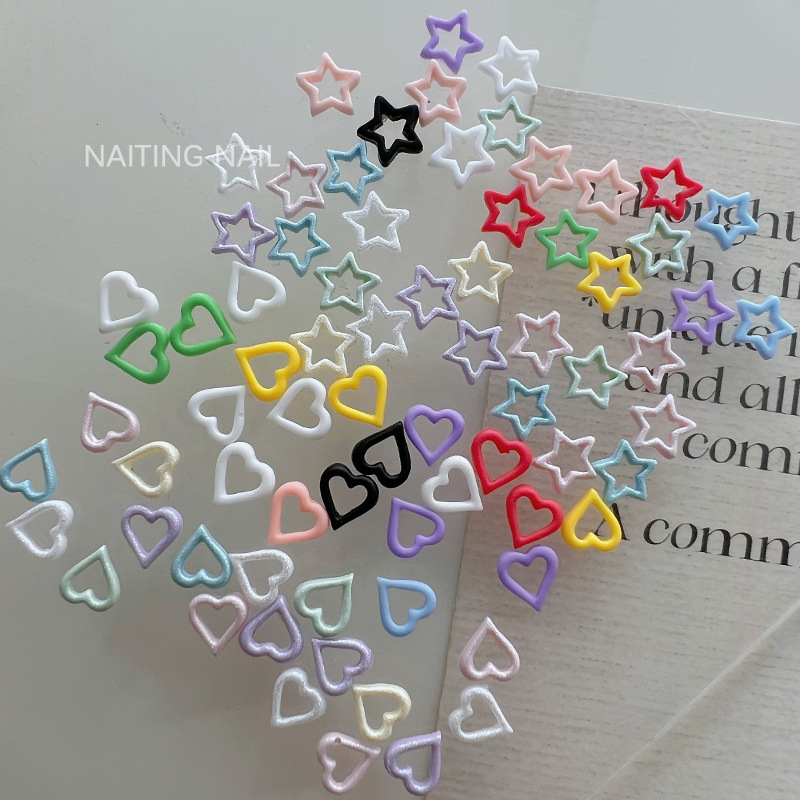 네일 아트 쥬얼리 여름 도파민 컬러 수지 중공 다섯개 별 복숭아 하트 인어 Ji 구멍 사랑 보석