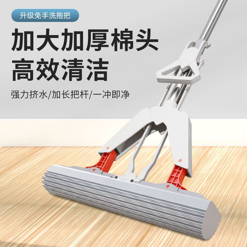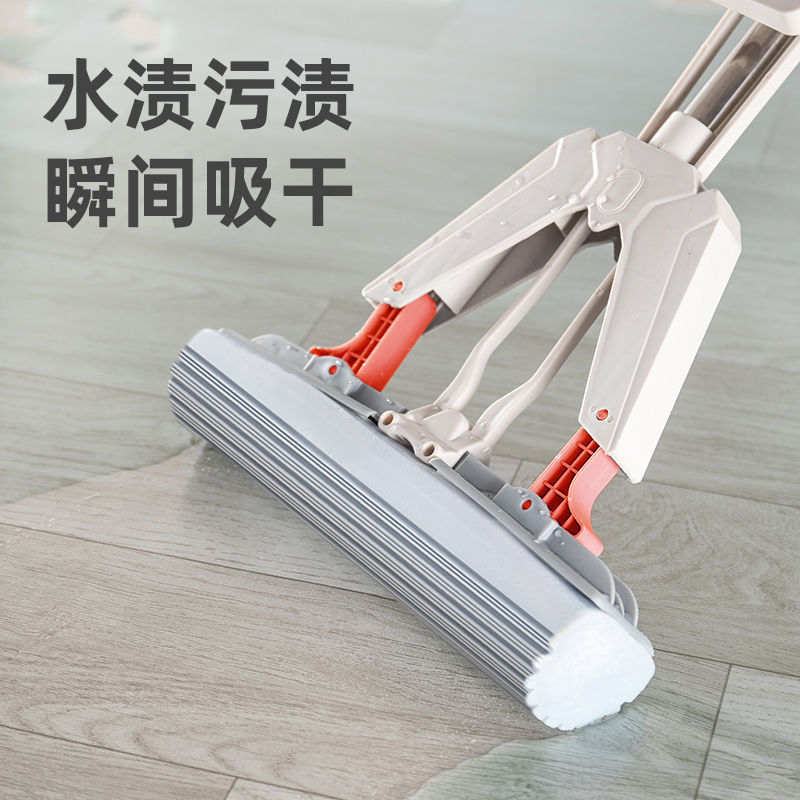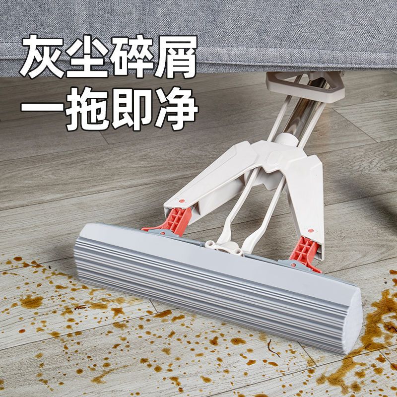 수공이없는 세척 가능한 게으른 걸레 가정용 스폰지 흡수 접이식 걸레 개폐식 스테인레스 스틸 막대 물 짜기 고무 면 걸레 천