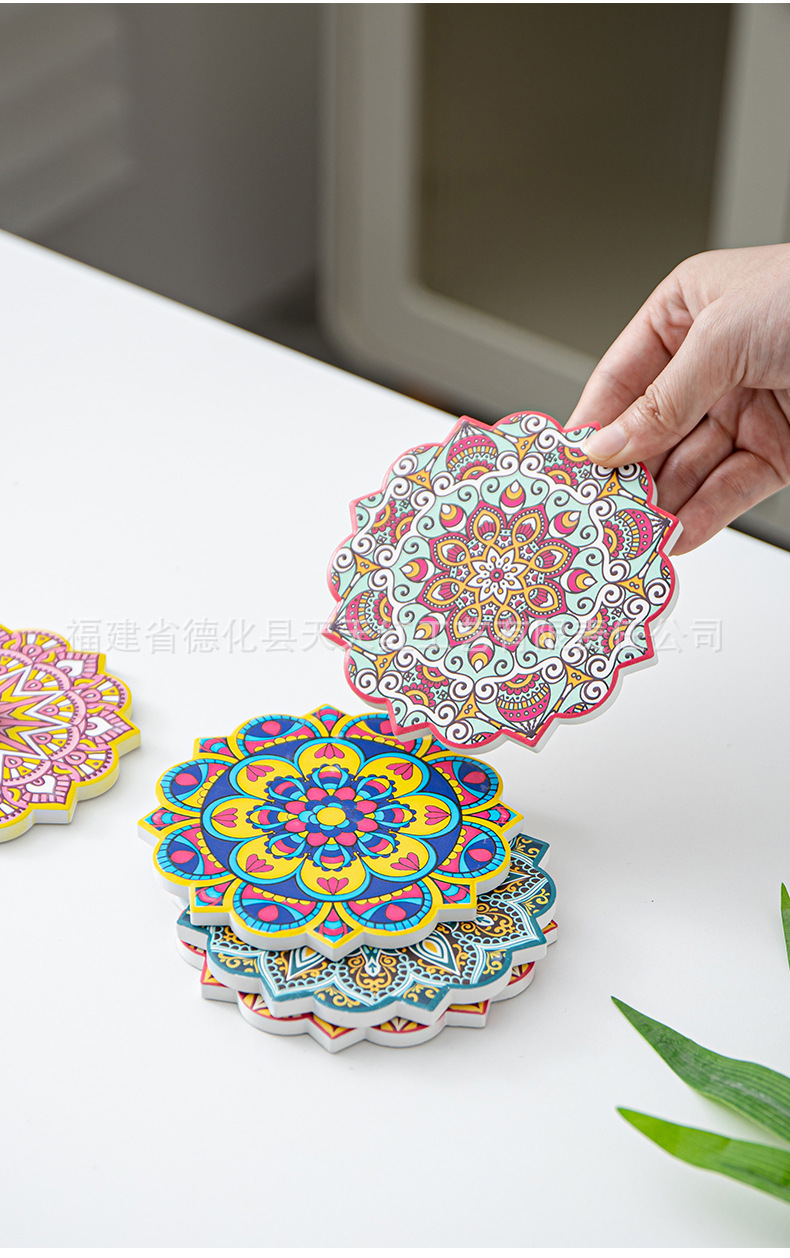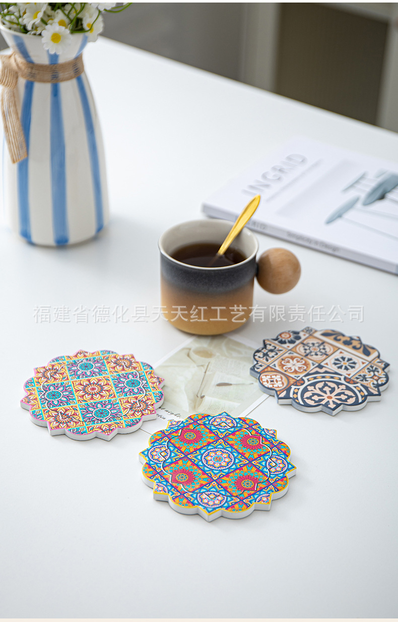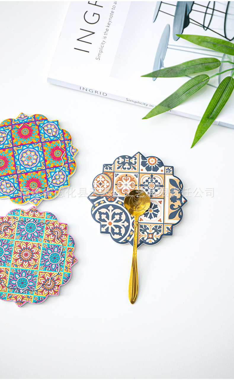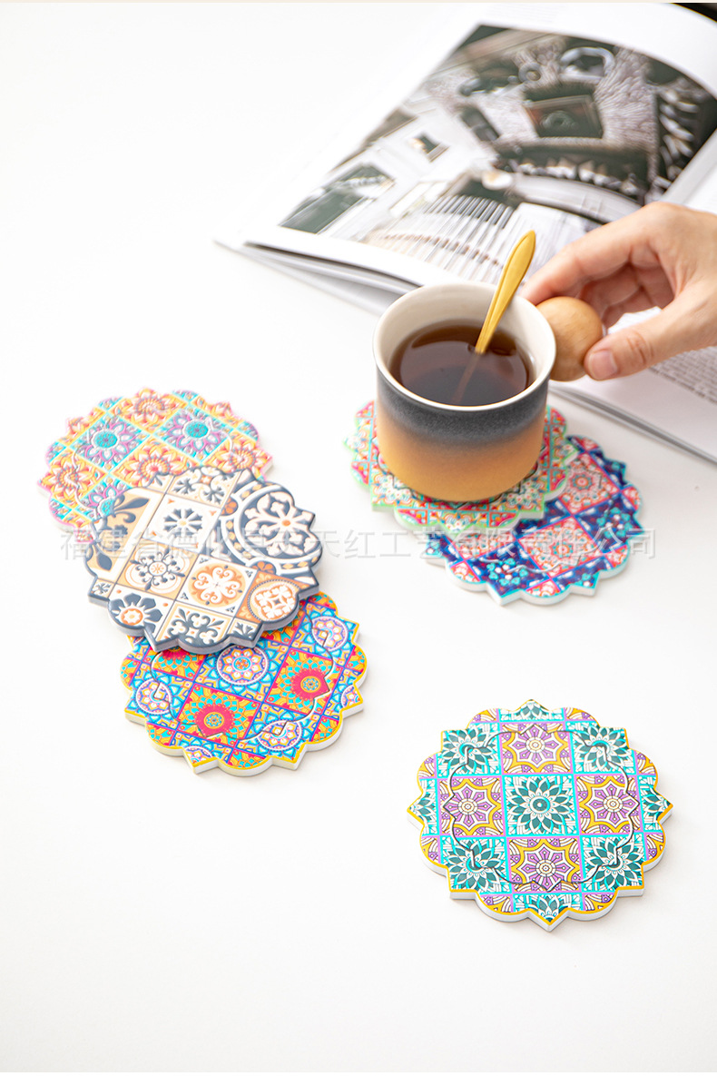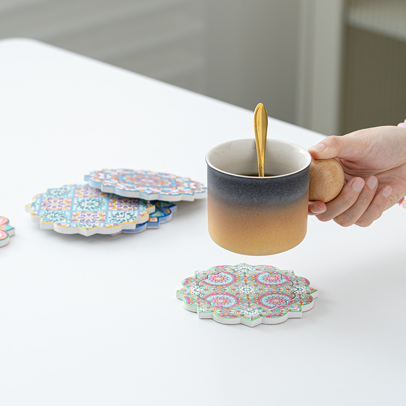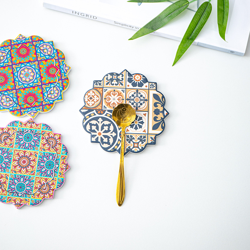 세라믹 흡수 코스터 아마존 패턴 코르크 미끄럼 방지 스케일링 주방 배치 절연 공장 직접 공급