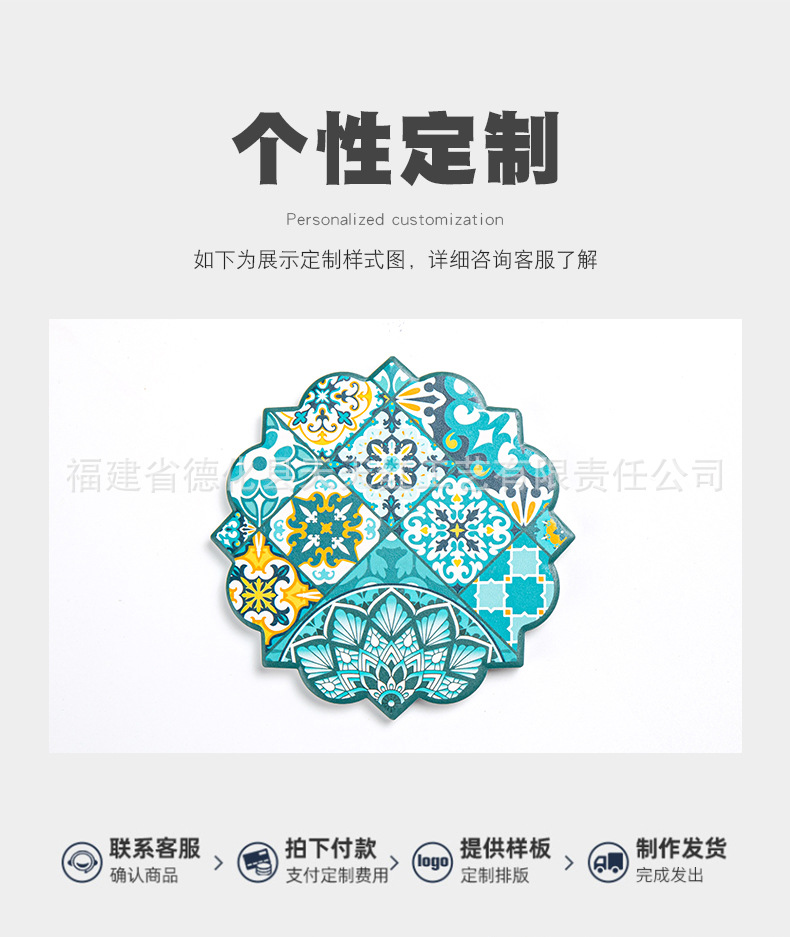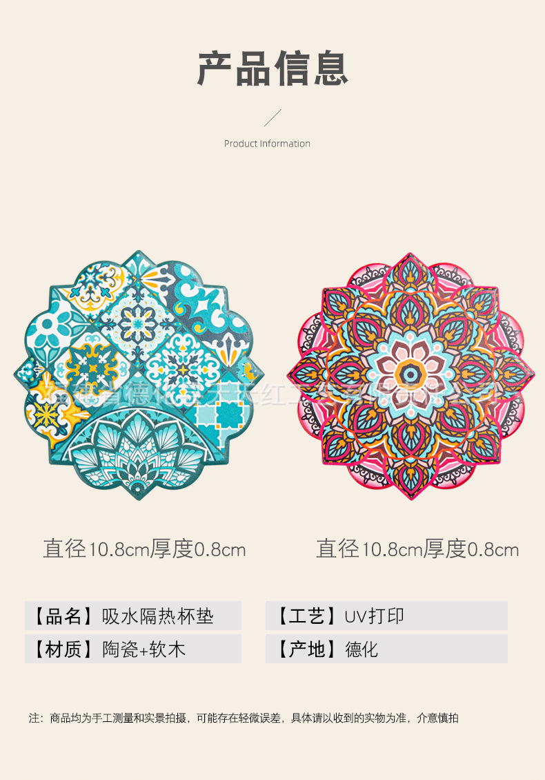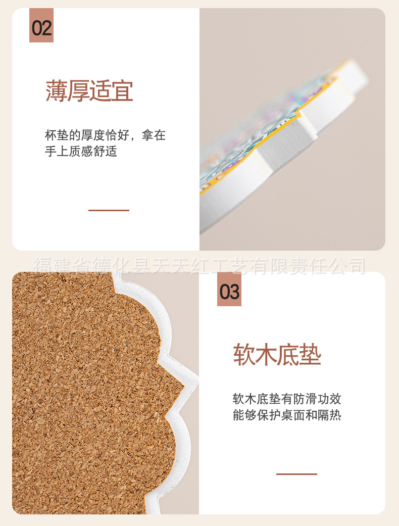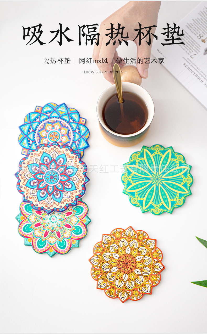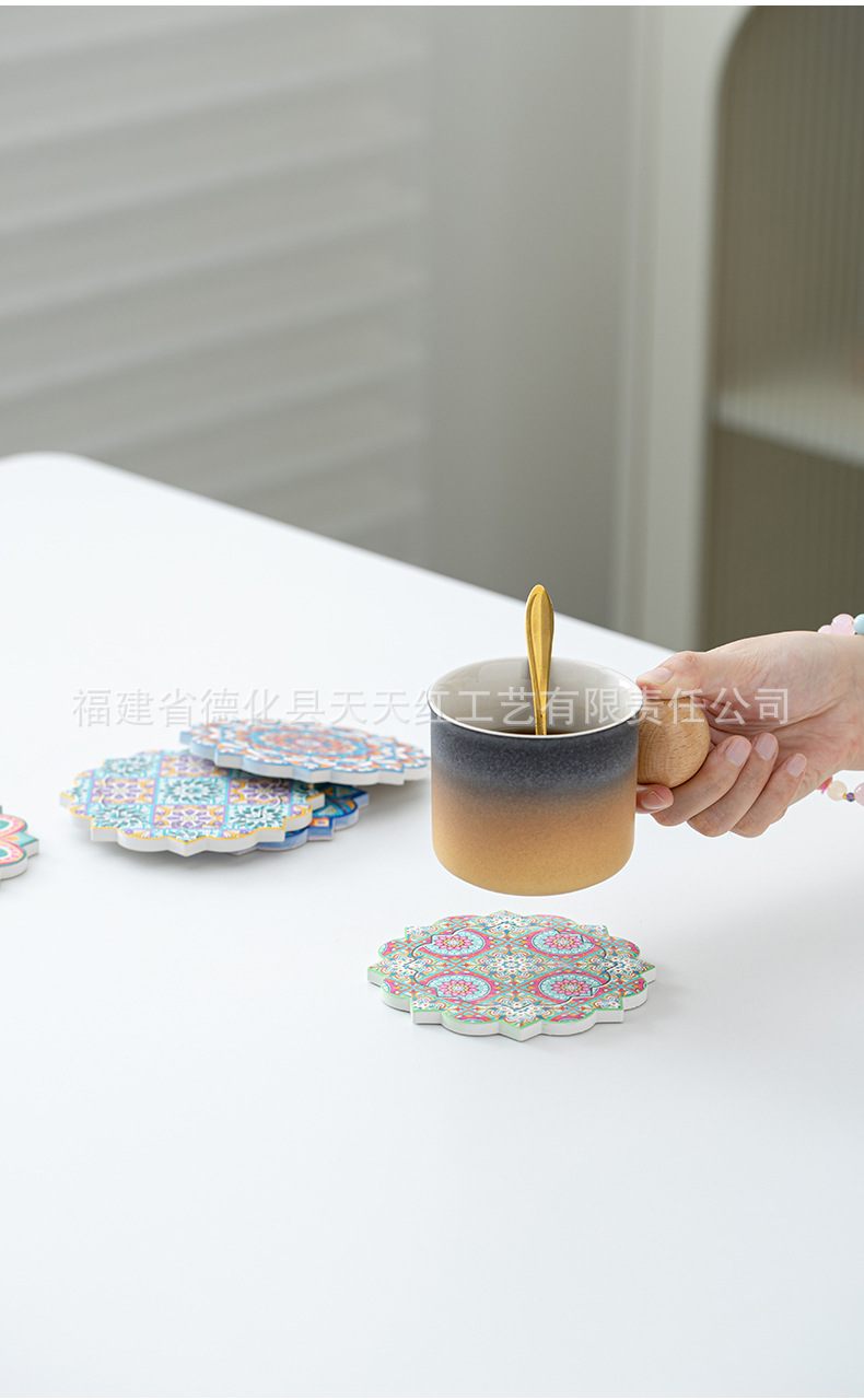 세라믹 흡수 코스터 아마존 패턴 코르크 미끄럼 방지 스케일링 주방 배치 절연 공장 직접 공급