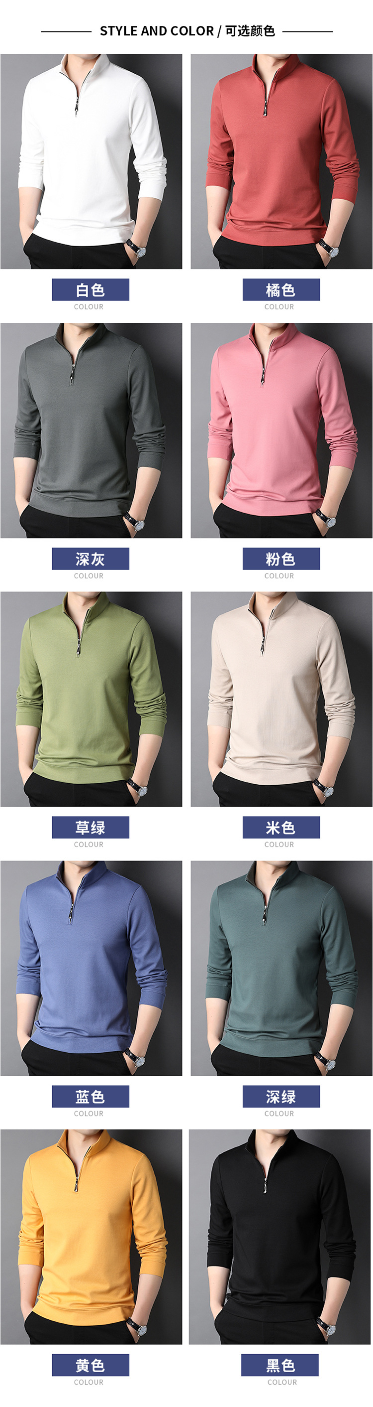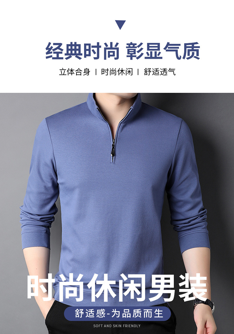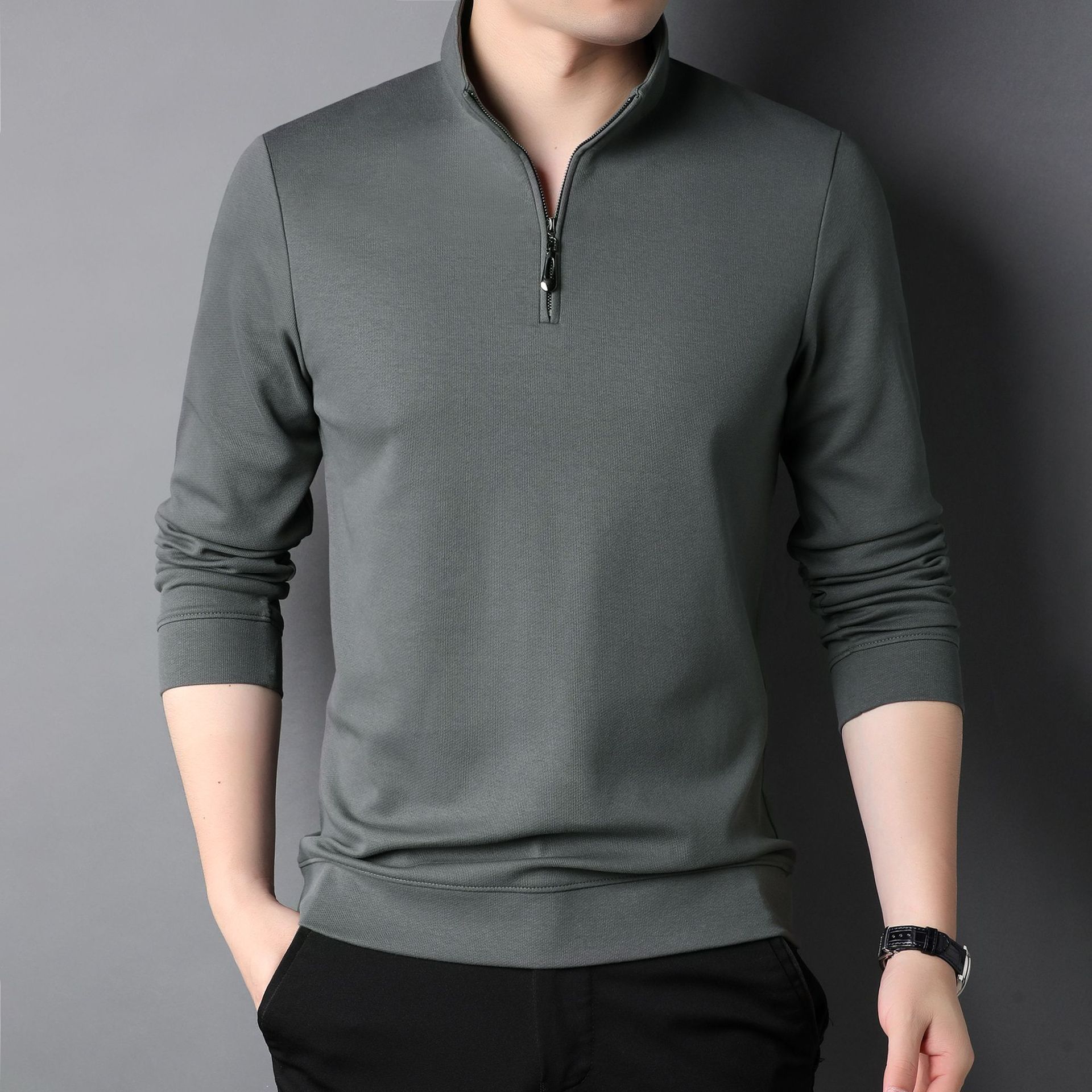 2024 가을 코튼 남성 긴팔 스웨트셔츠, 중년 스타일, 스탠드 칼라, 지퍼, 솔리드 컬러 베이스 레이어 탑, 다용도, 캐주얼, 다용도