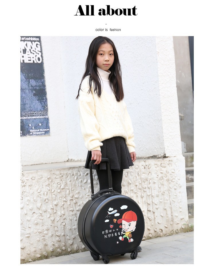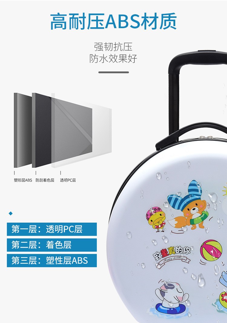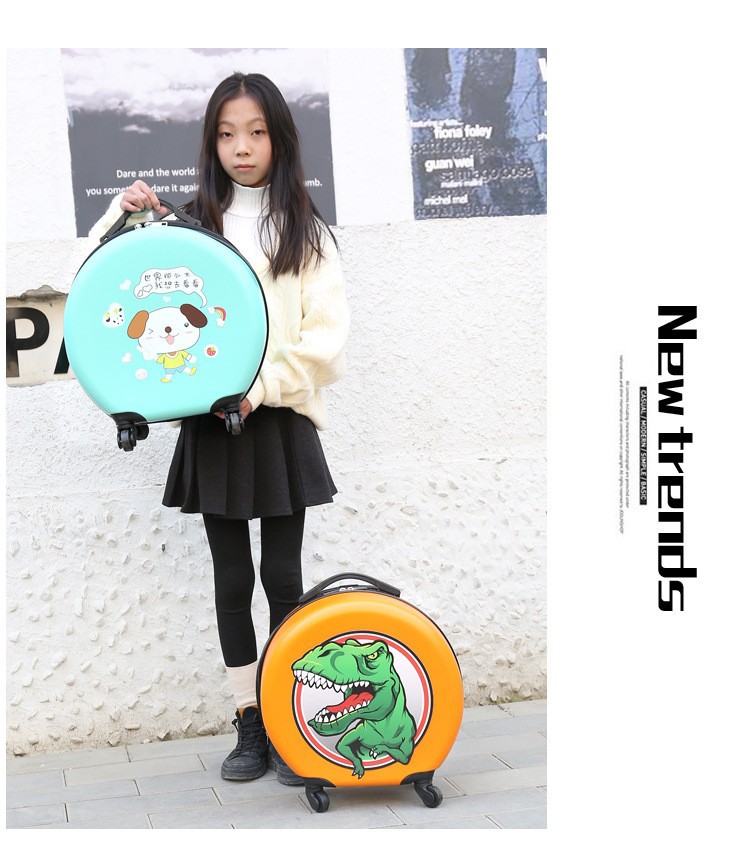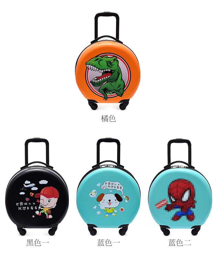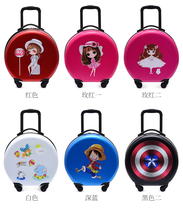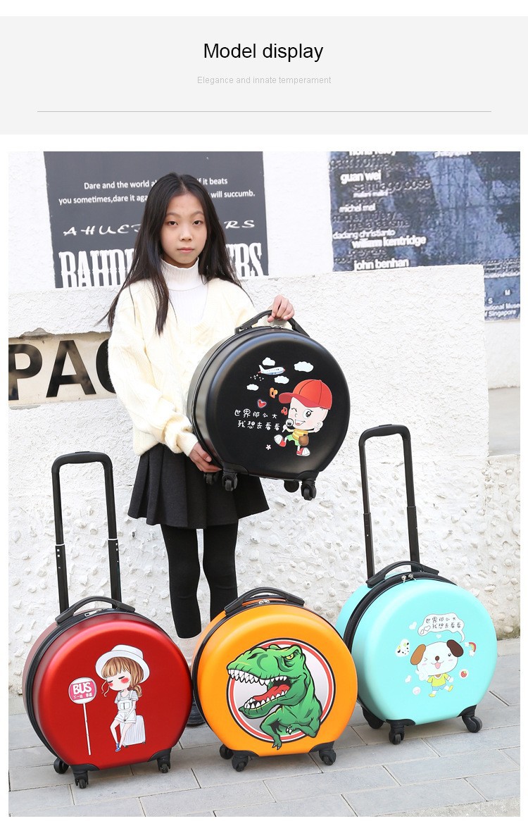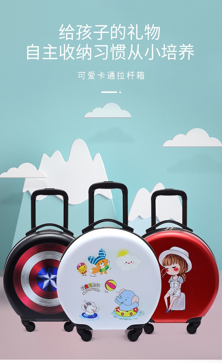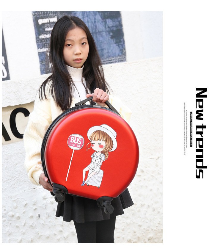어린이 맞춤형 가방, 세련된 원형 만화 트롤리 케이스, 범용 바퀴, 경량 인쇄 로고 선물 가방