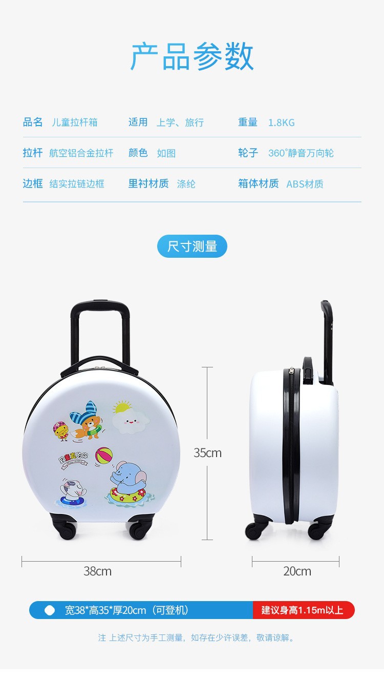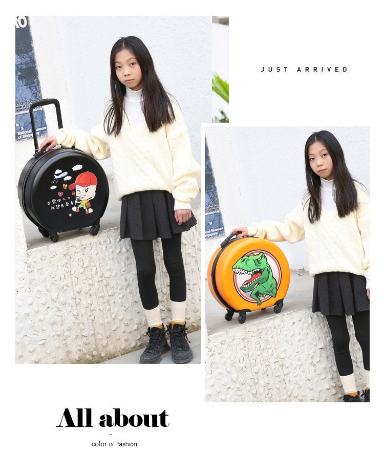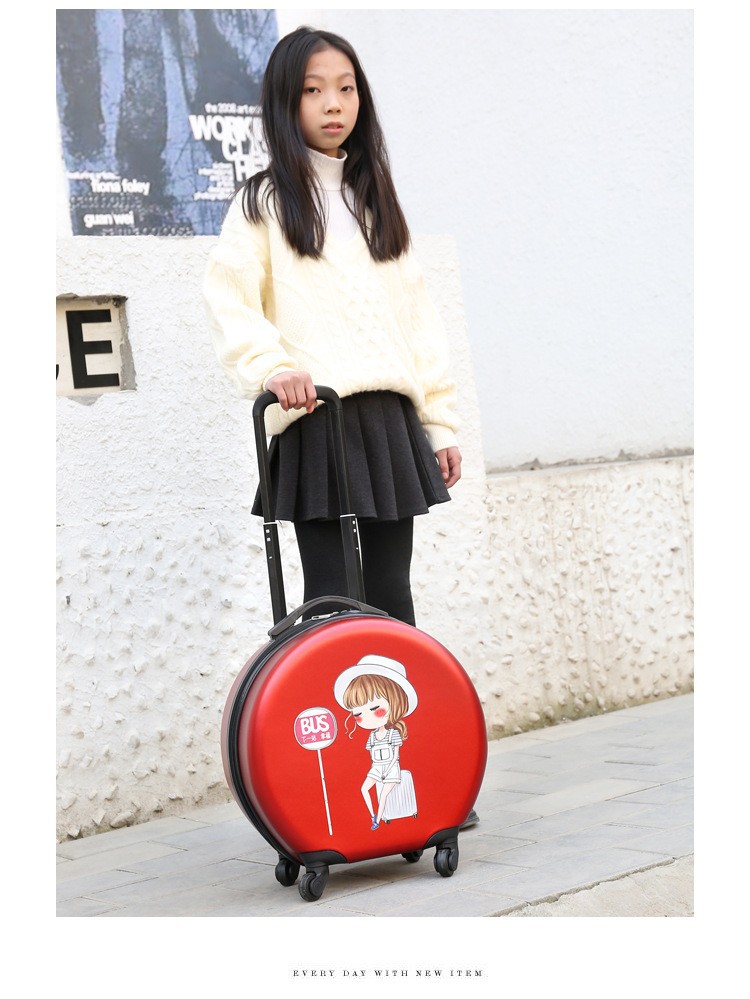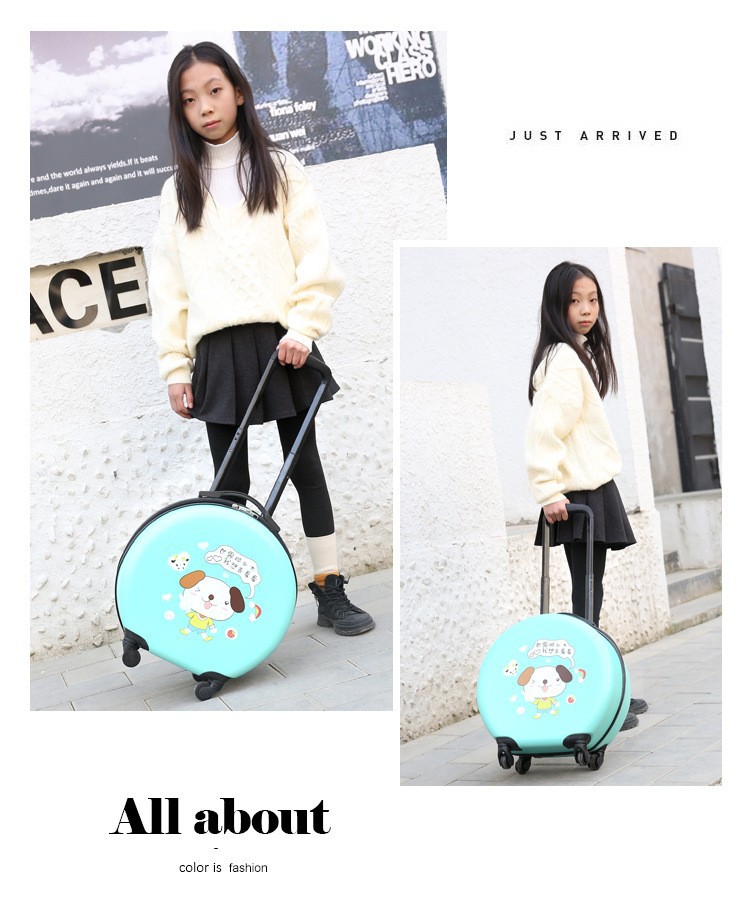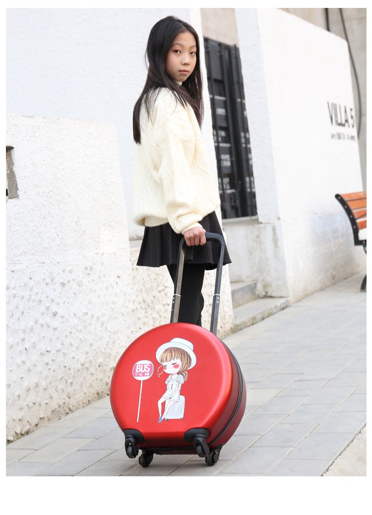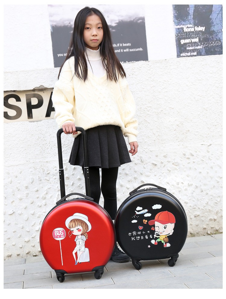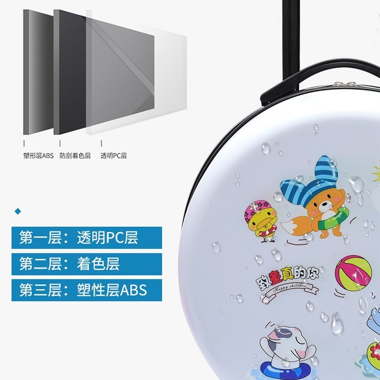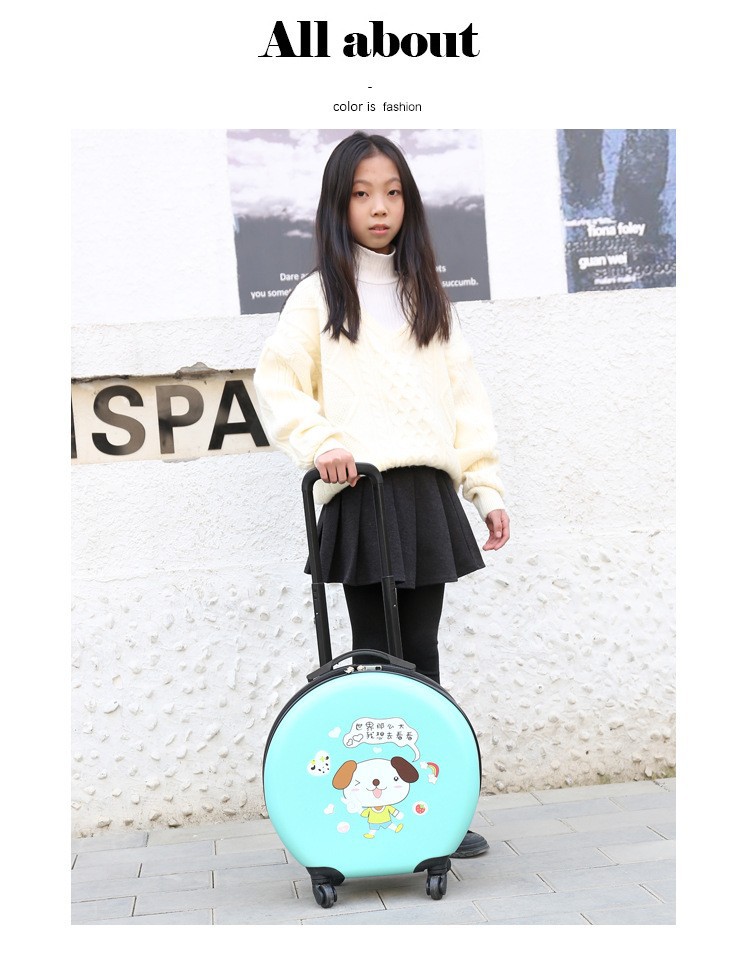 어린이 맞춤형 가방, 세련된 원형 만화 트롤리 케이스, 범용 바퀴, 경량 인쇄 로고 선물 가방