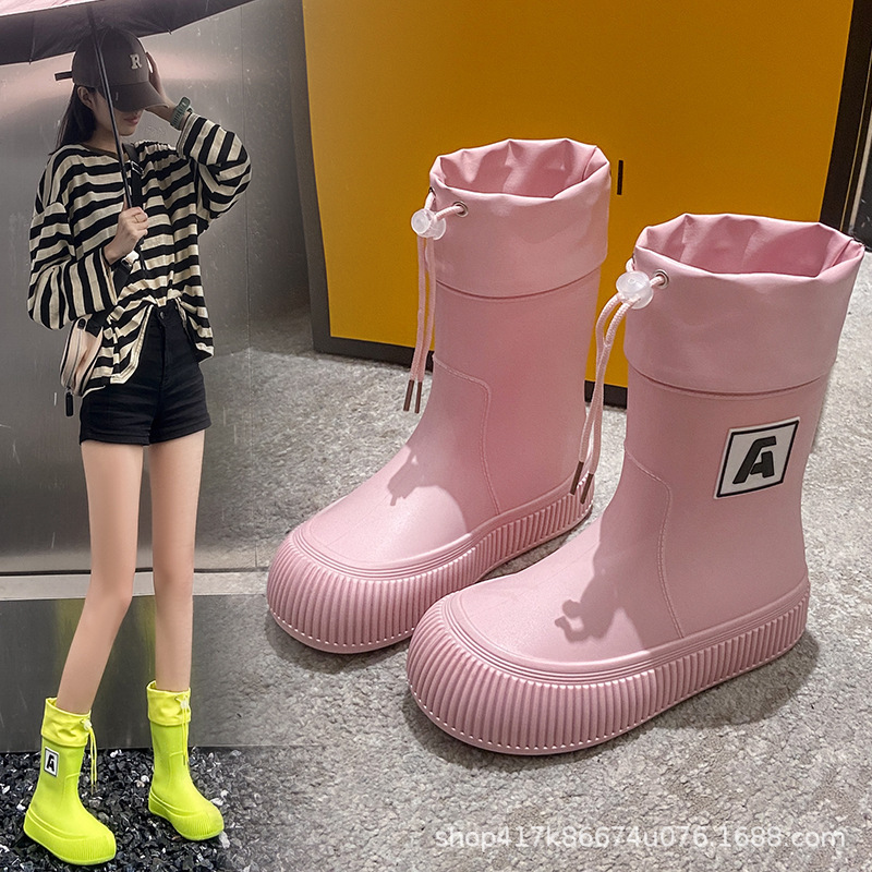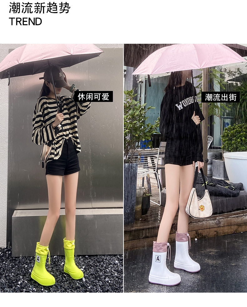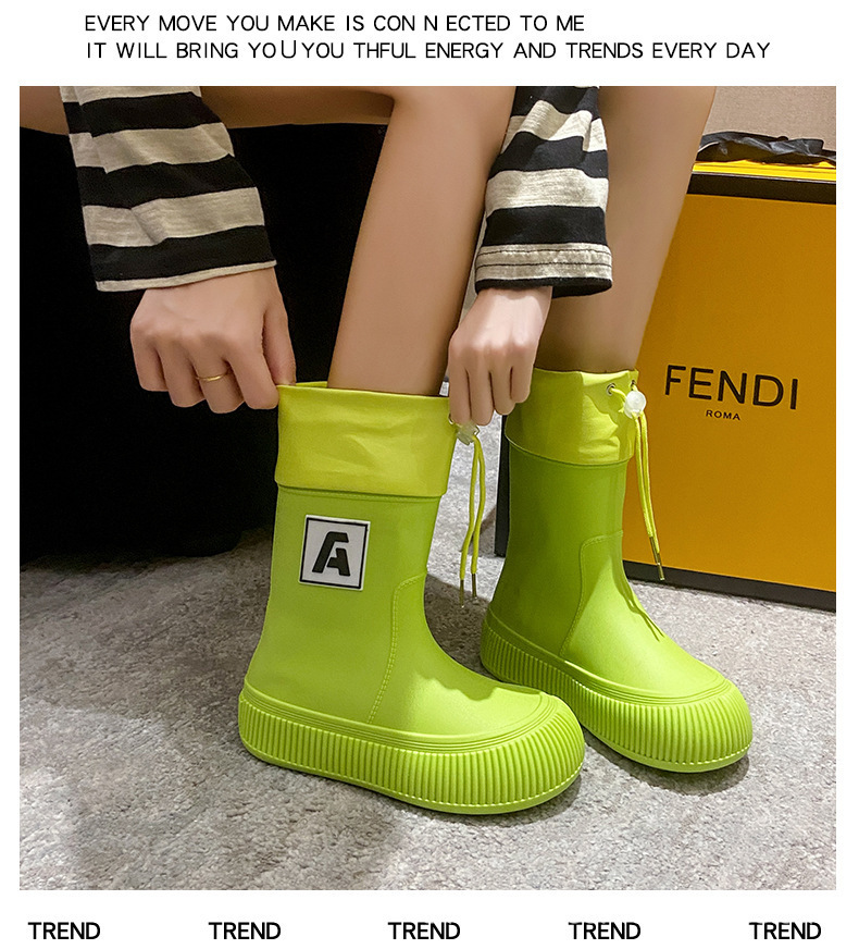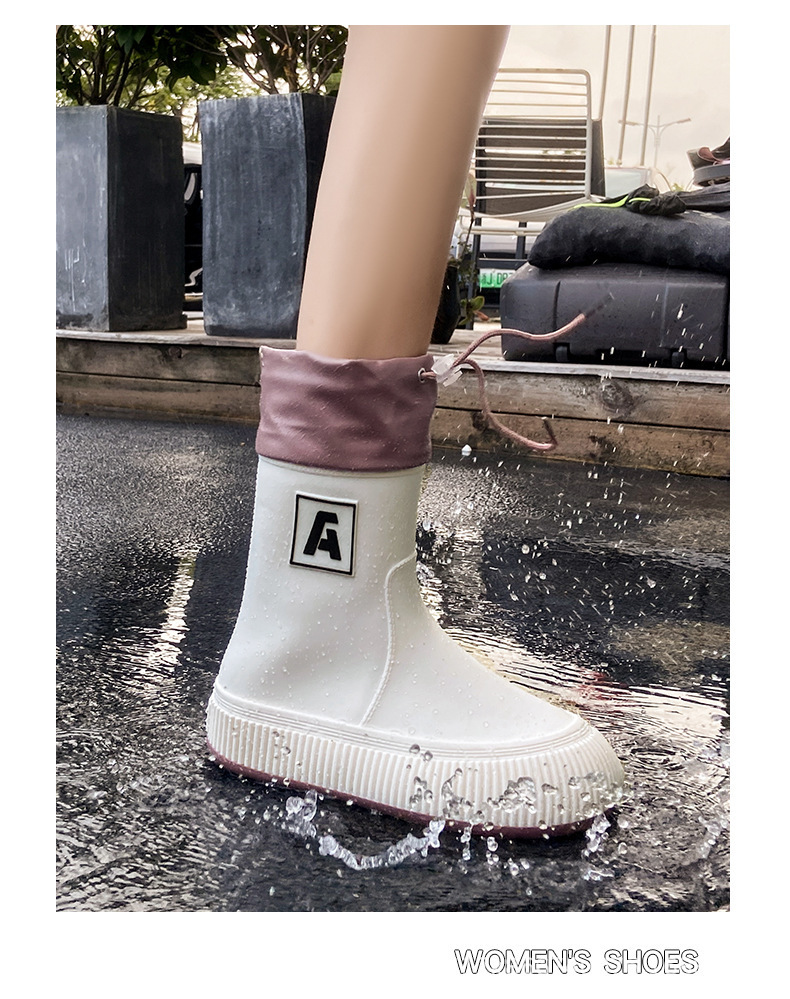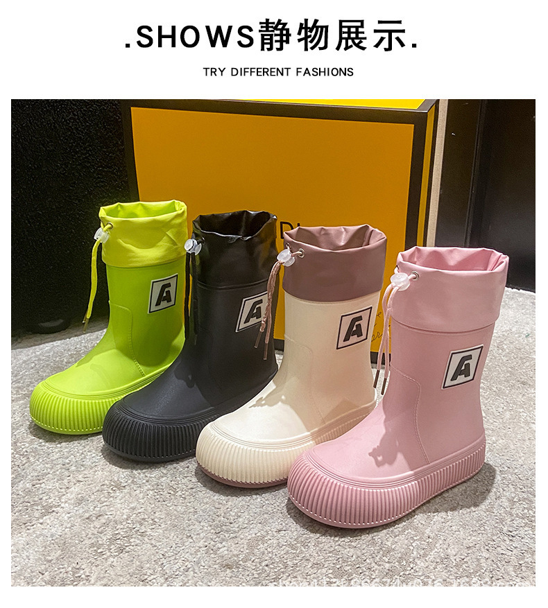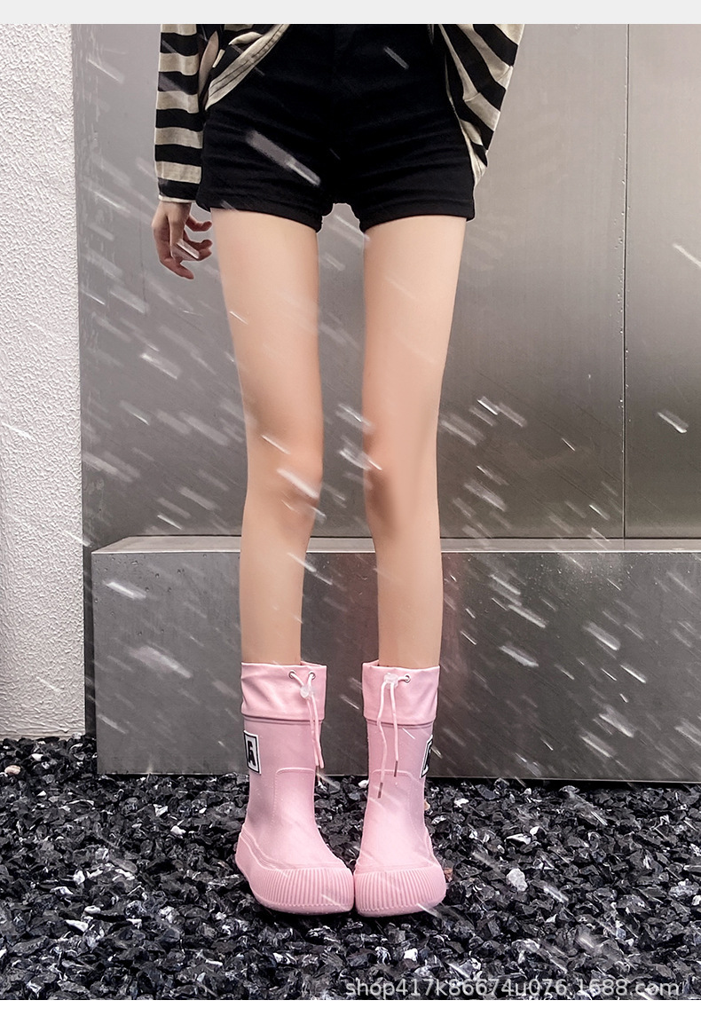 재고 한국 스타일 트렌디 한 미드 튜브 패셔너블 여성용 부츠 편안한 방수 미끄럼 방지 경량 소프트 내마모성 두꺼운 하단 비 부츠